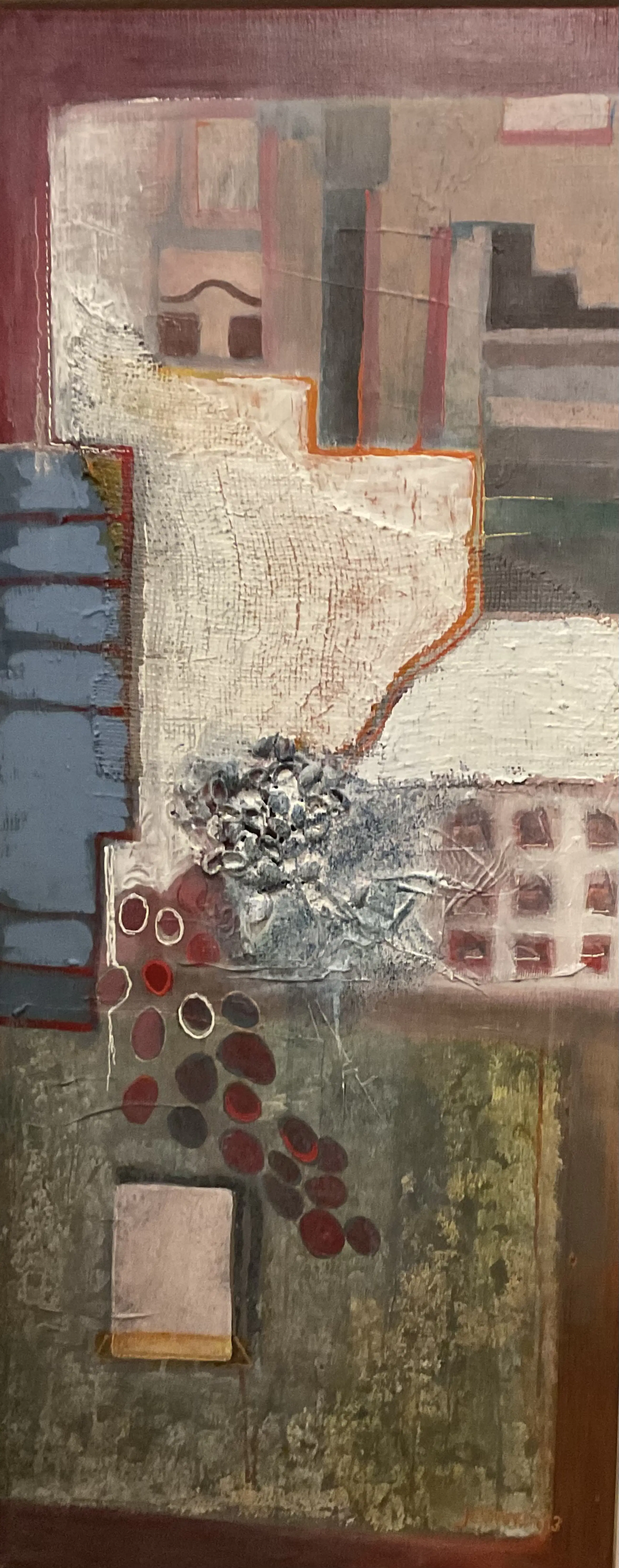 De imponerende Vlaamse, middeleeuwse stad Gent, gevat in één lijst. Acryl mét materie. Groots en fijn, losjes en herkenbaar. Een stad waar je zou kunnen wonen.....; vrij en fier!