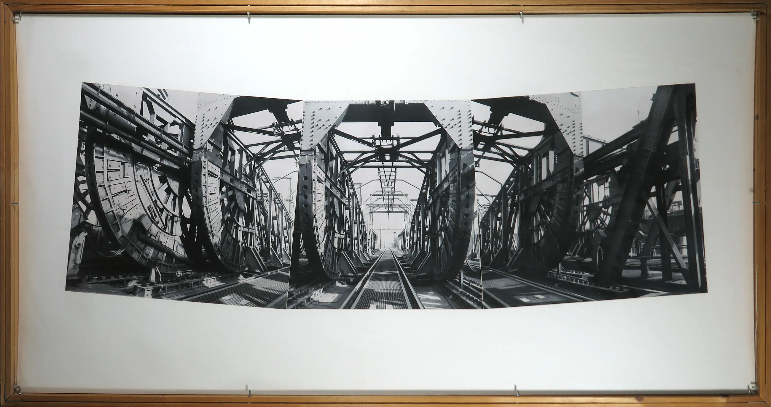 | Redelijke conditie.Glas is beschadigd (zie laatste foto). Het blad waarop de collage is bevestigd staat hol. Langs de randen van de collage wat vergeling door de kleuring van de lijm. | |
