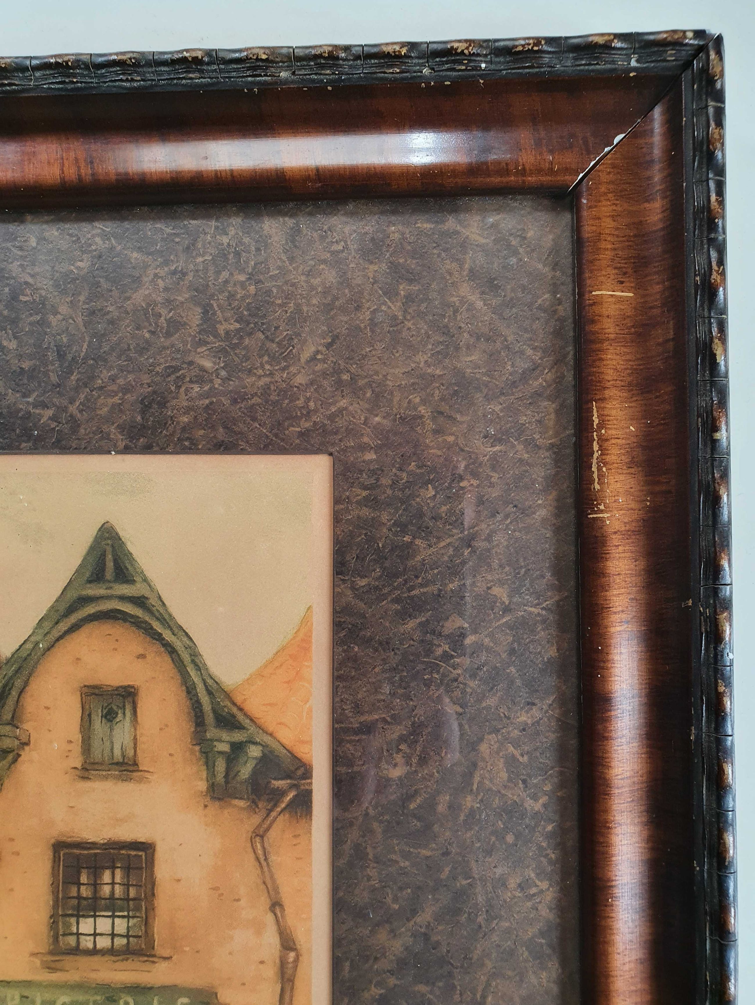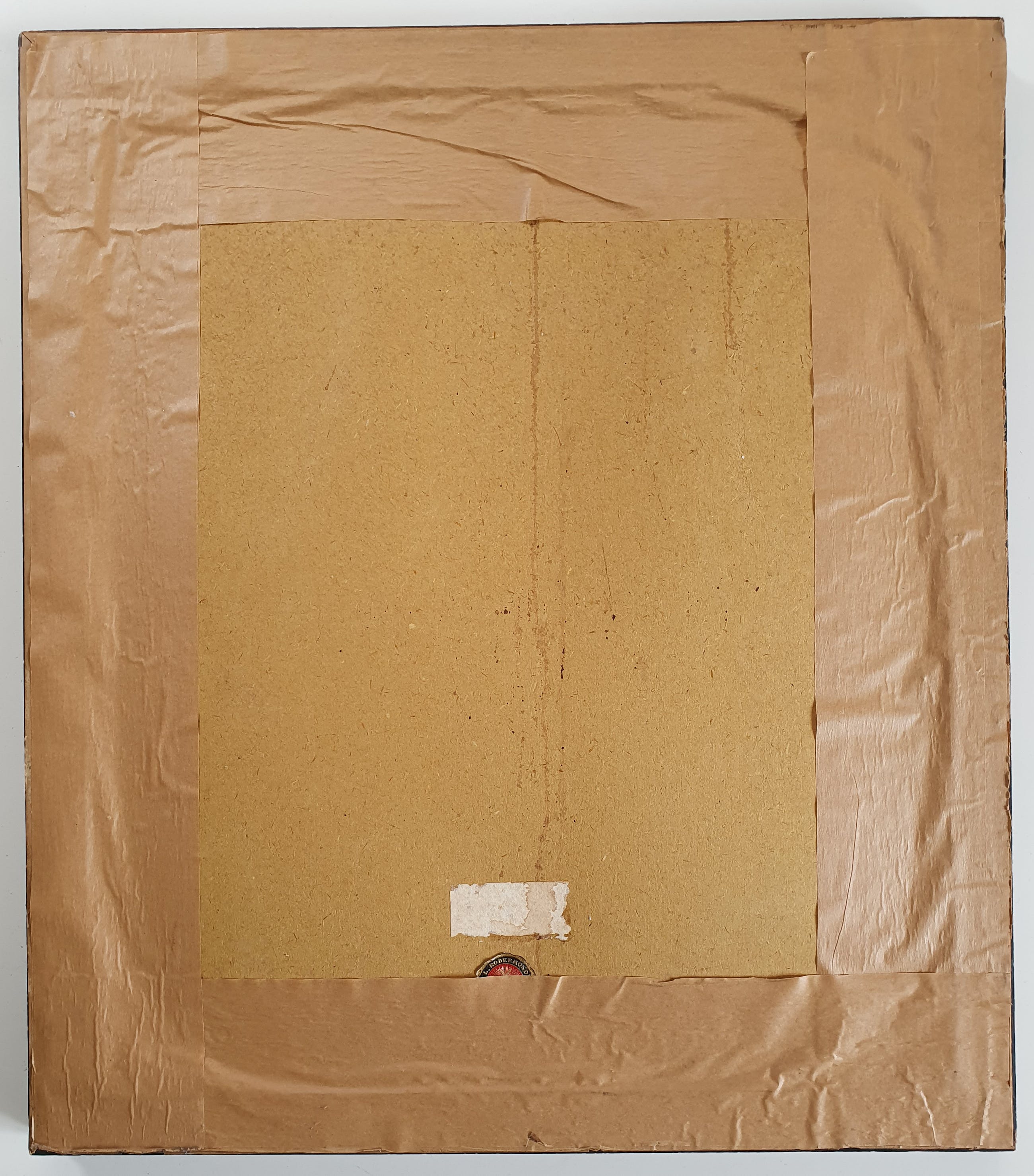 Conditie: de lijst met enige spoortjes van gebruik/ouderdom, het karton aan de achterzijde is ietwat naar buiten gebogen en het ophangsysteem ontbreekt maar de ets zelf verkeert in uitstekende staat, net als het passe-partout en het glas. Een fraai geheel. Zie ook de foto's.