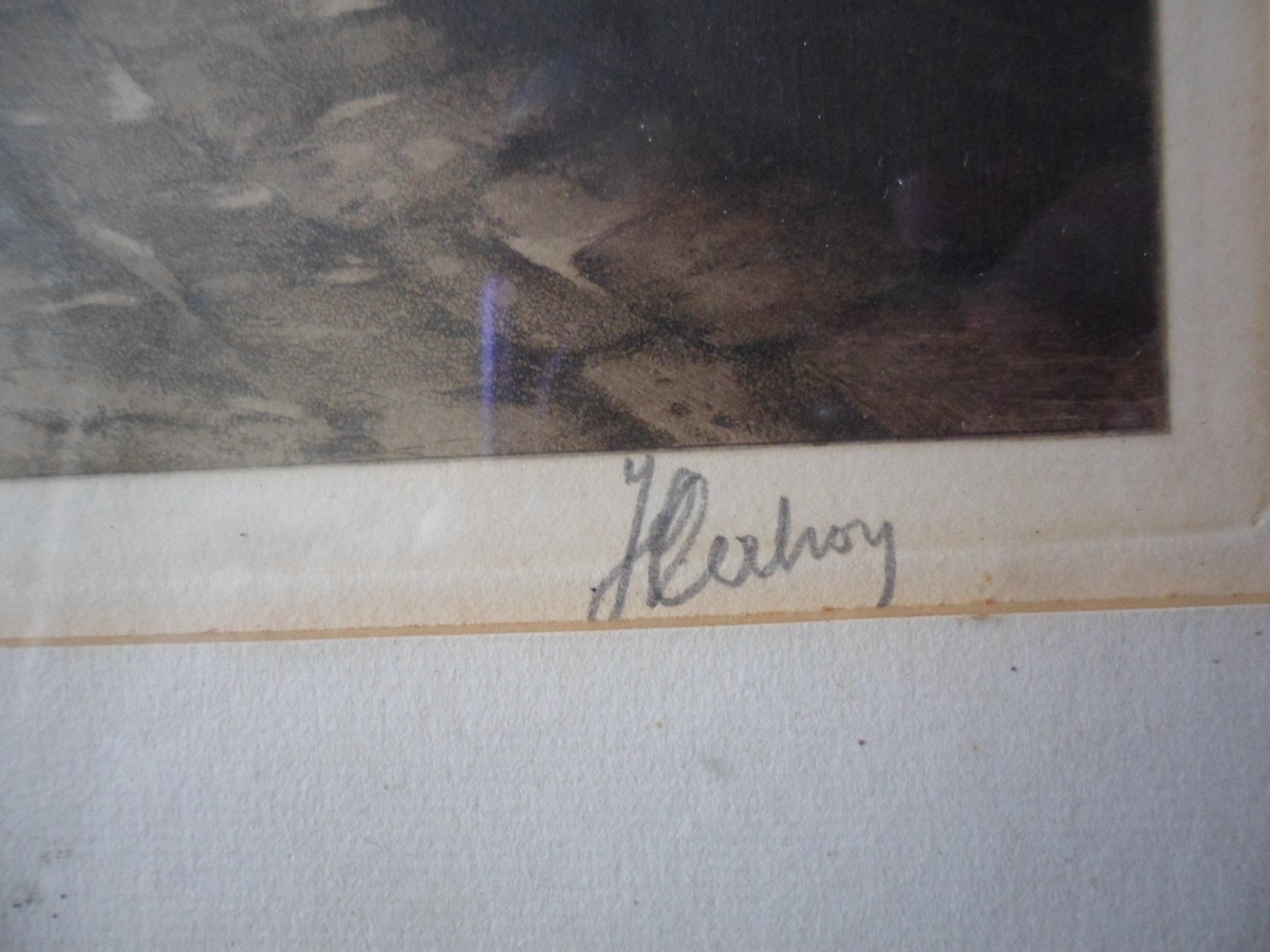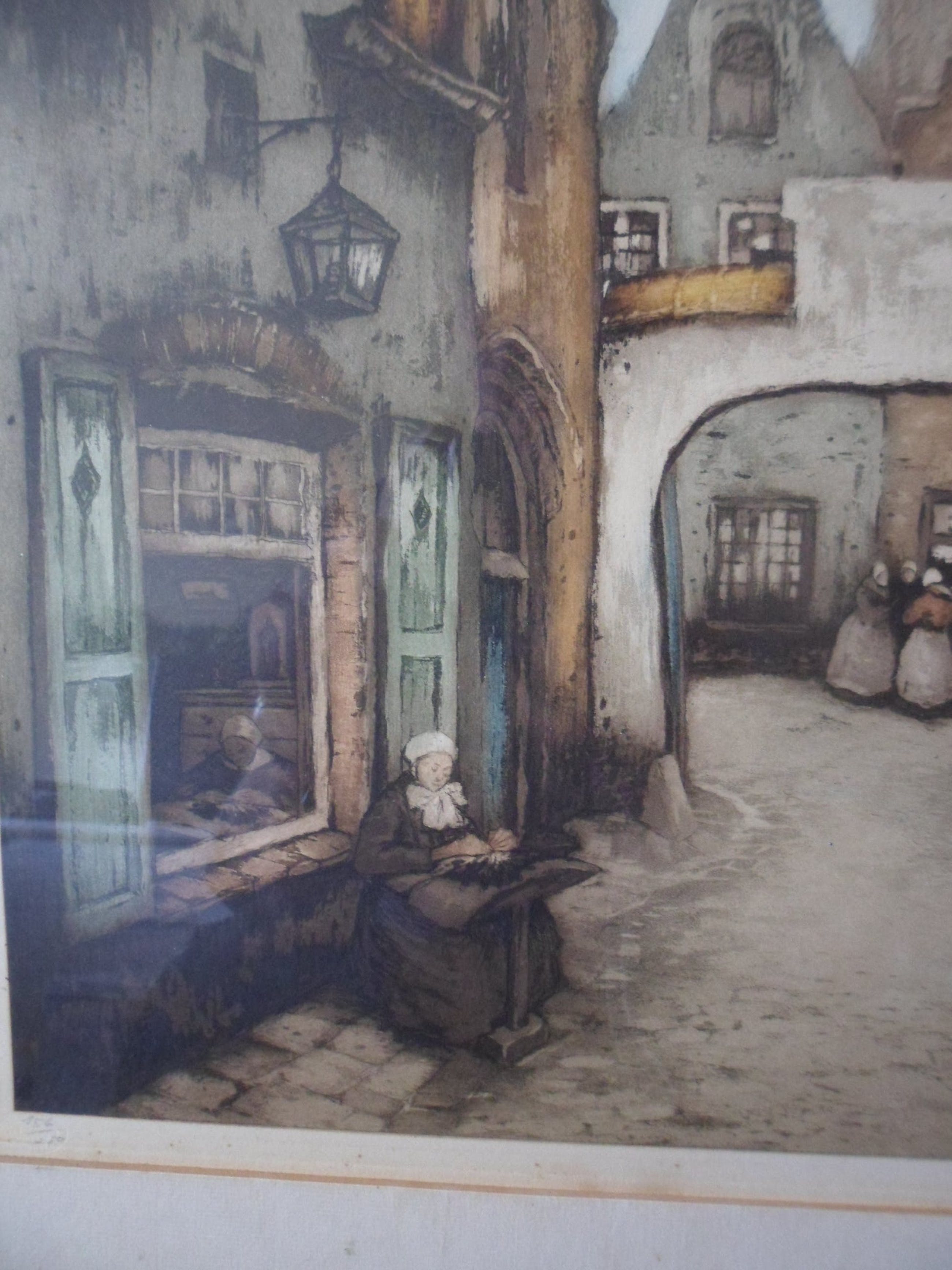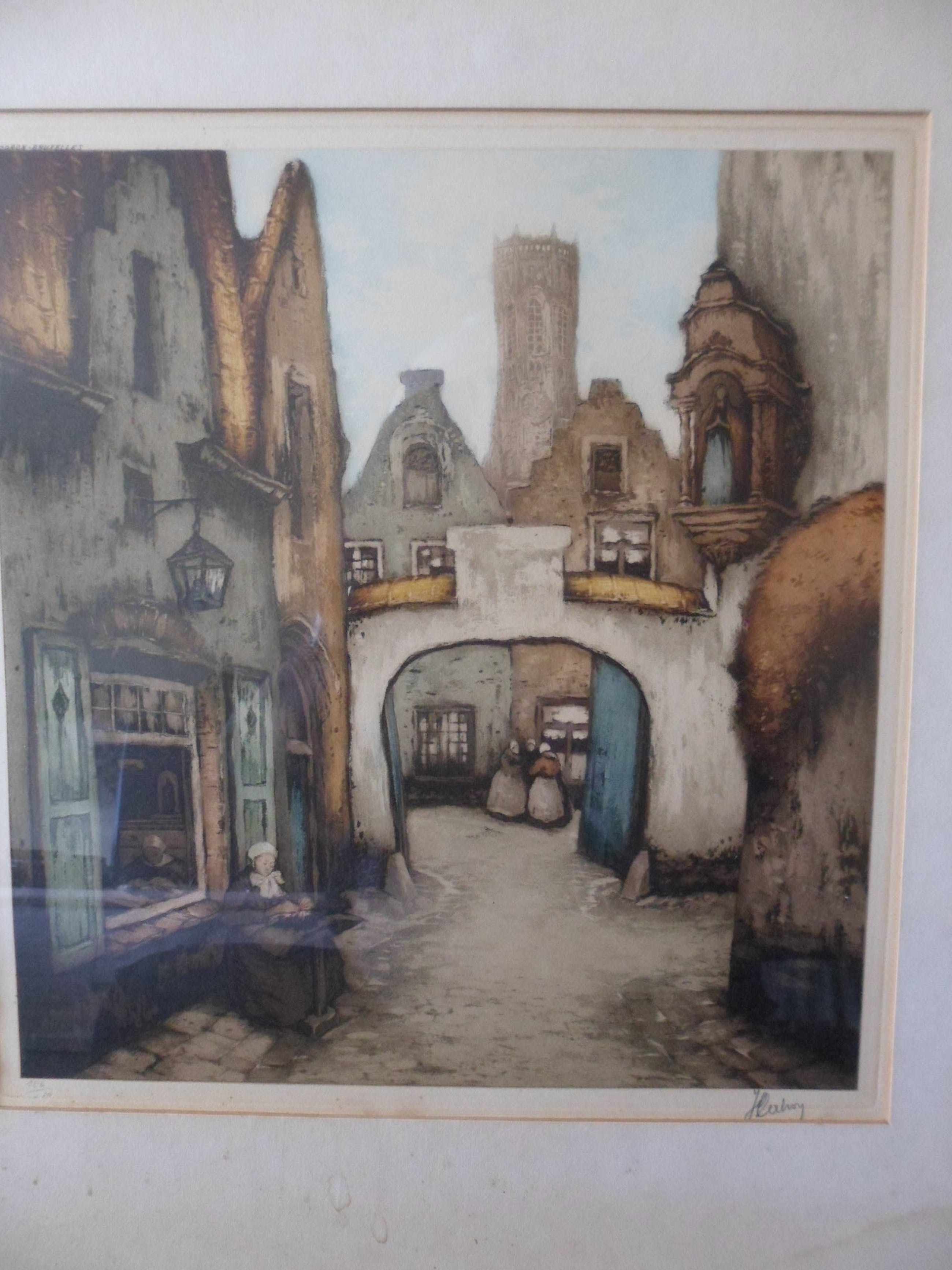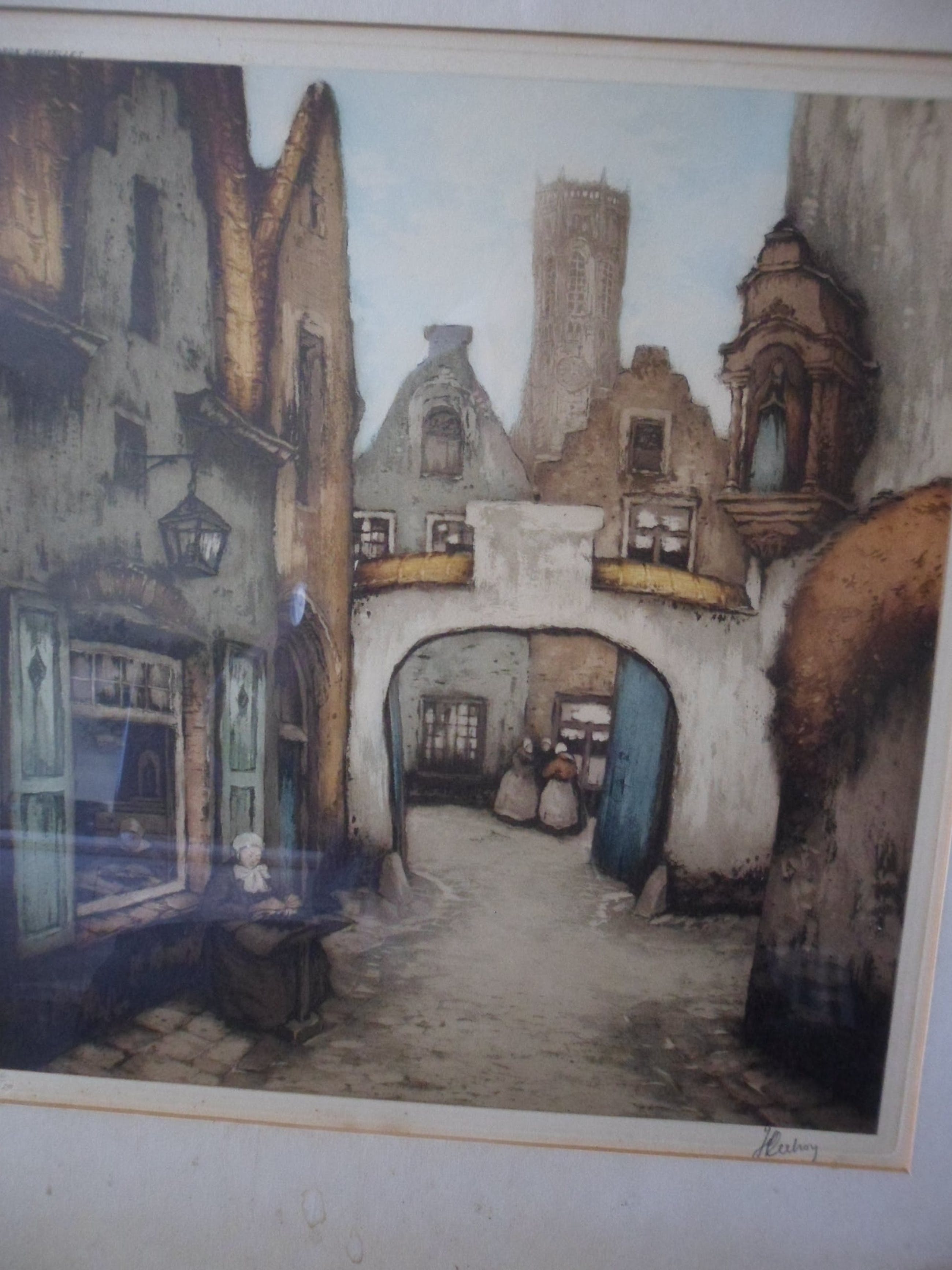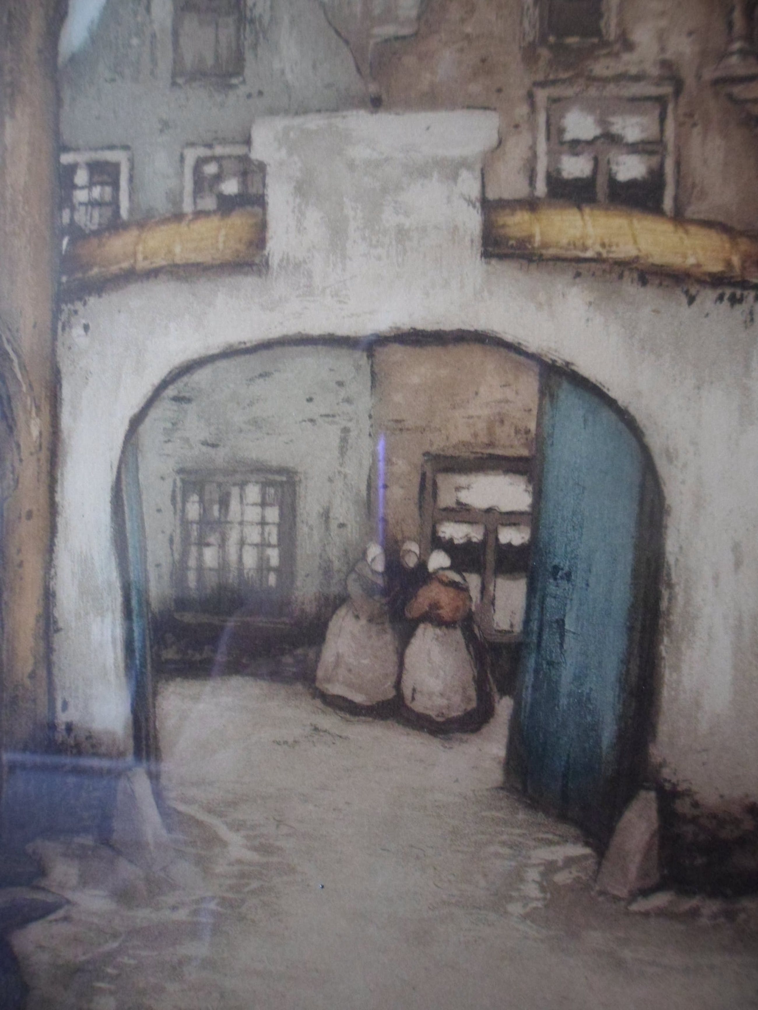 | De kleuren ets is goed, in de passe patout zit wat watervlekken niet in de ets. Het geheel heeft wat ouderdom verschijnsels. Eigenlijk verdient de kleuren ets een nieuwen lijst met passe patout. Daarom krijgt u de lijst en passe patout er gratis bij. En is daarom de start prijs zo laag. Maar de ets is wel mooi. | |||