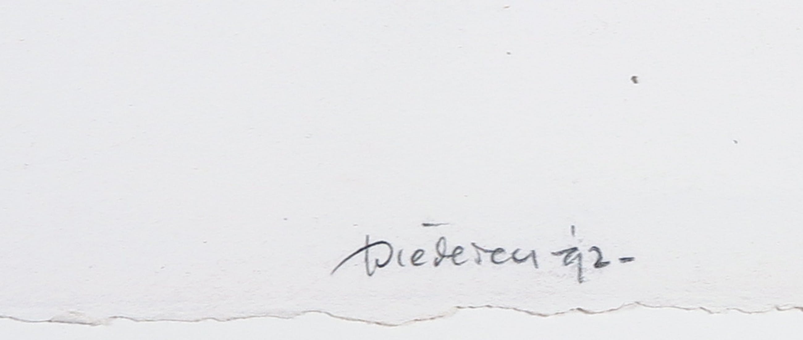 De tekening is in goede conditie, maar met een paar kleveringe vlekjes/streepjes in de linkerhelft.Het stevige onderblad waarop de tekening is bevestigd heeft meerdere vlekjes/veegjes en krasjes. Afmetingen blad: 56,5 x 76 cm. | |||||||||||