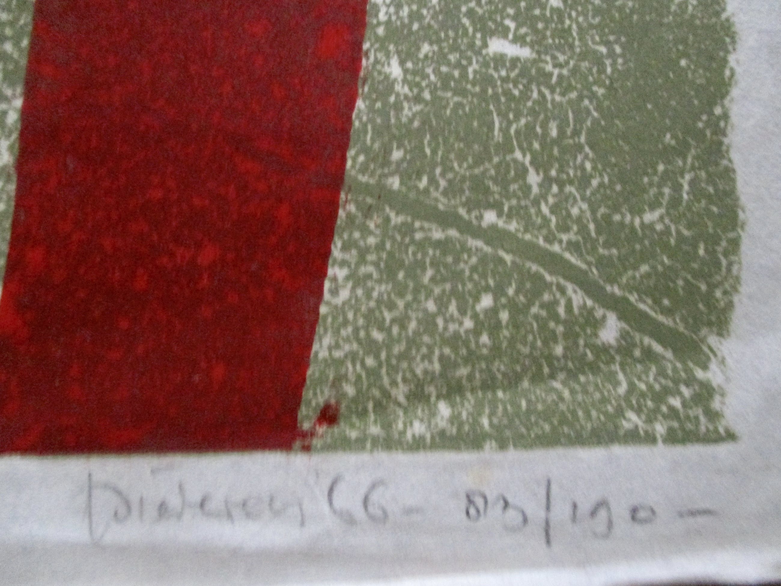 Houtsnede van Jef Diederen, gesigneerd, gedateerd en genummerd in potlood.Verzending in ruime koker, 11,75, aangetekend 13,45