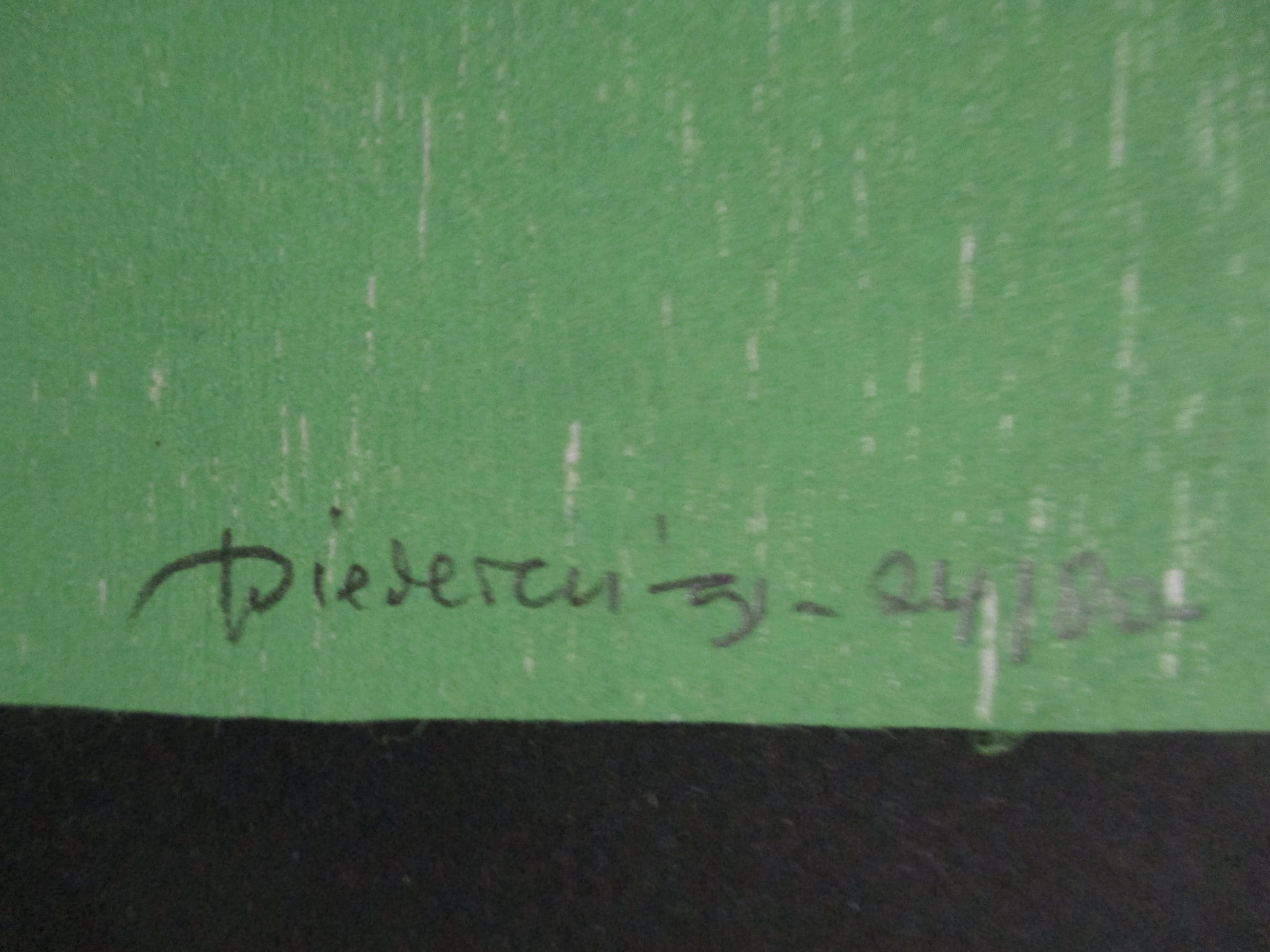 Houtsnede van Jef Diederen, gesigneerd, genummerd en gedateerd in potlood r.o. Het blad is bevestigd op een zwart karton. LET OP: wegens het formaat alleen afhalen.