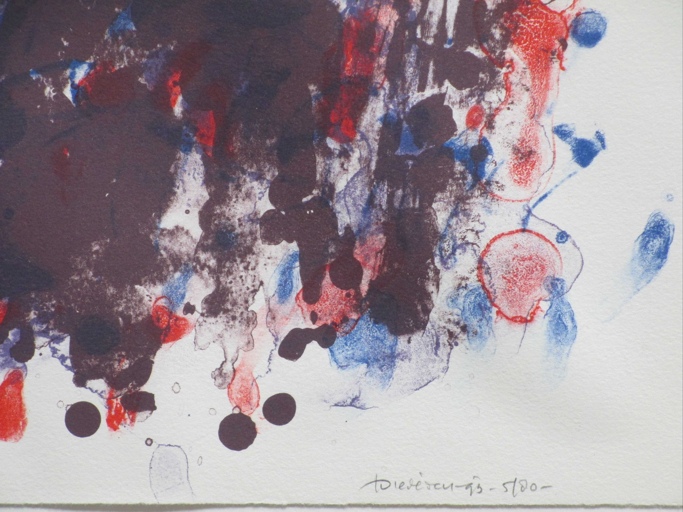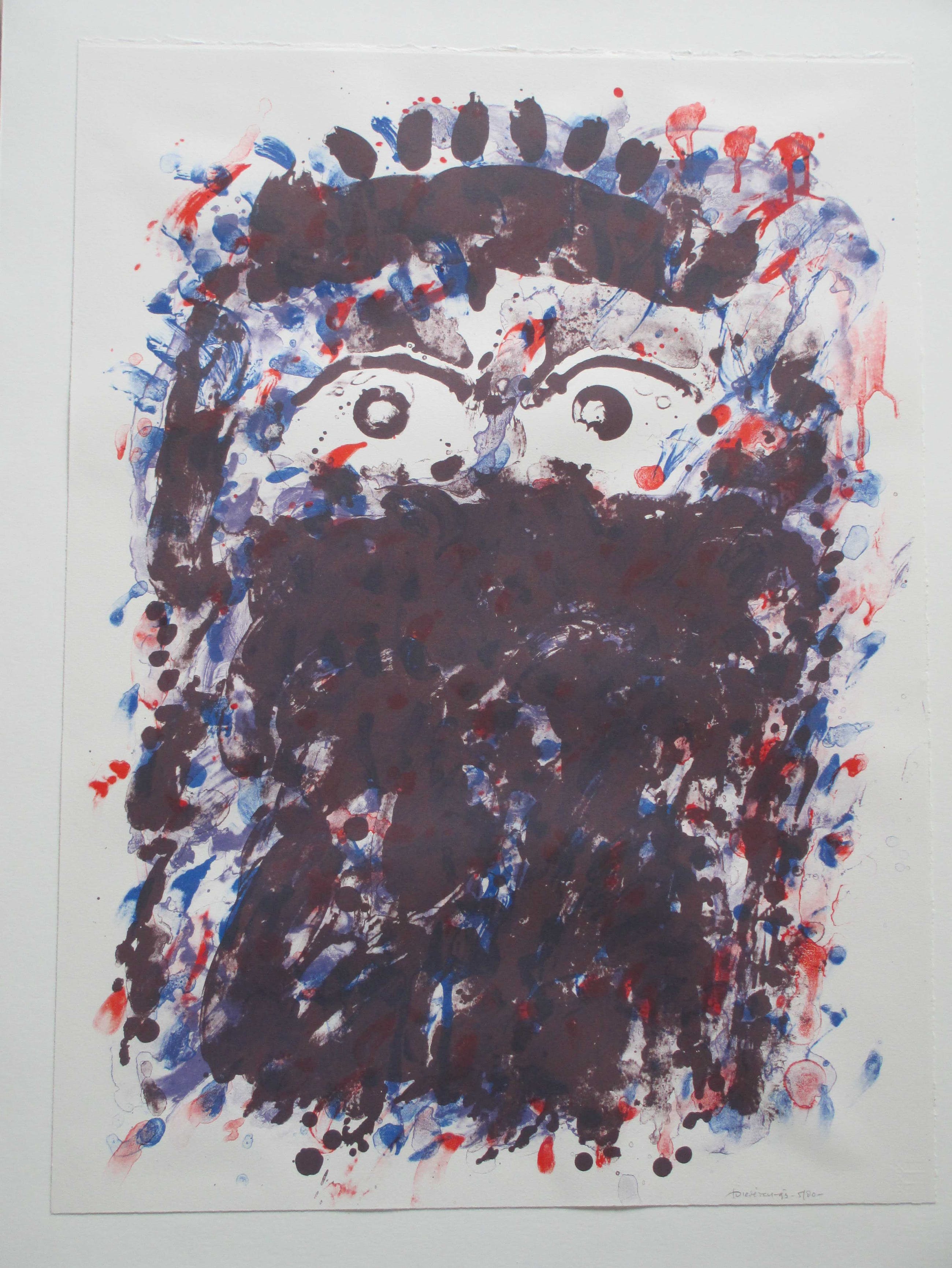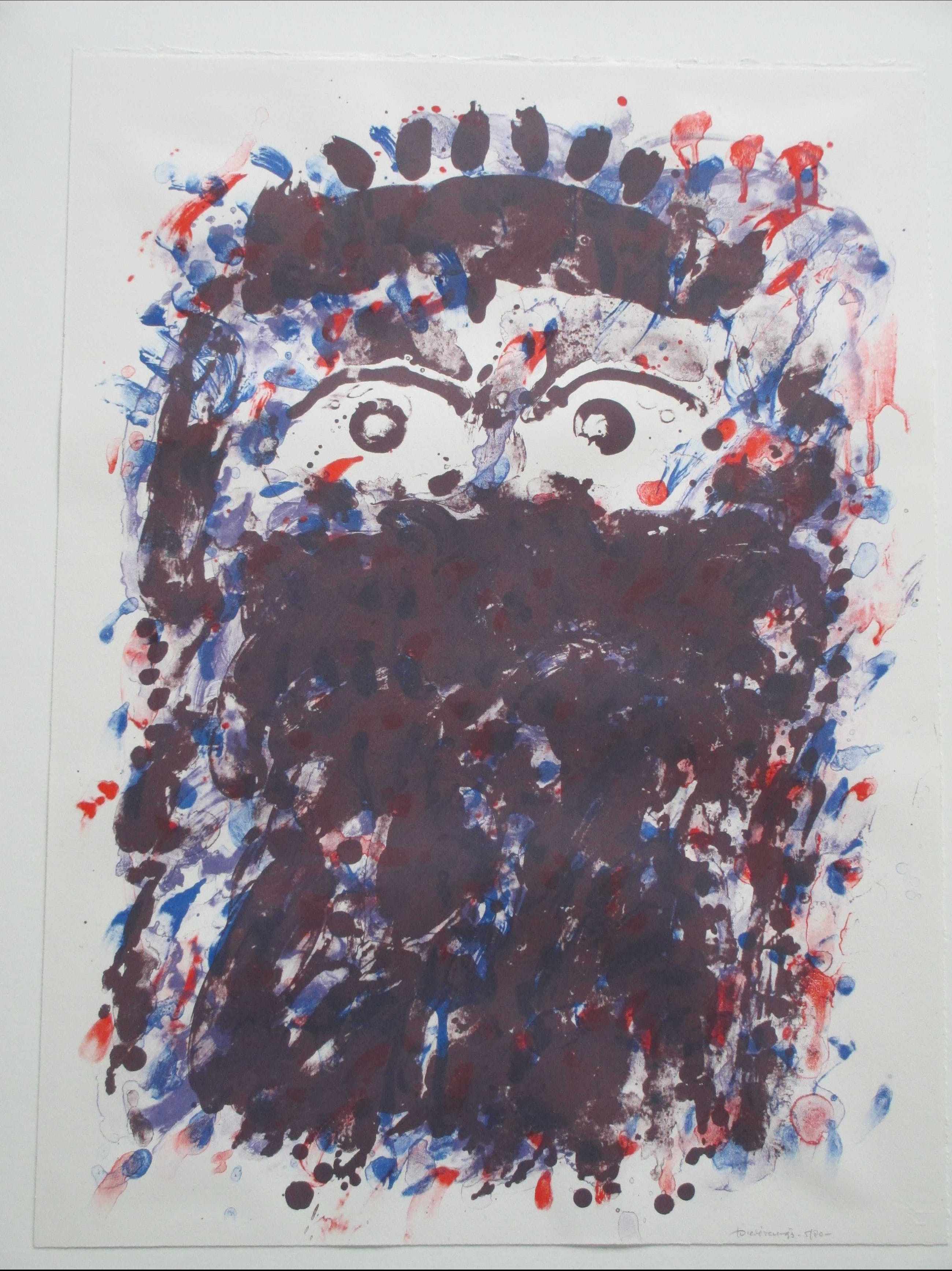 Zeefrduk uit 1993 door Jef Diederen. Voorstelling van een hofd. Goeddeels vast op onderkarton, beeldmaat 75x55, onderblad 85x65 Gesigneerd, gedateerd en genummerd rechtsonder: 'JDiederen '93 5/80'