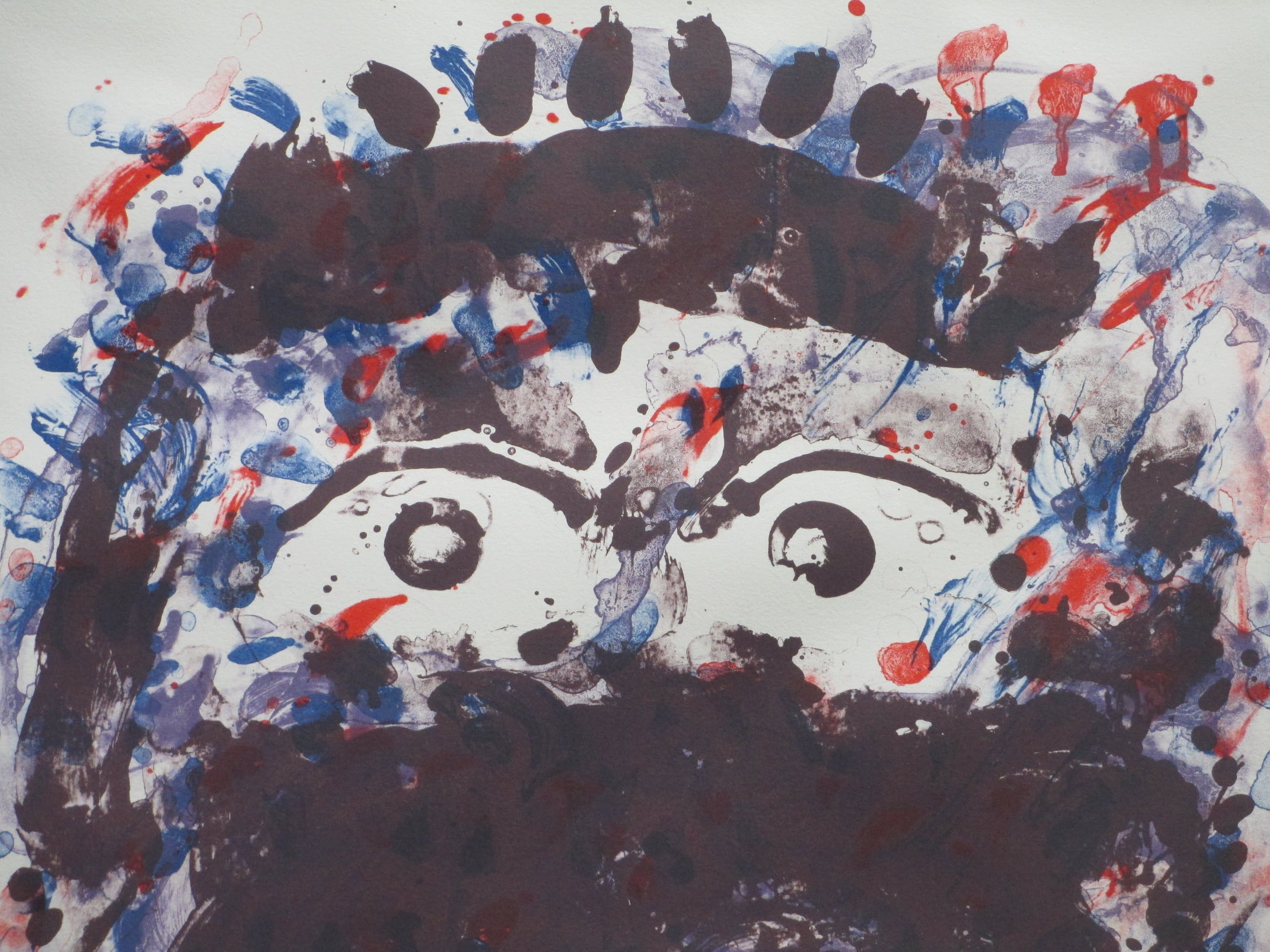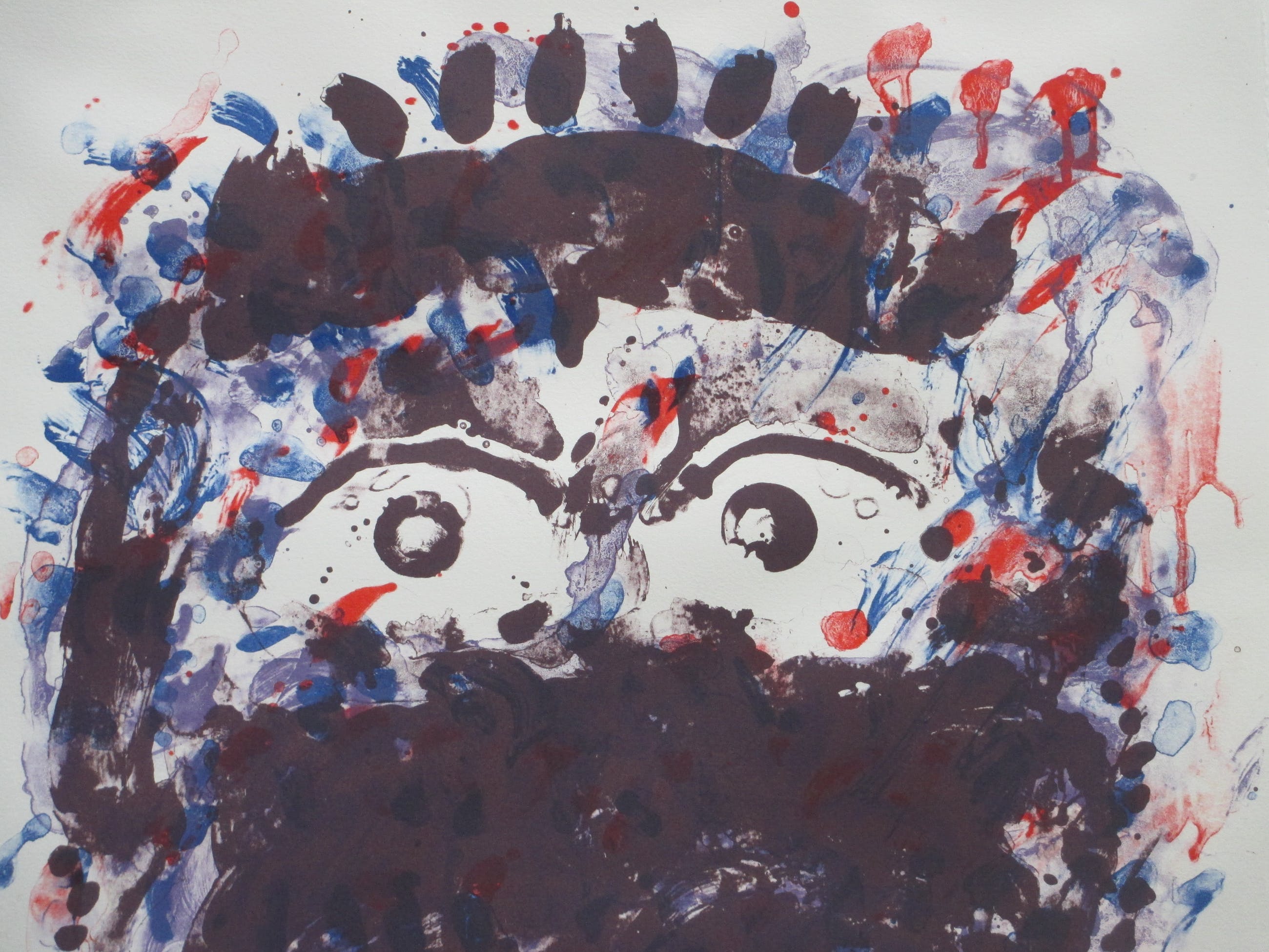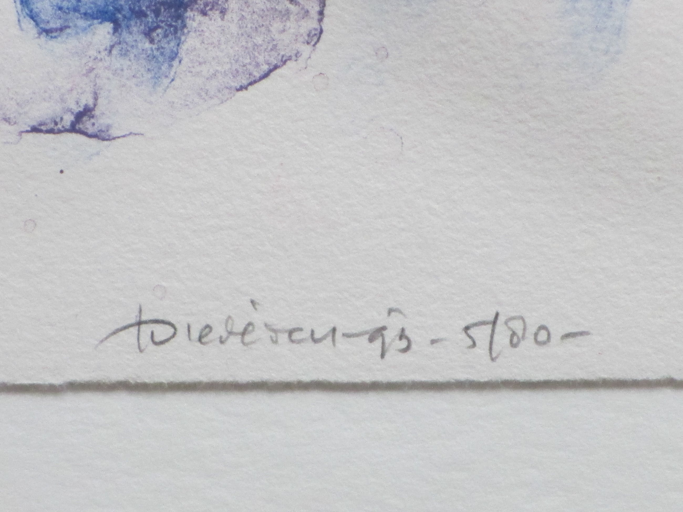 Zeefrduk uit 1993 door Jef Diederen. Voorstelling van een hofd. Goeddeels vast op onderkarton, beeldmaat 75x55, onderblad 85x65 Gesigneerd, gedateerd en genummerd rechtsonder: 'JDiederen '93 5/80'