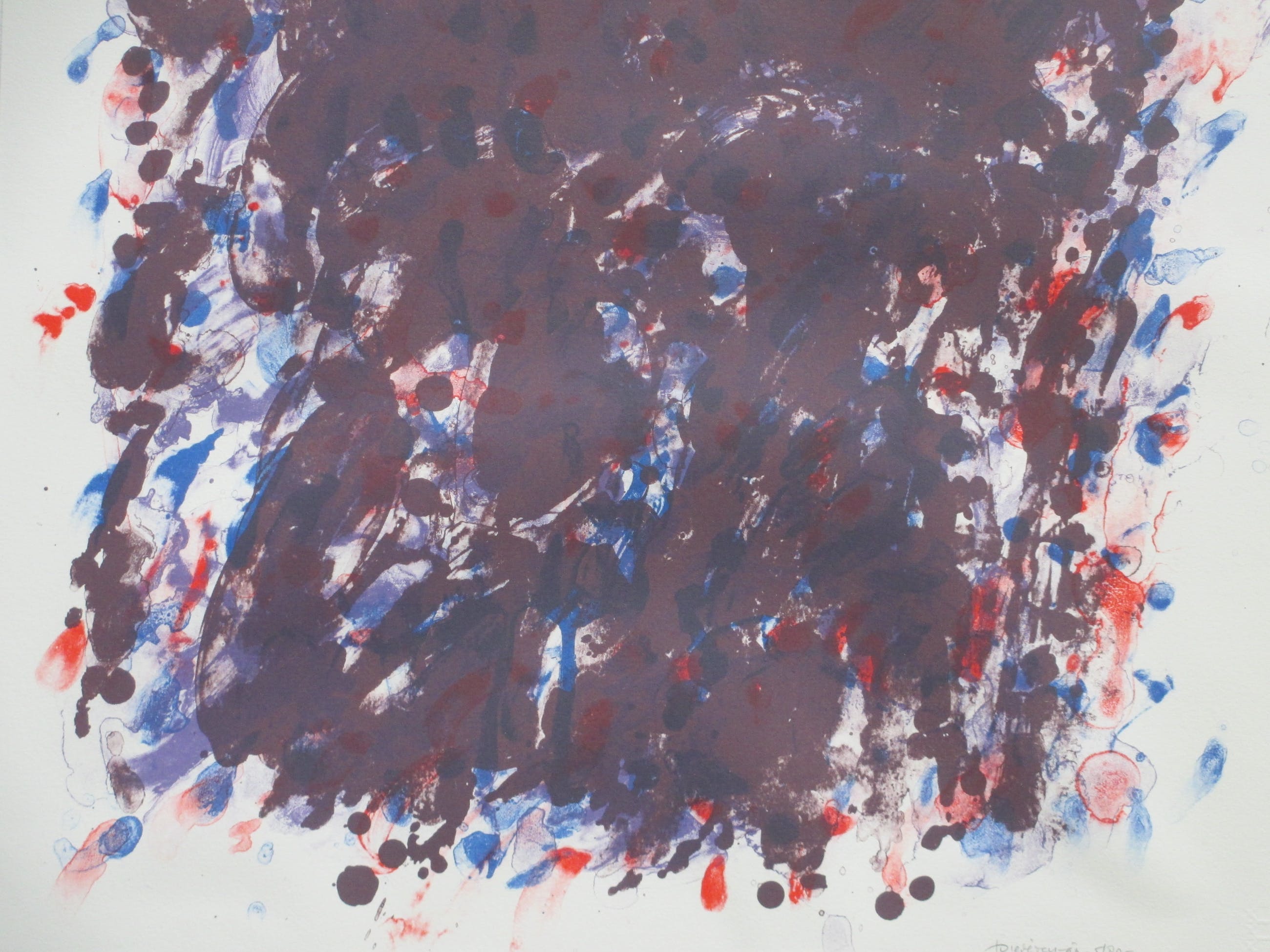 Zeefdruk is deels op onderkarton aangebracht.
