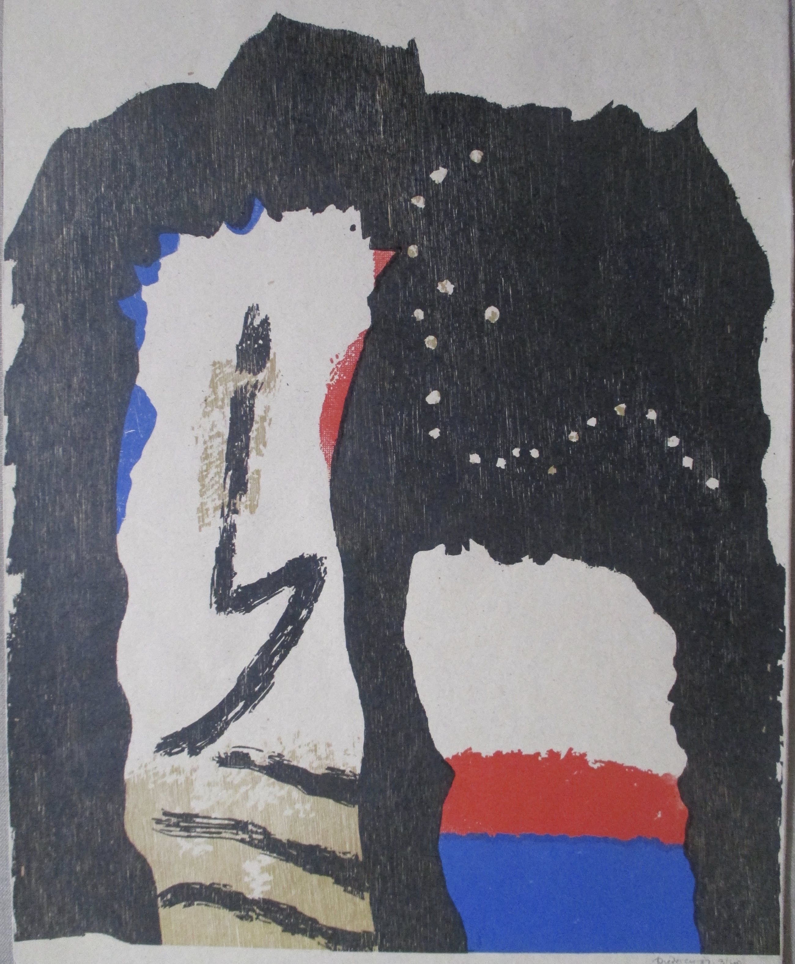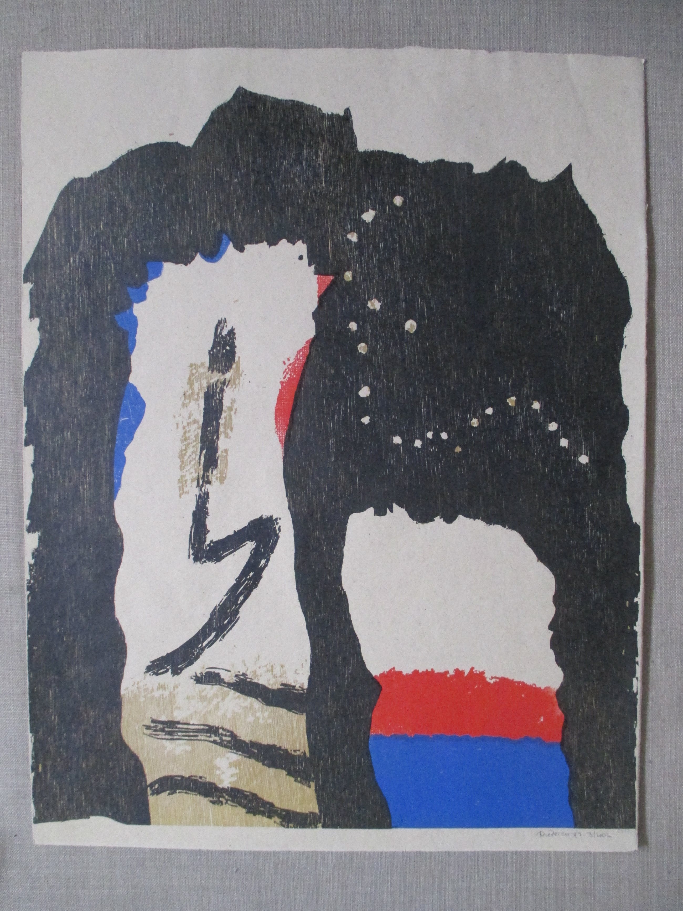Houtsnede van Jef Diederen, gesigneerd, genummerd en gedateerd in potlood. Verzending tussen twee platen, 9,25, aangetekend 11,20