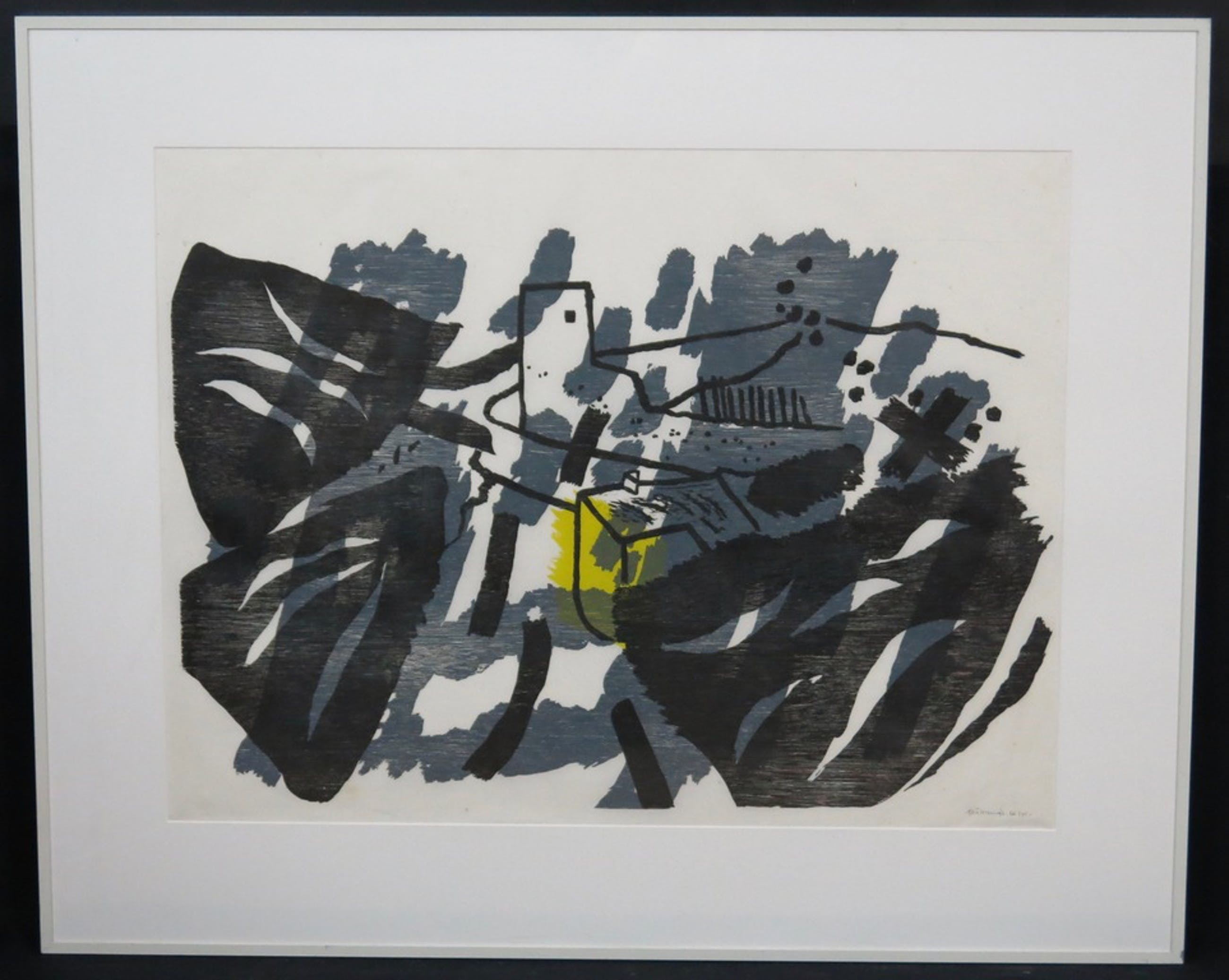 Kleine beschadigingen aan lijsten worden niet beschreven! Bij ingelijste werken achter glas vermelden wij altijd glasschade. Passe-partouts worden op geen enkele manier gegarandeerd en ook niet altijd meegezonden. Alleen als een werk niet uit het passe-partout te halen is, zal dit vermeld worden.