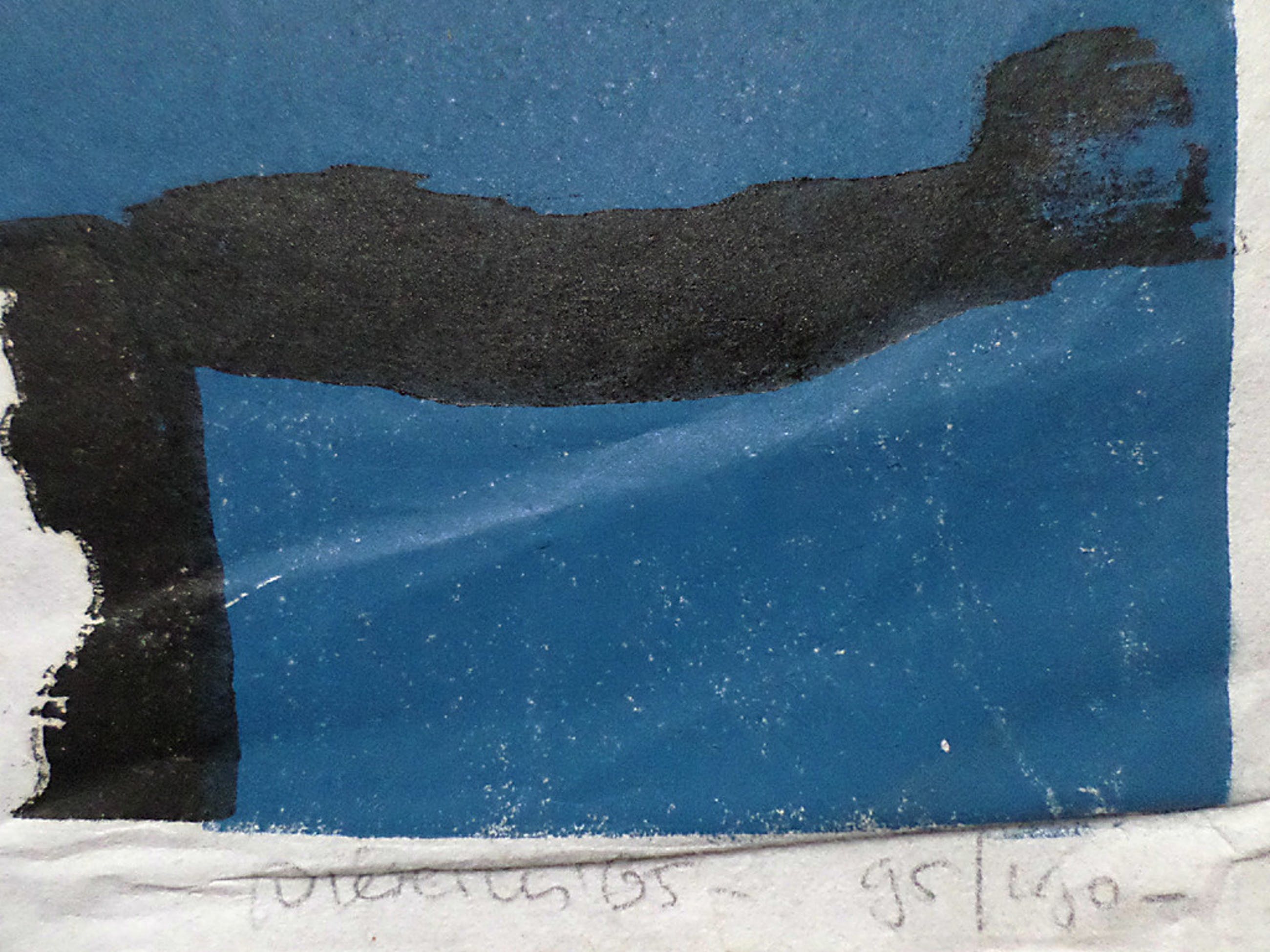 De houtsnede is afgedrukt op japans papier wat van nature kwetsbaar is. Er zitten dan ook wat kreukjes in de marge, maar hoofdzakelijk rechtsonder waar het werk gesigneerd is. Het voordeel van japans papier is dan weer wel dat de kreukjes relatief makkelijk glad gemaakt kunnen worden zonder veel schade.