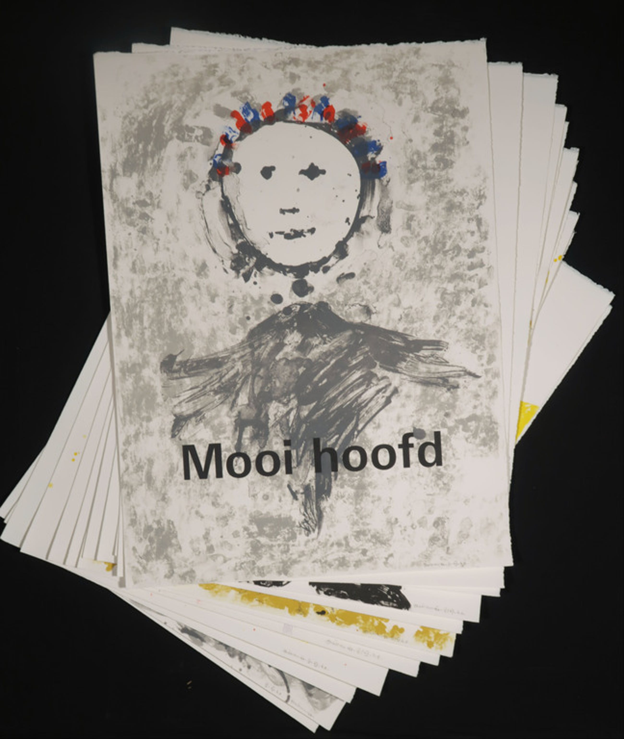 Portfolio 'Mooi Hoofd' met 7 Litho's van Jef Diederen naar teksten van Lucebert in mooie linnen map.