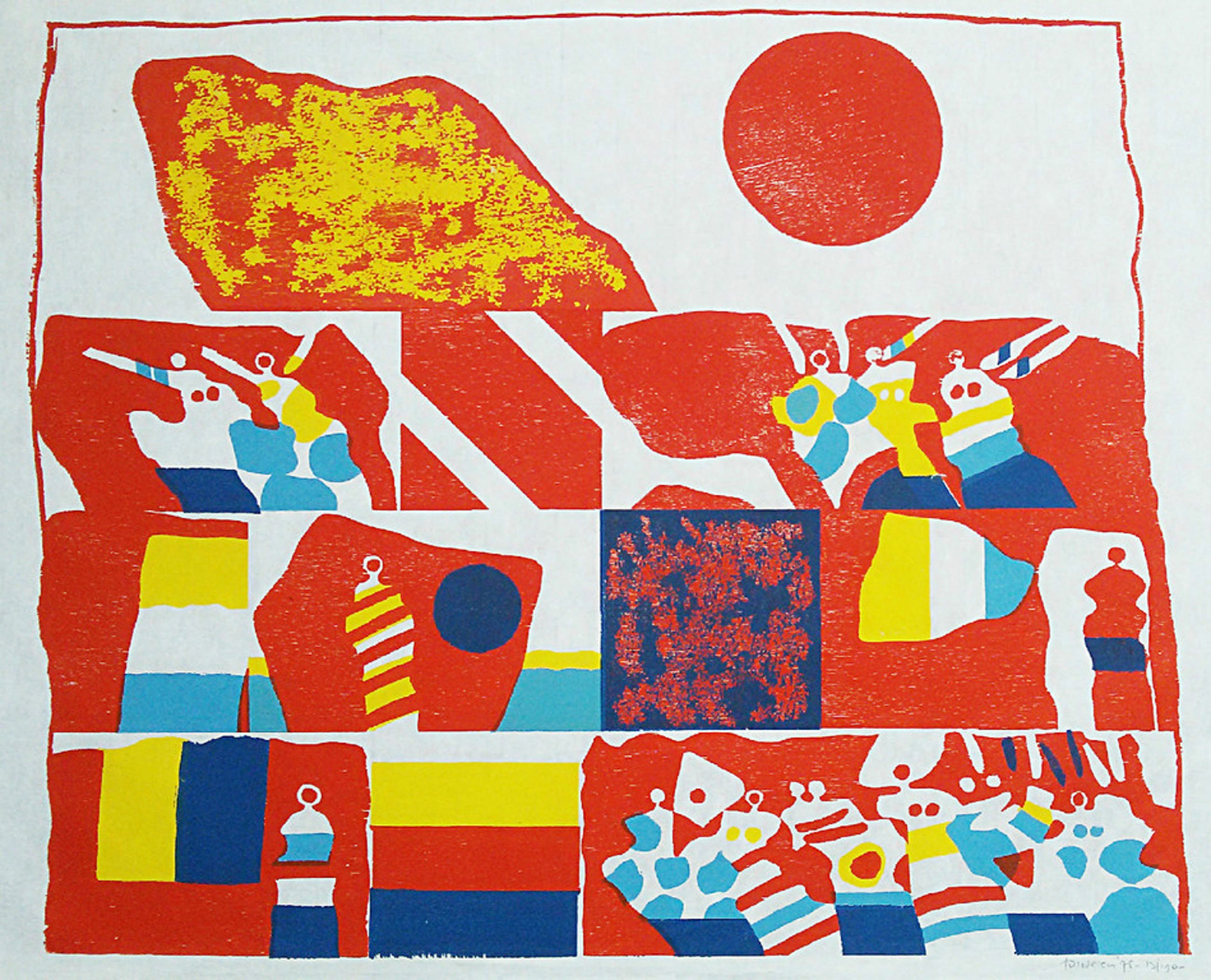 Karakteristieke houtsnede van Jef Diederen uit 1975, uitgegeven door Prent 190. Handgesigneerd, gedateerd en genummerd rechtsonder. Dit is nummer 13 uit een oplage van 190 stuks.