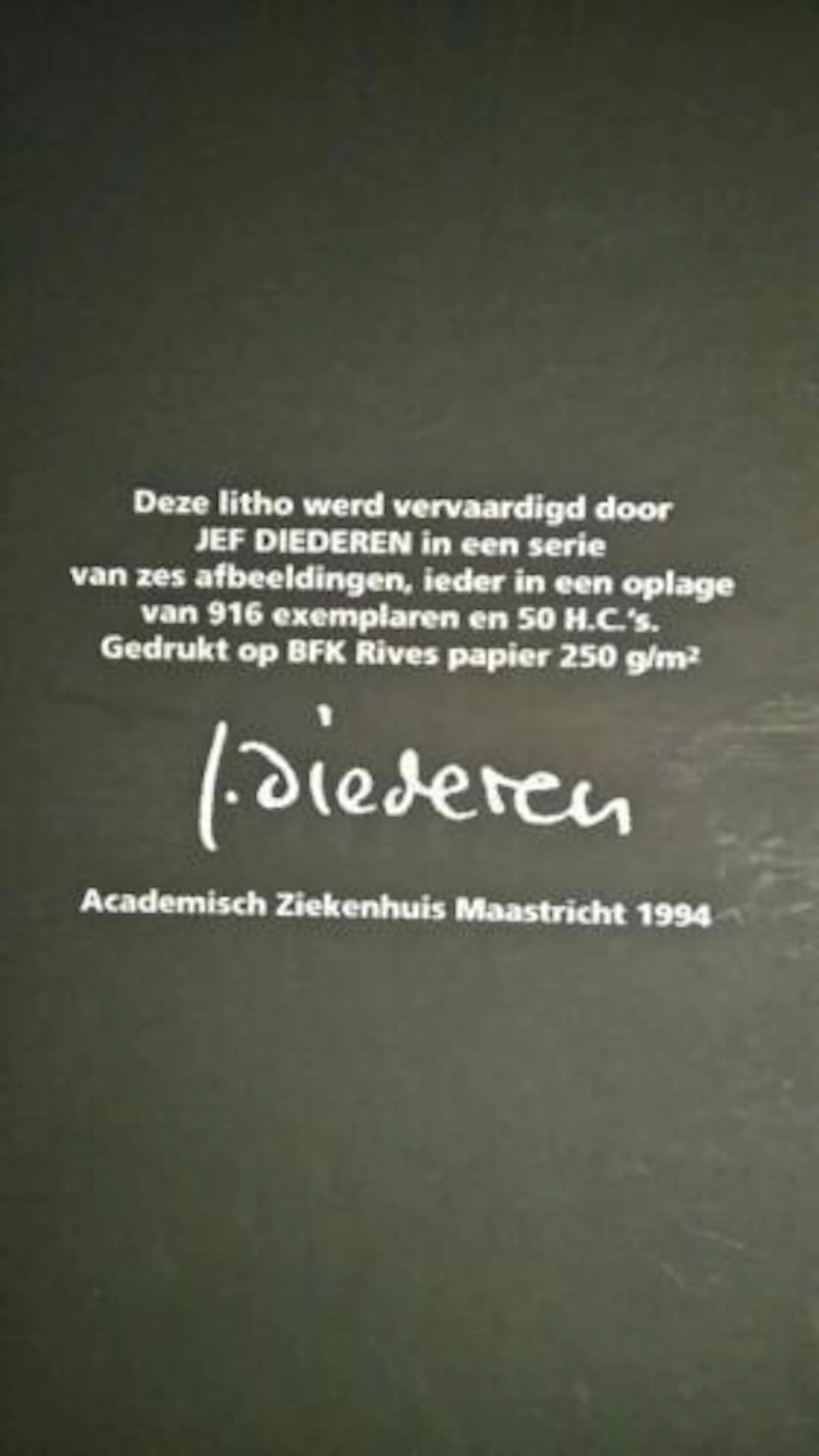 Litho, vervaardigd in een oplage van 916 exemplaren en 50 H.C.'s Gedrukt op BFK Rives papier 250 g