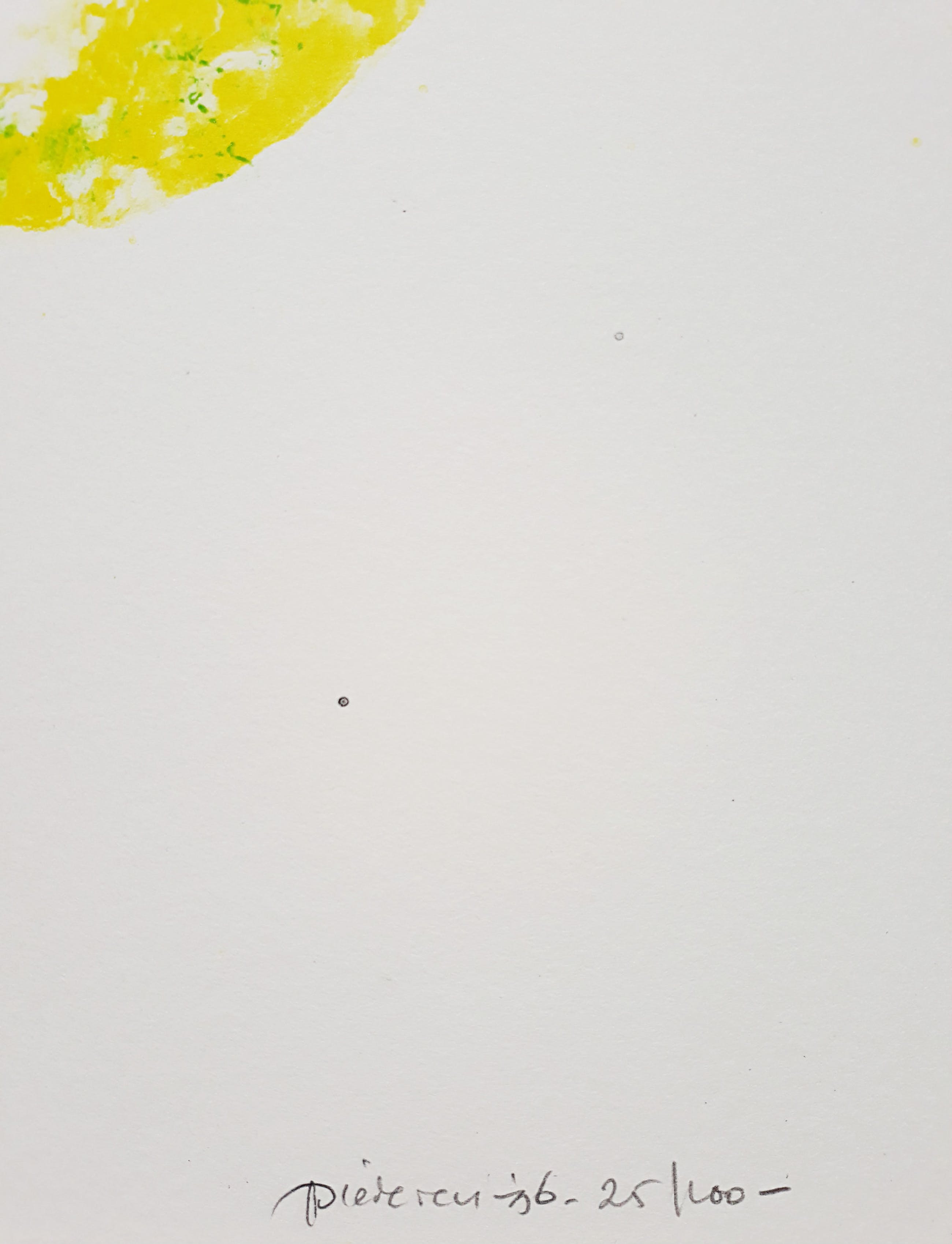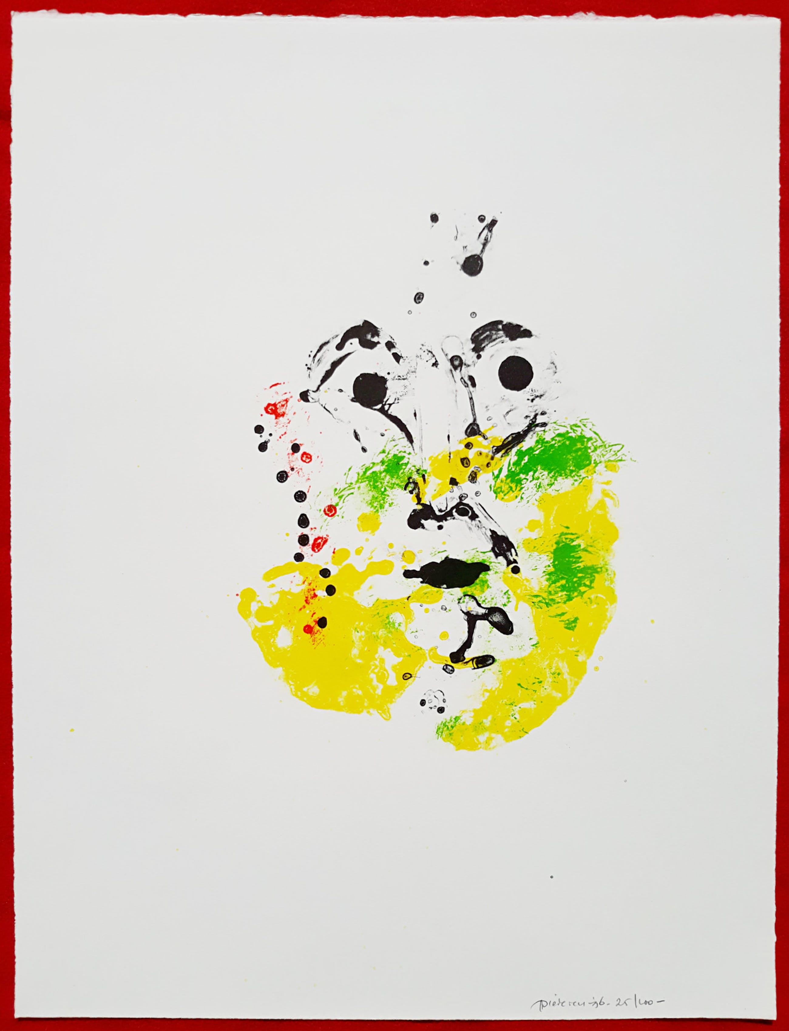 Karakteristiek hoofd van Jef Diederen. Litho op Rives papier, met potlood gesigneerd, gedateerd (‘96) en genummerd (25/100). In mint conditie.