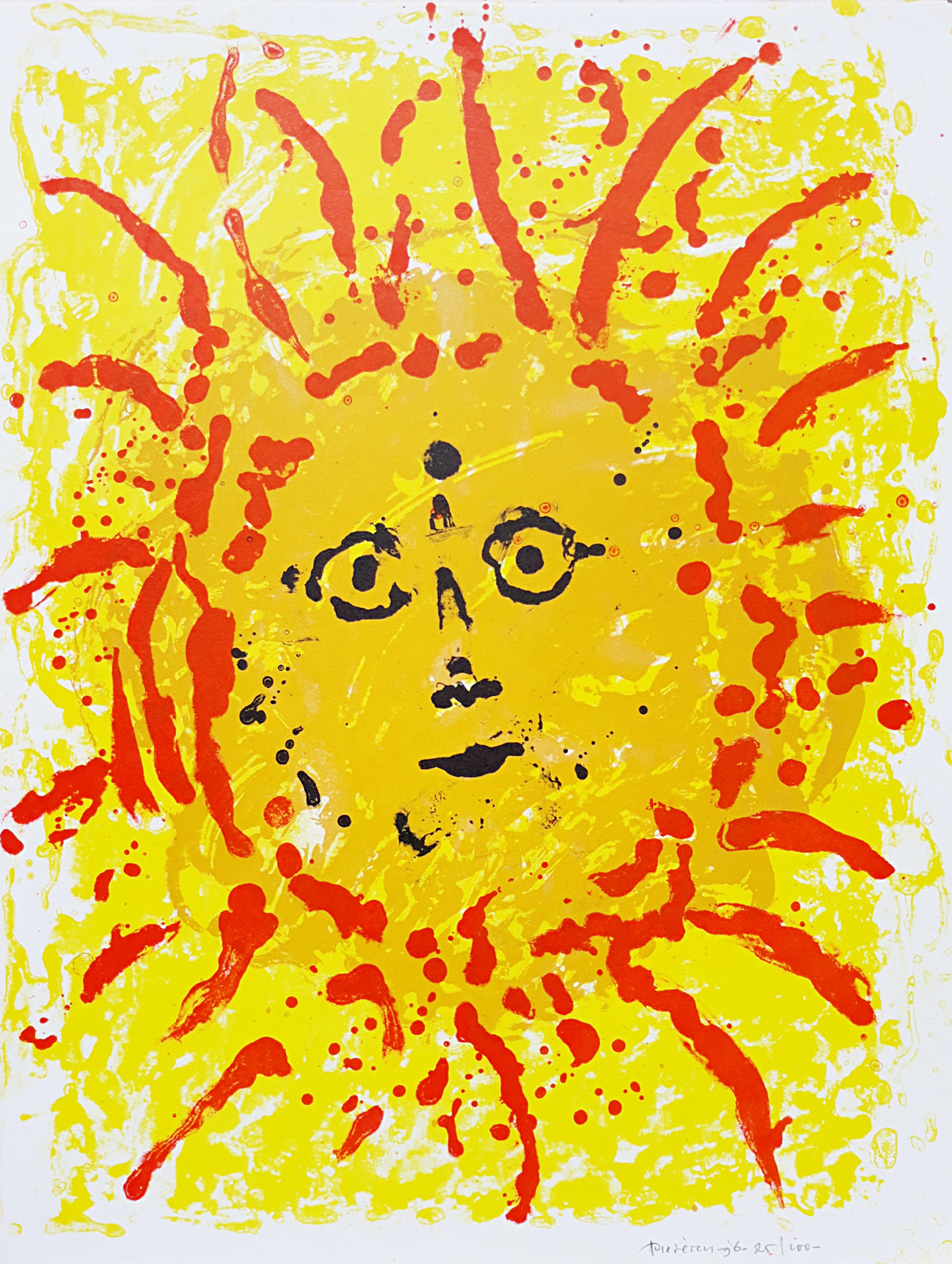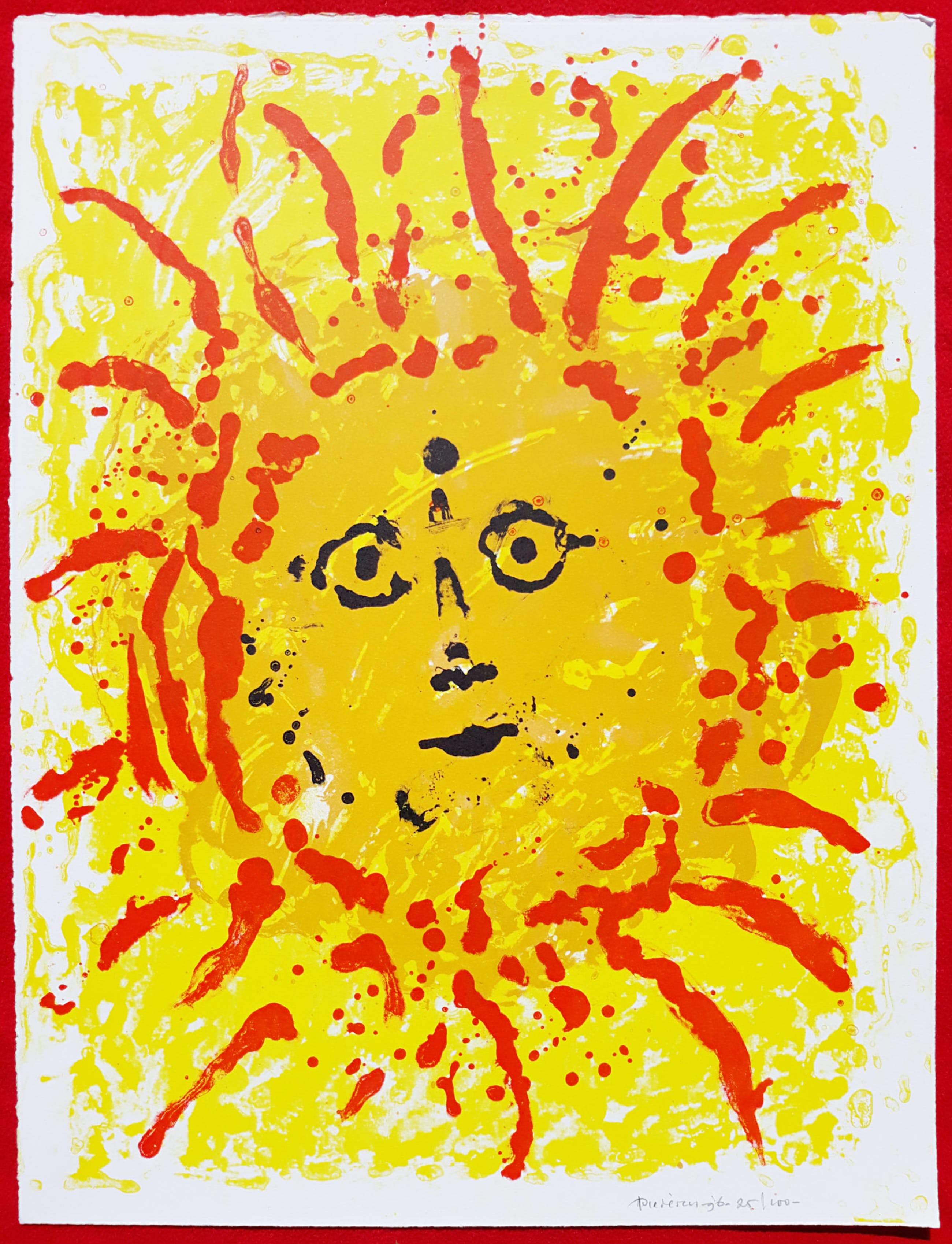 Vrolijk, stralend werk van Jef Diederen. Litho op Rives papier, met potlood gesigneerd, gedateerd (‘96) en genummerd (25/100). In mint conditie.