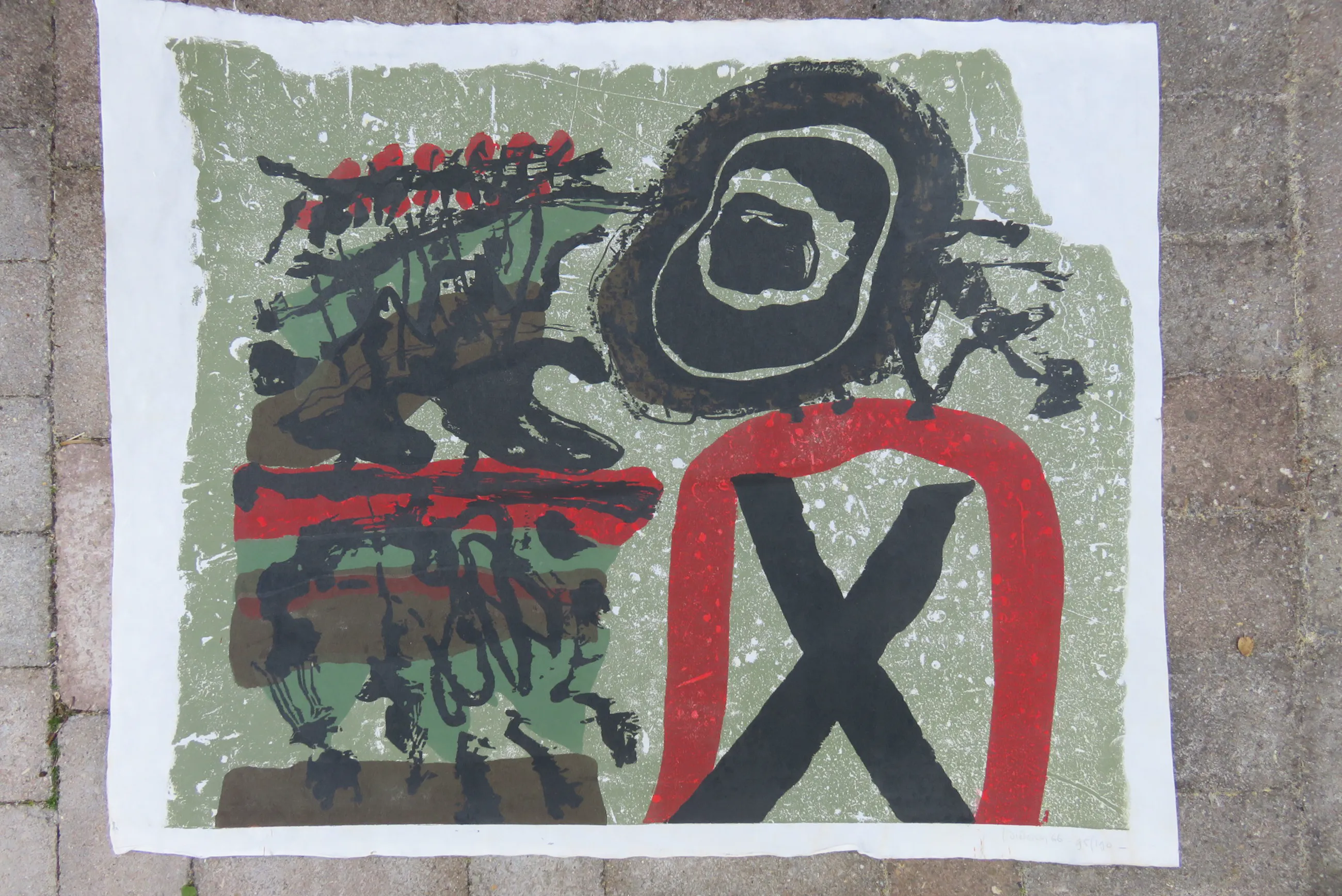Litho Jef diederen jaar 1966 oplage 190. gesigneerd met potlood en '66 95/190. in redelijk tot goede staat op rijst papier
