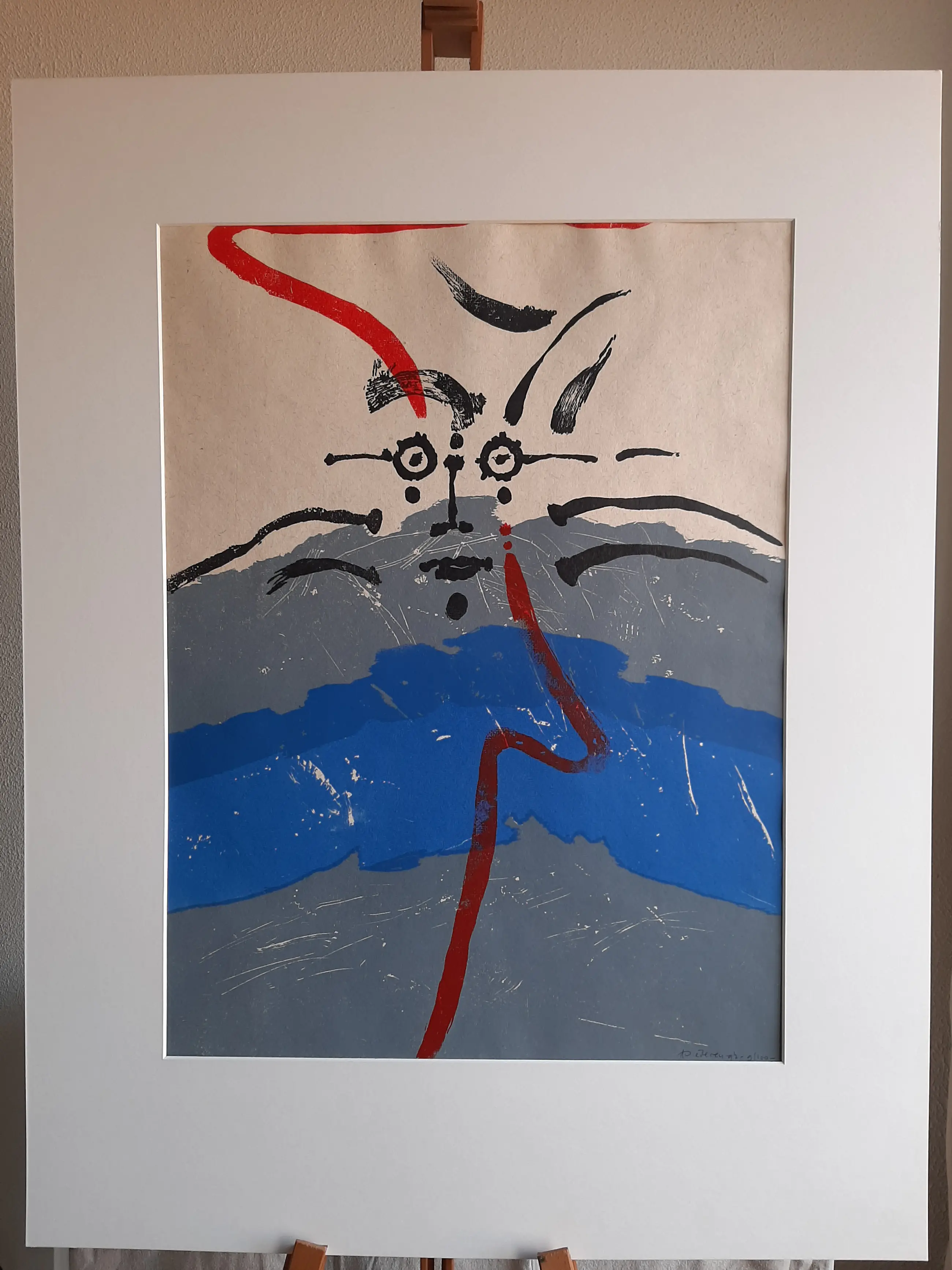Werk is helaas ongelijk verkleurt door een te klein passe-partout (zie foto's)