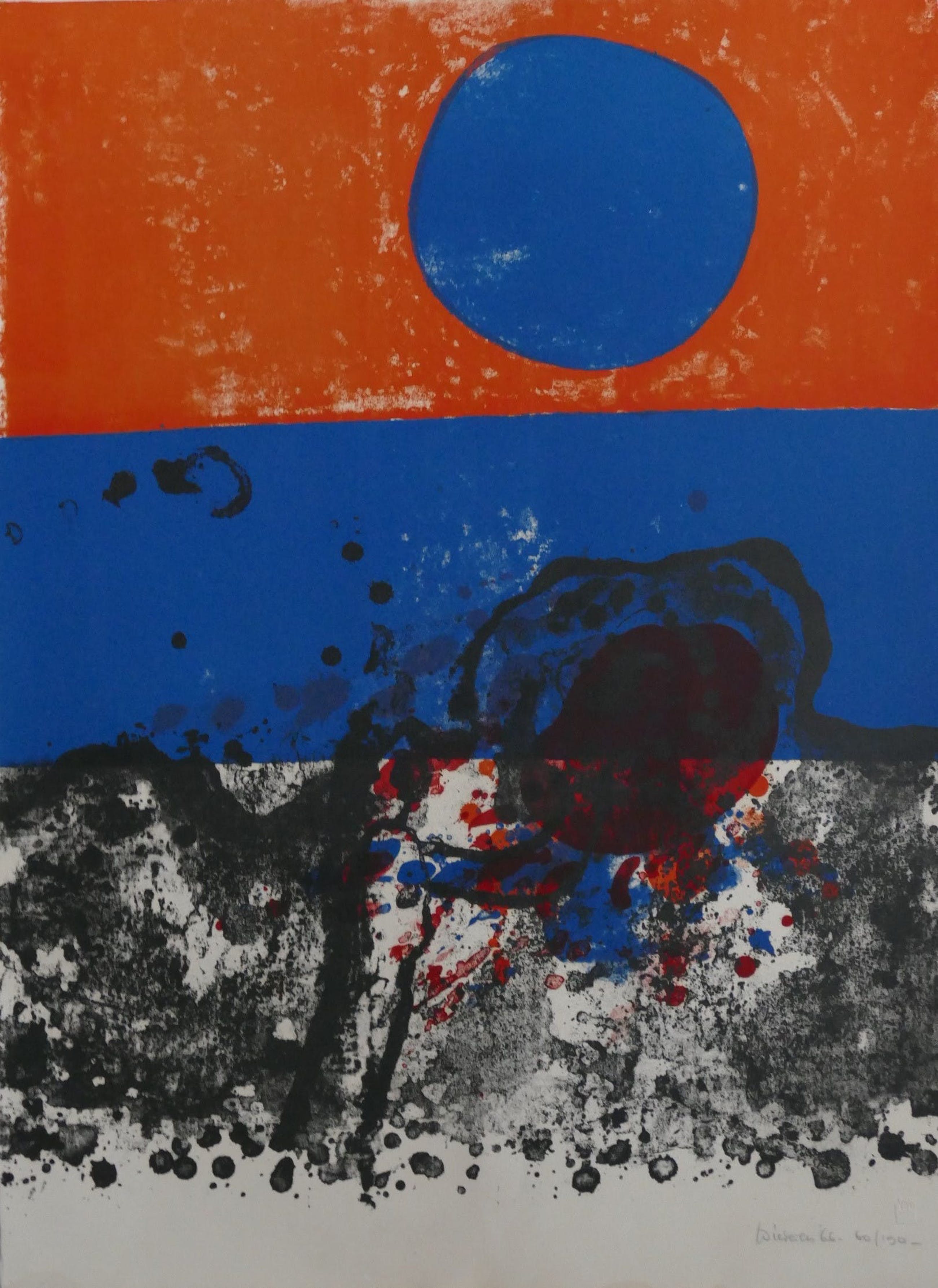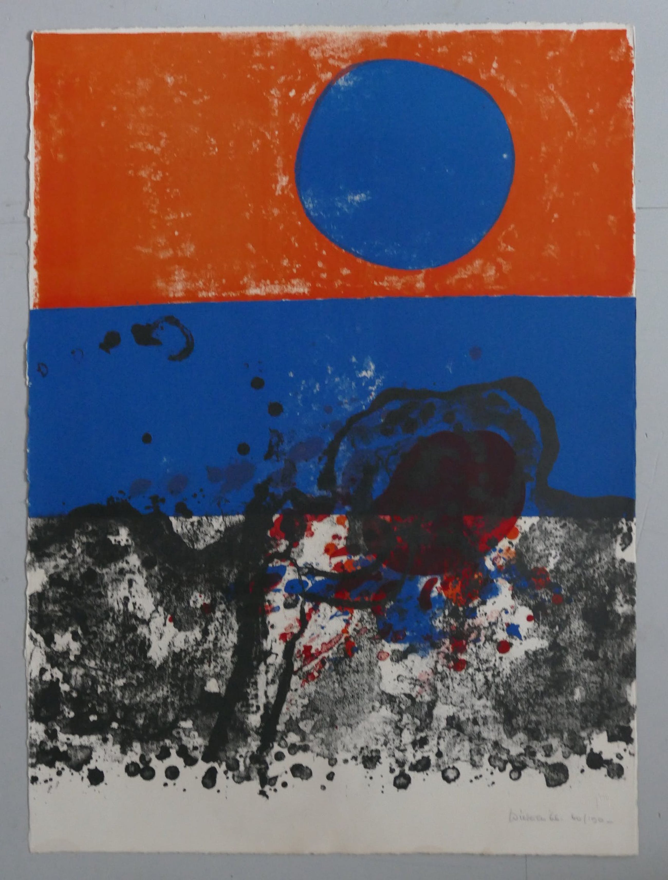 Vierkleurige litho " Onder de vlag " uit de reeks Prent 190. Gedateerd, gesigneerd en genummerd. Diederen ( Heerlen 1920 - Amsterdam 2009 ) wordt gerekend tot een van de belangrijkste naoorlogse Nederlandse kunstenaars. Met Ger Lataster en Pieter Defeche maakte hij deel uit van de zg. Amsterdamse Limburgers. Zijn stijl kan het best omschreven als lyrisch abstract, met als belangrijkste component de heldere sterke kleuren Signatuur : In potlood Diederen ' 66 66/190 en slag stempel 190 . Achterzijde ; J Diederen Wordt aangetekend en vlak - niet opgerold - verzonden