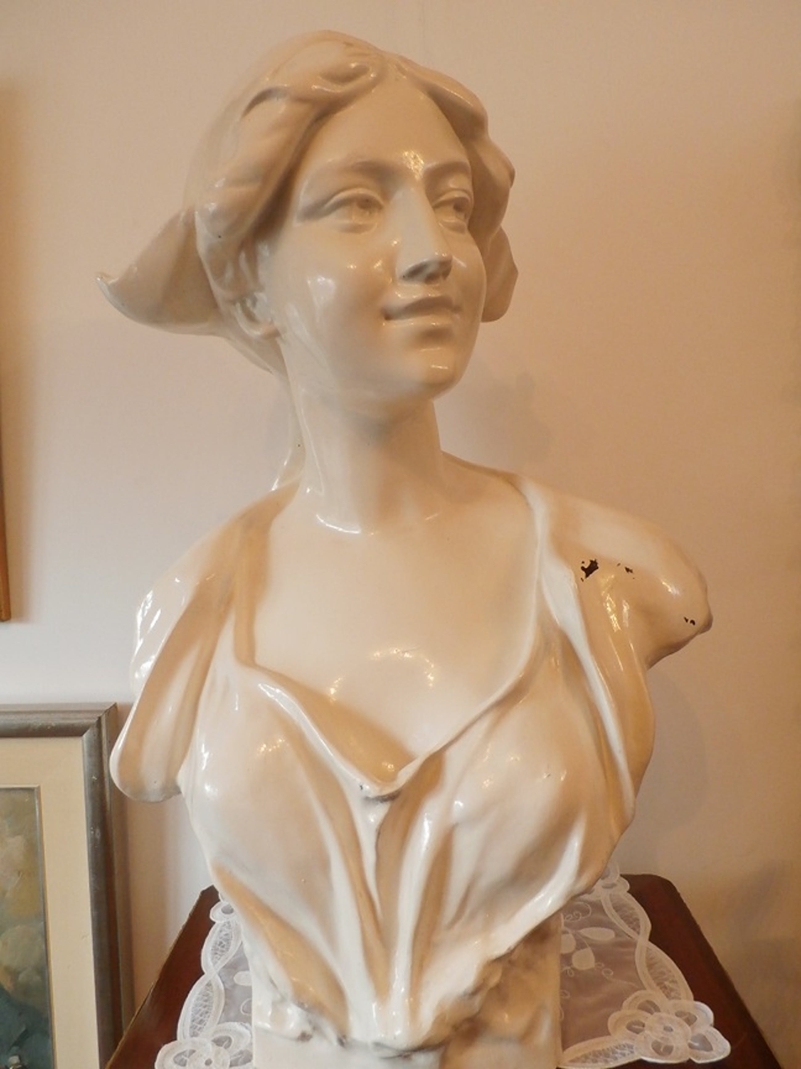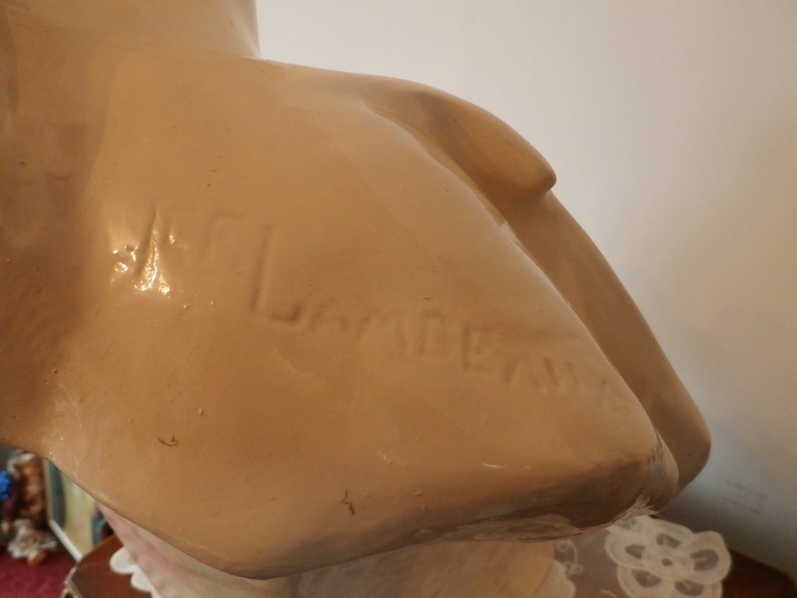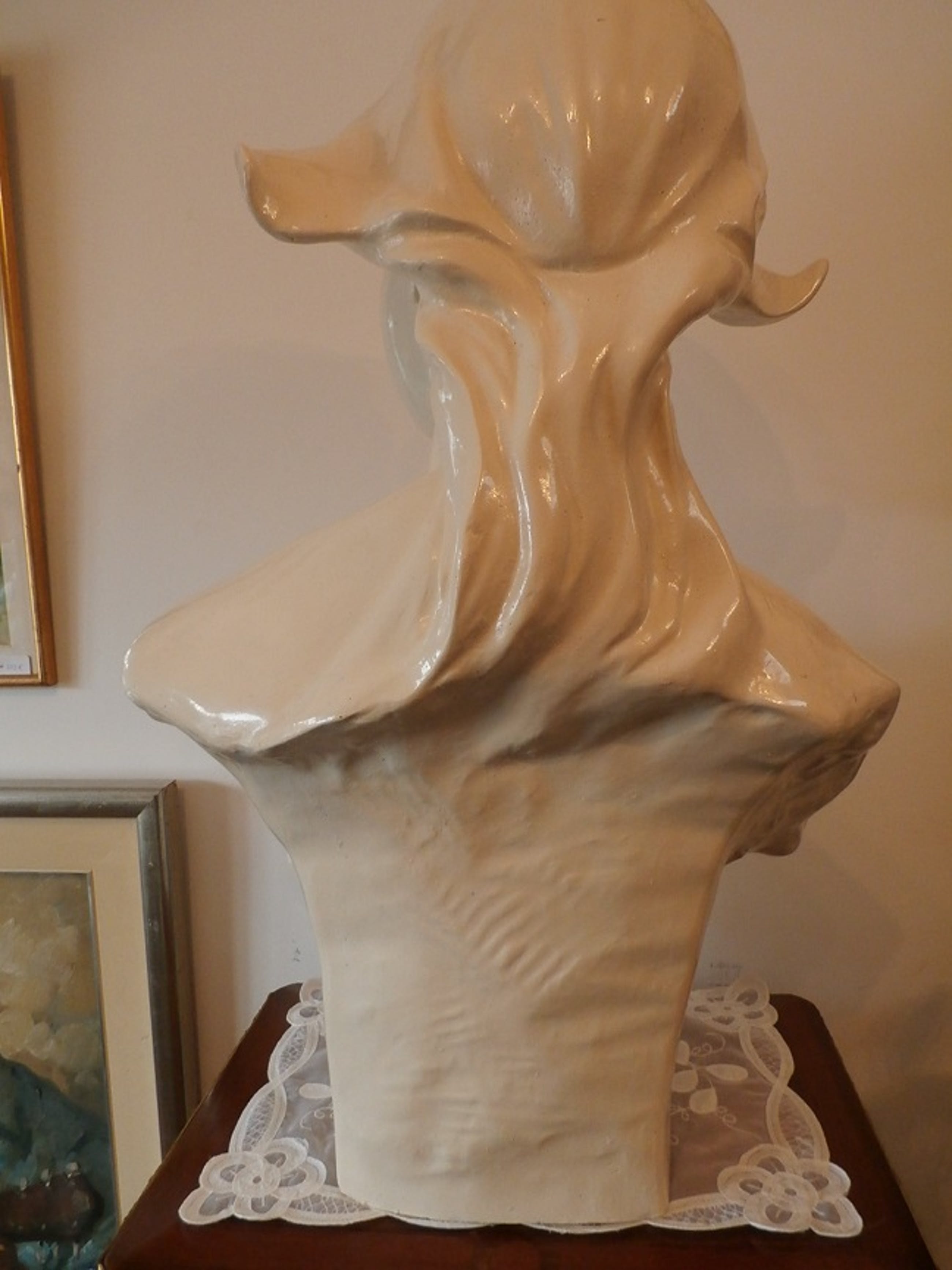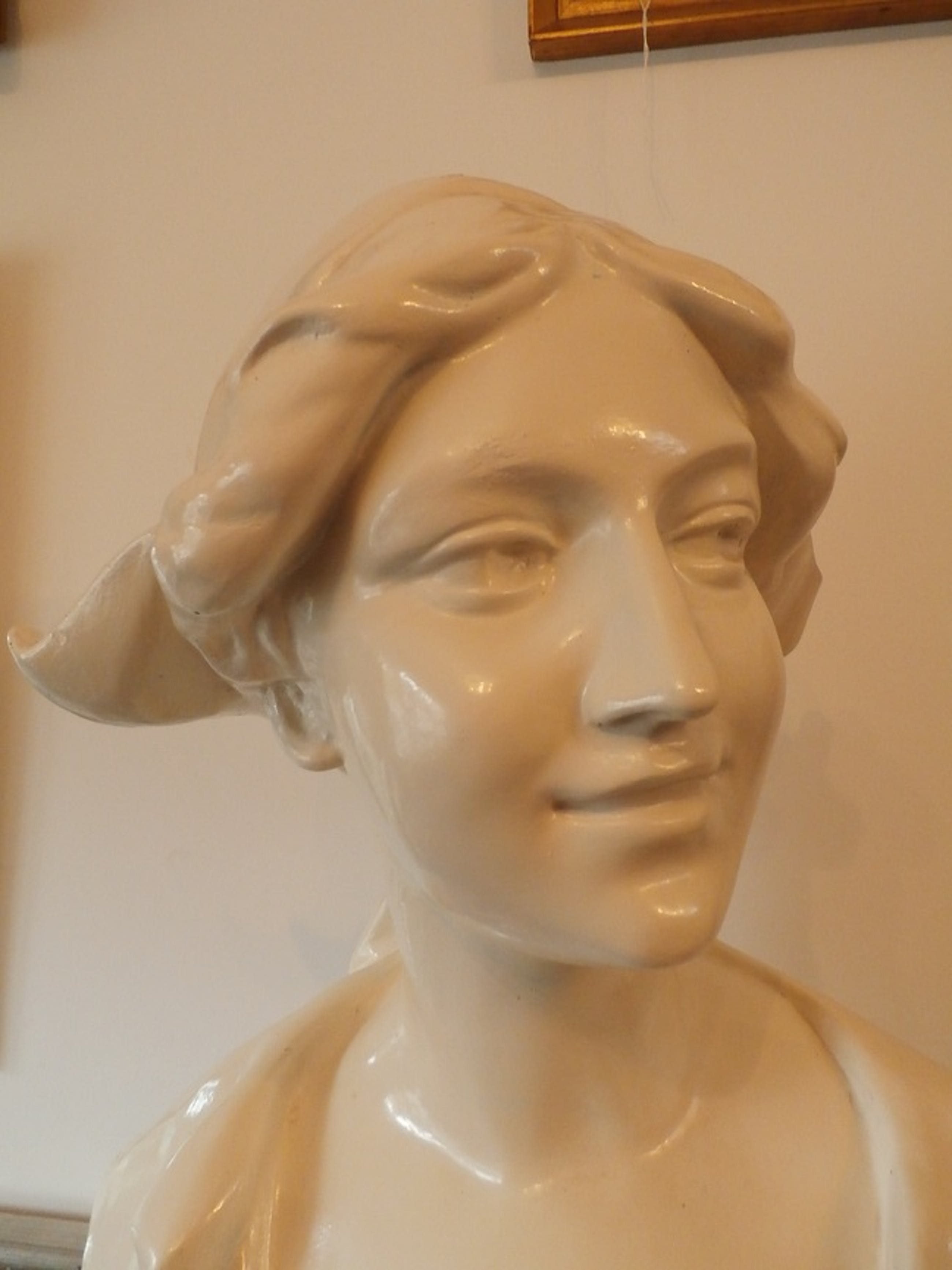 Enorme Buste van Jef Lambeaux 1852-1908 in goede staat(licht verfverlies op schouder zie foto) gesigneerd: Jef lambeaux hoogte 69cm vervaardigd uit plaaster