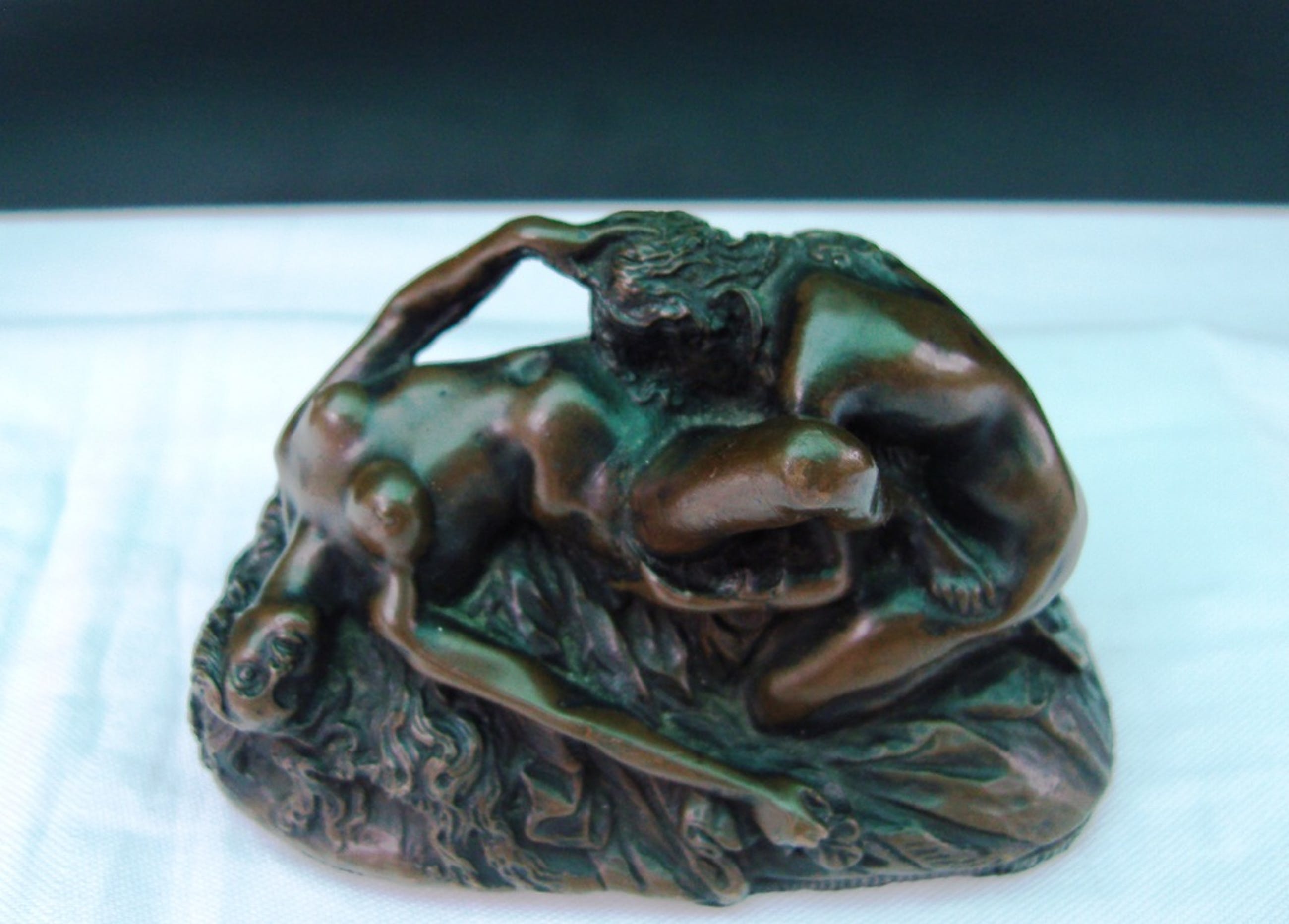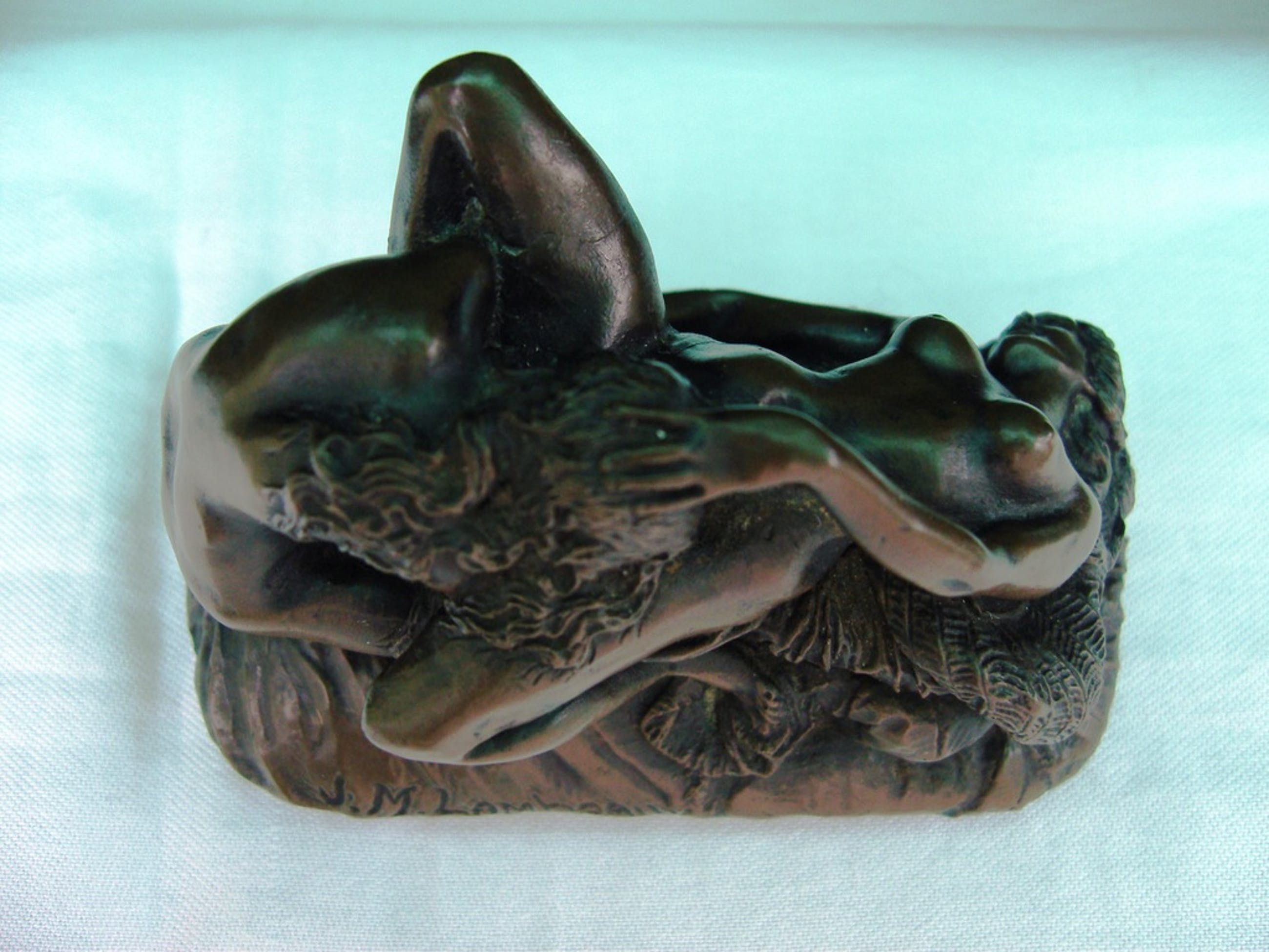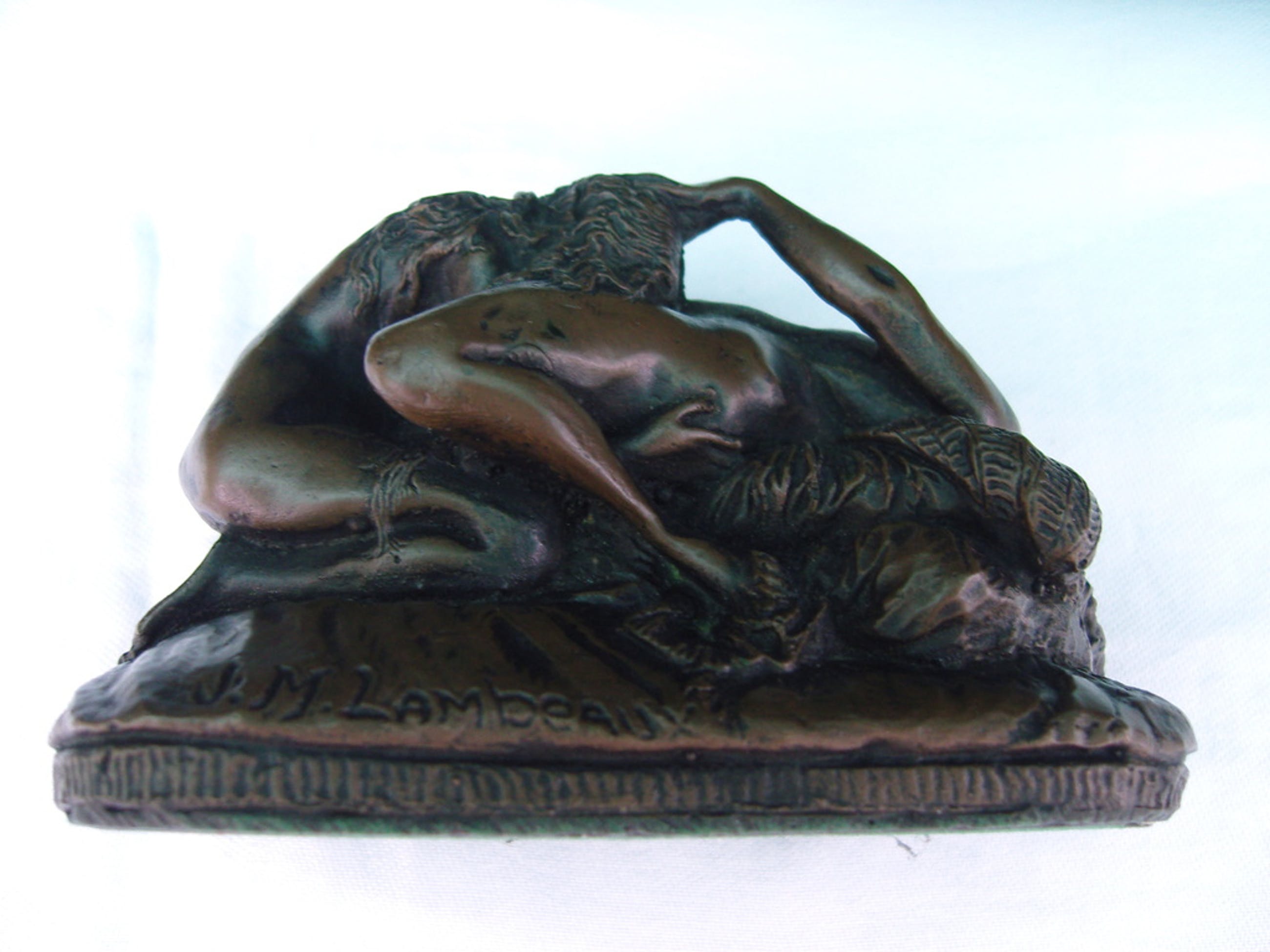 Fraai klein maar zwaar beeldje naar Jef Lambeaux. Twee dames die elkaar liefhebben, een beeldje met een behoorlijke erotische lading! Het beeldje heeft een vrijwel onzichtbare restauratie.