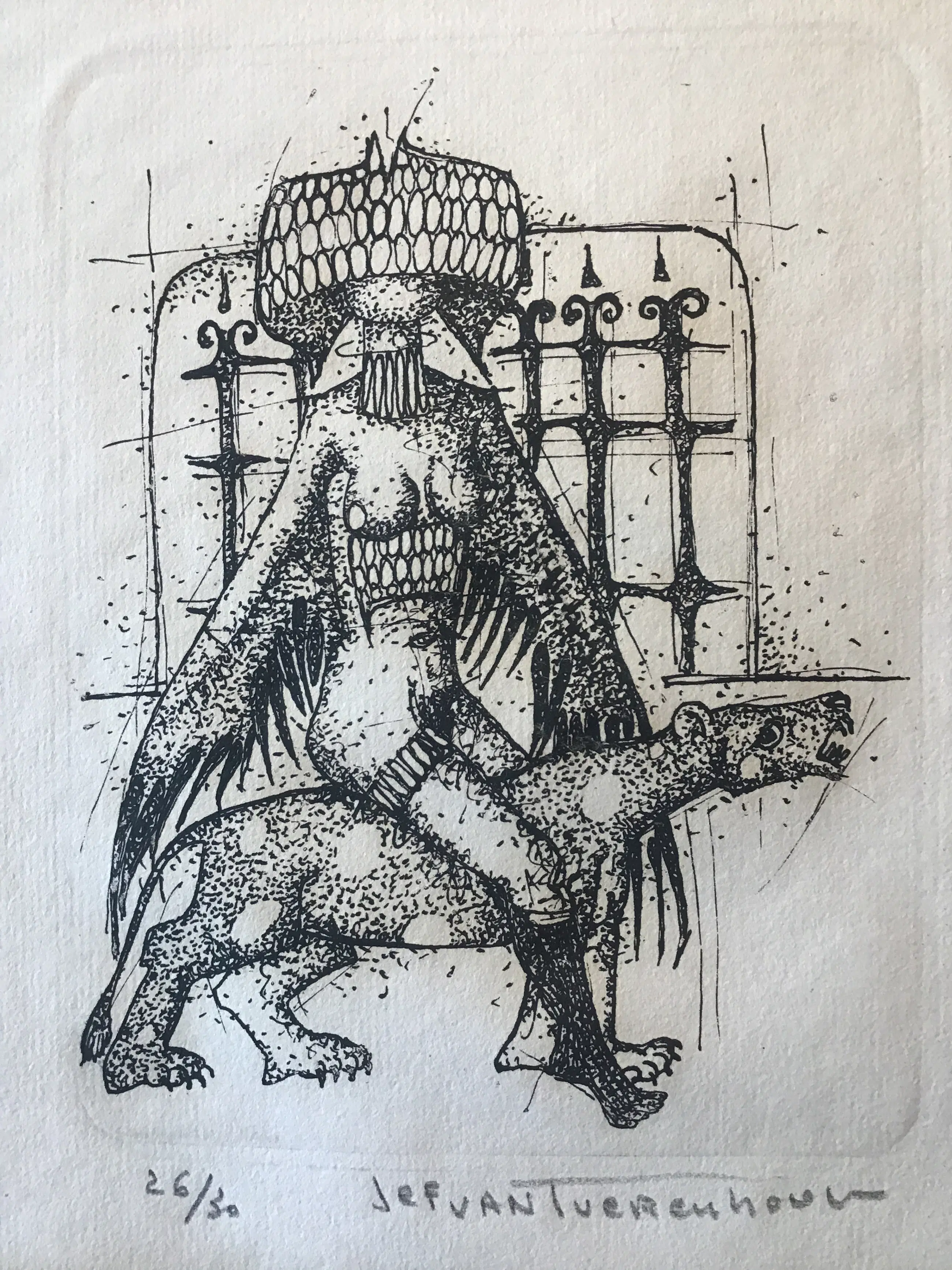 Werk uit 1968, kleine oplage, ooit ingelijst geweest, lichte verkleuring, 39 x 50 cm, zie foto’s , op achterzijde gekleefd blad