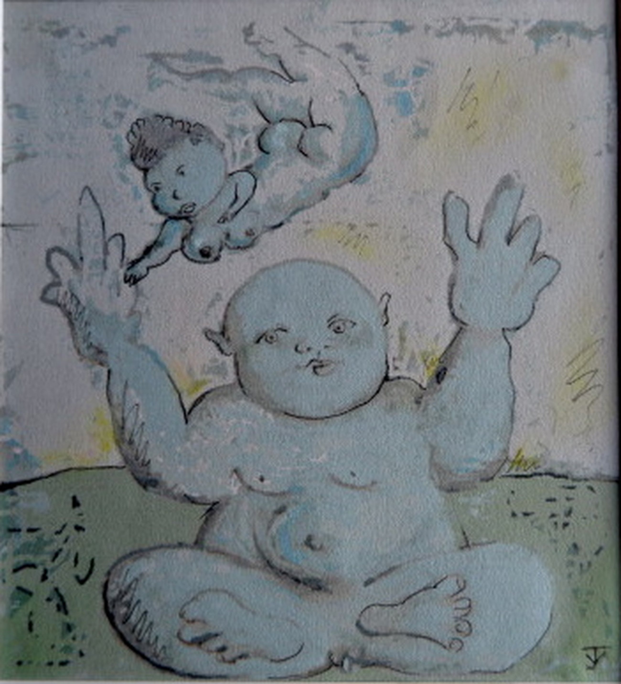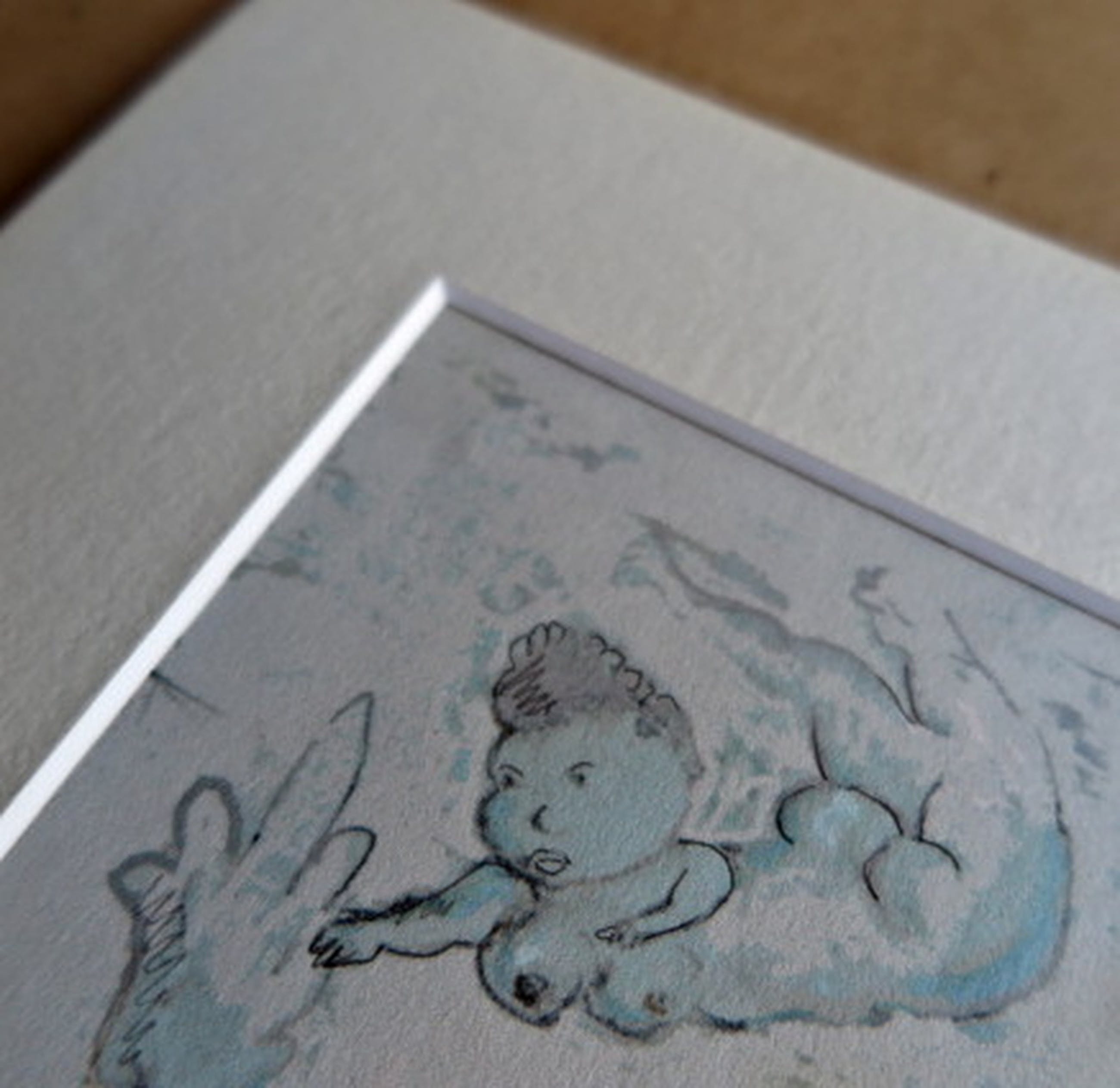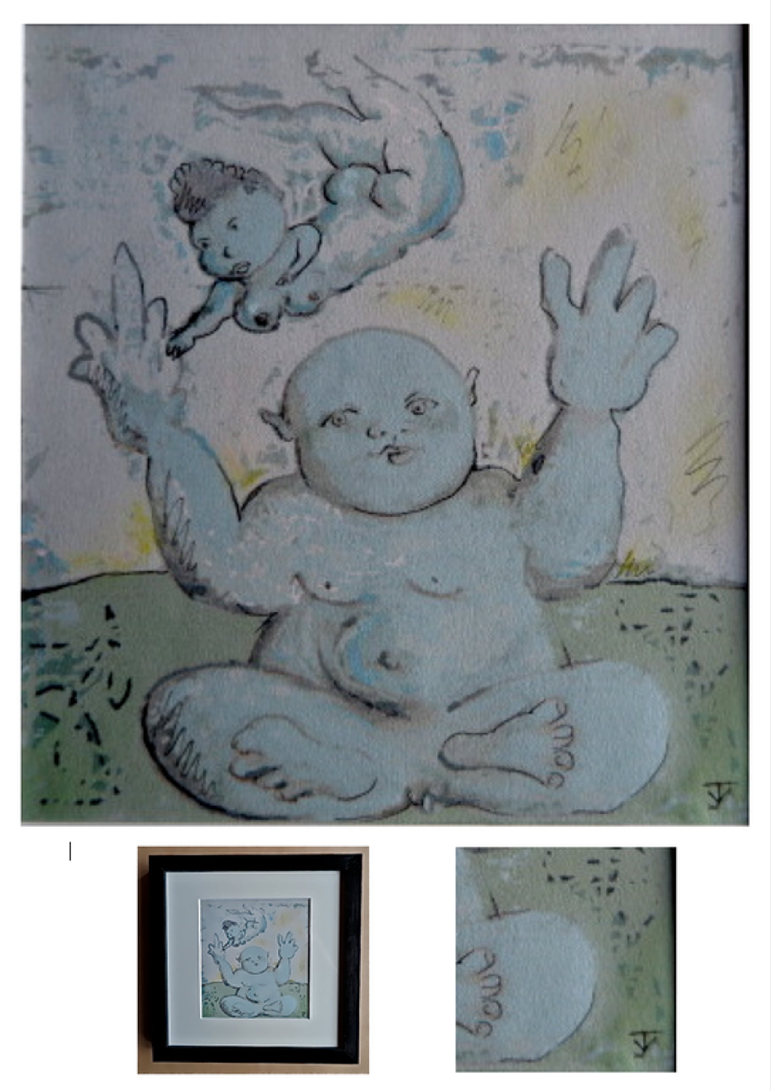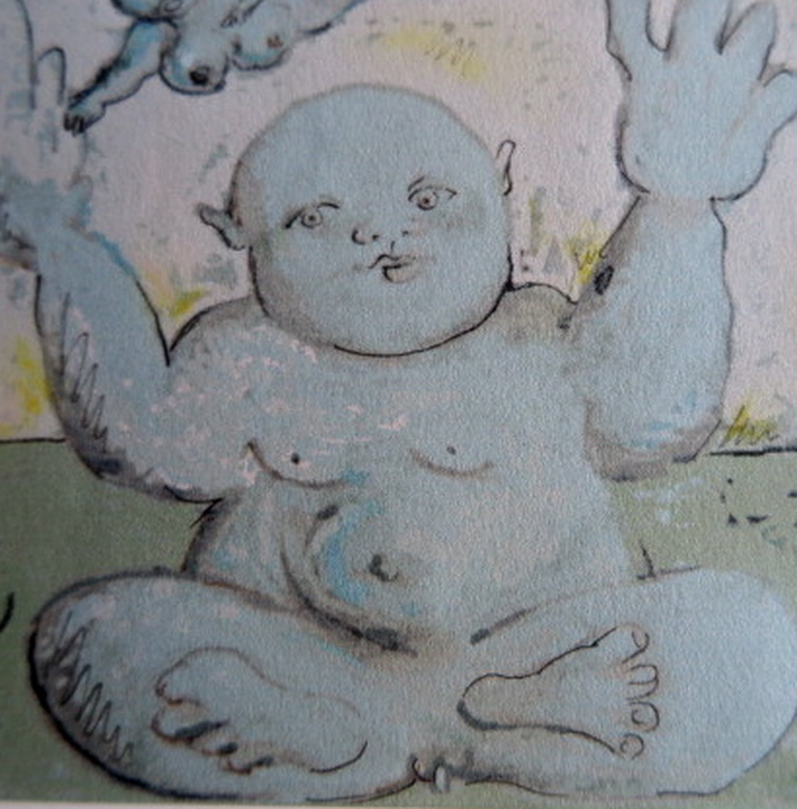 Licht erotische litho met een knipoog. Op de grens van surrealisme en magisch realisme. Laat werk van Jef van Tuerenhout (1926-2006)