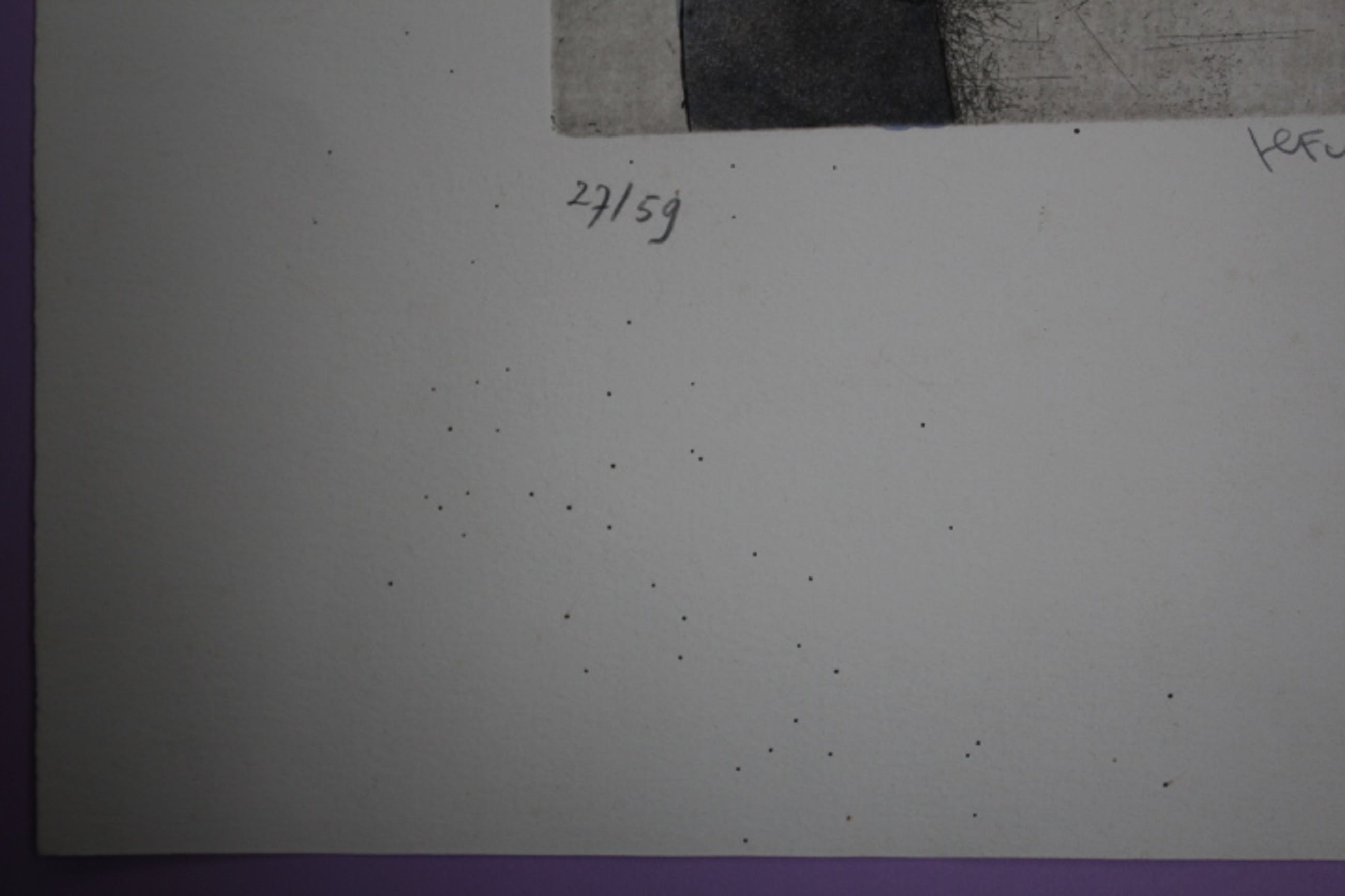 De aangeboden litho heeft als minpuntje , onderaan linker hoek en klein deel linker zijde zijn er zwarte stipjes aanwezig , mogelijk inktvlekjes ?? Zijn wel klein , zie afbeeldingen 56