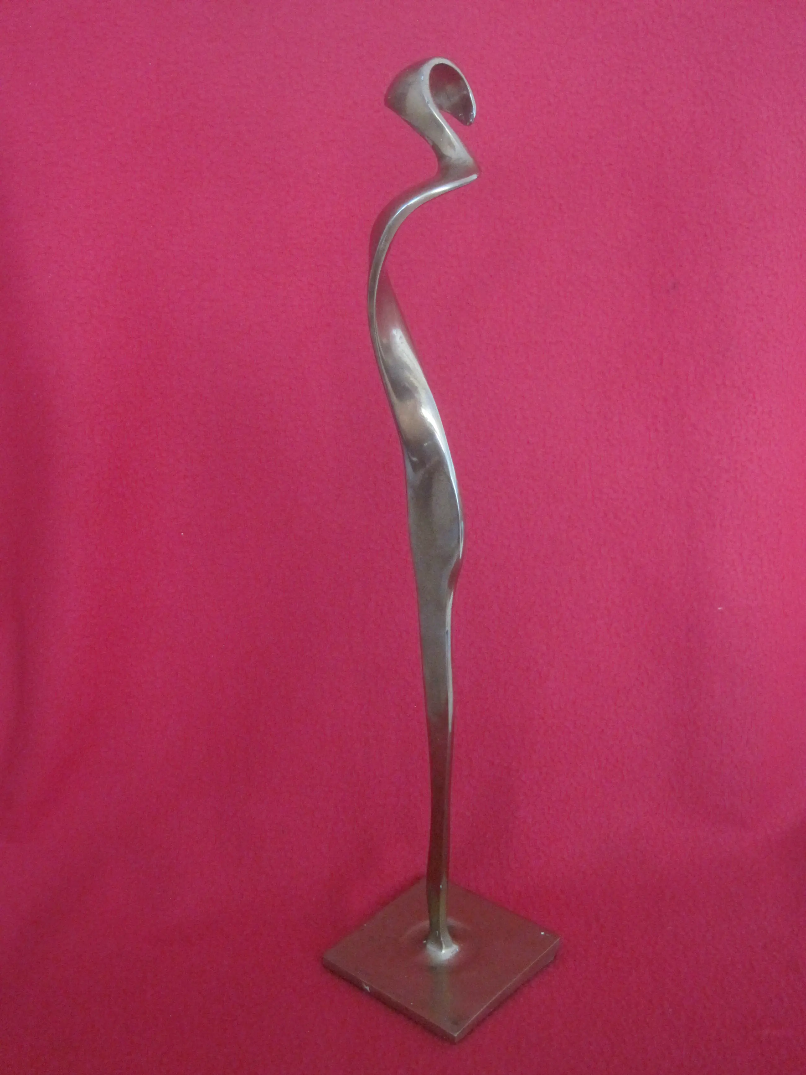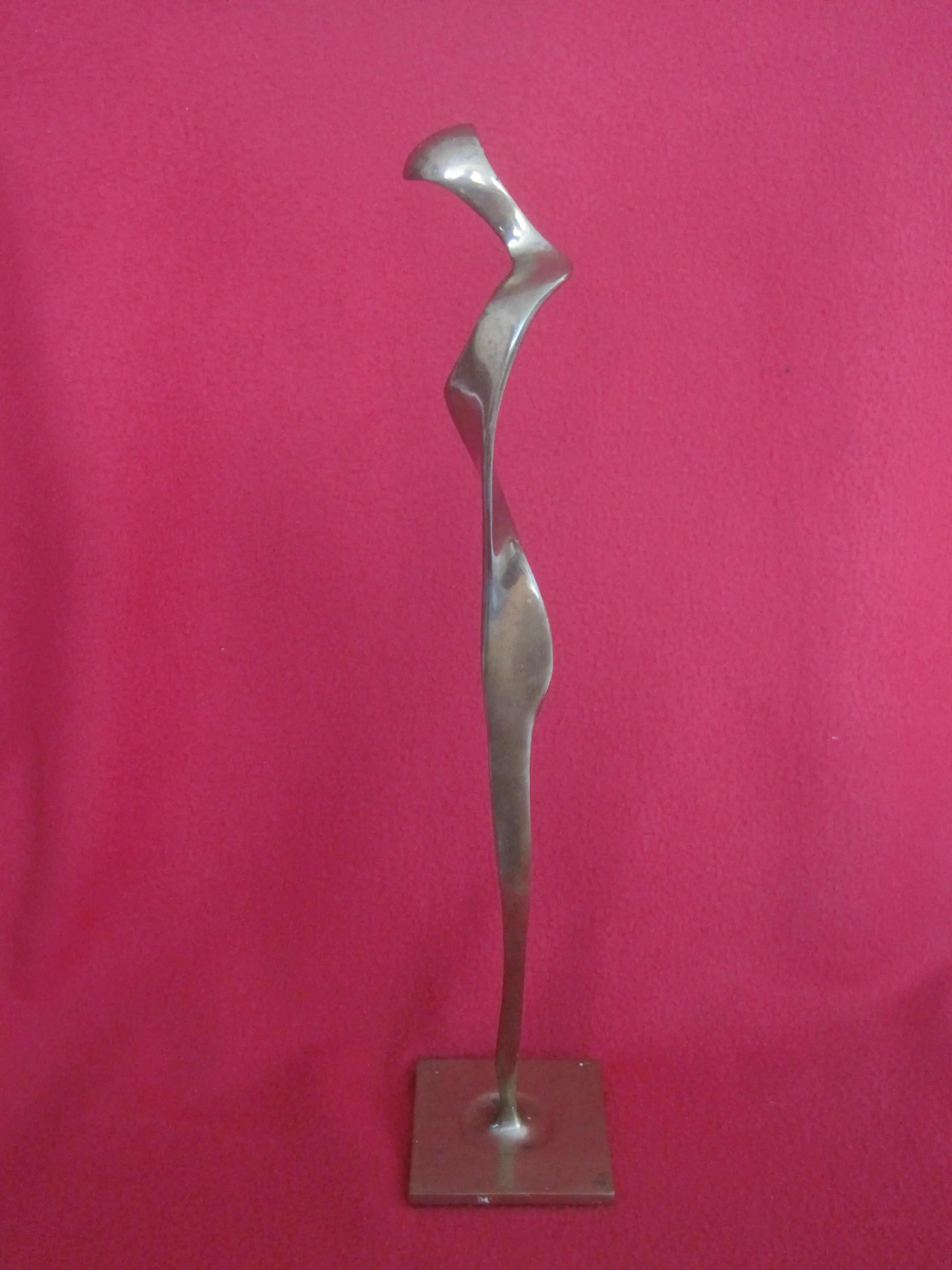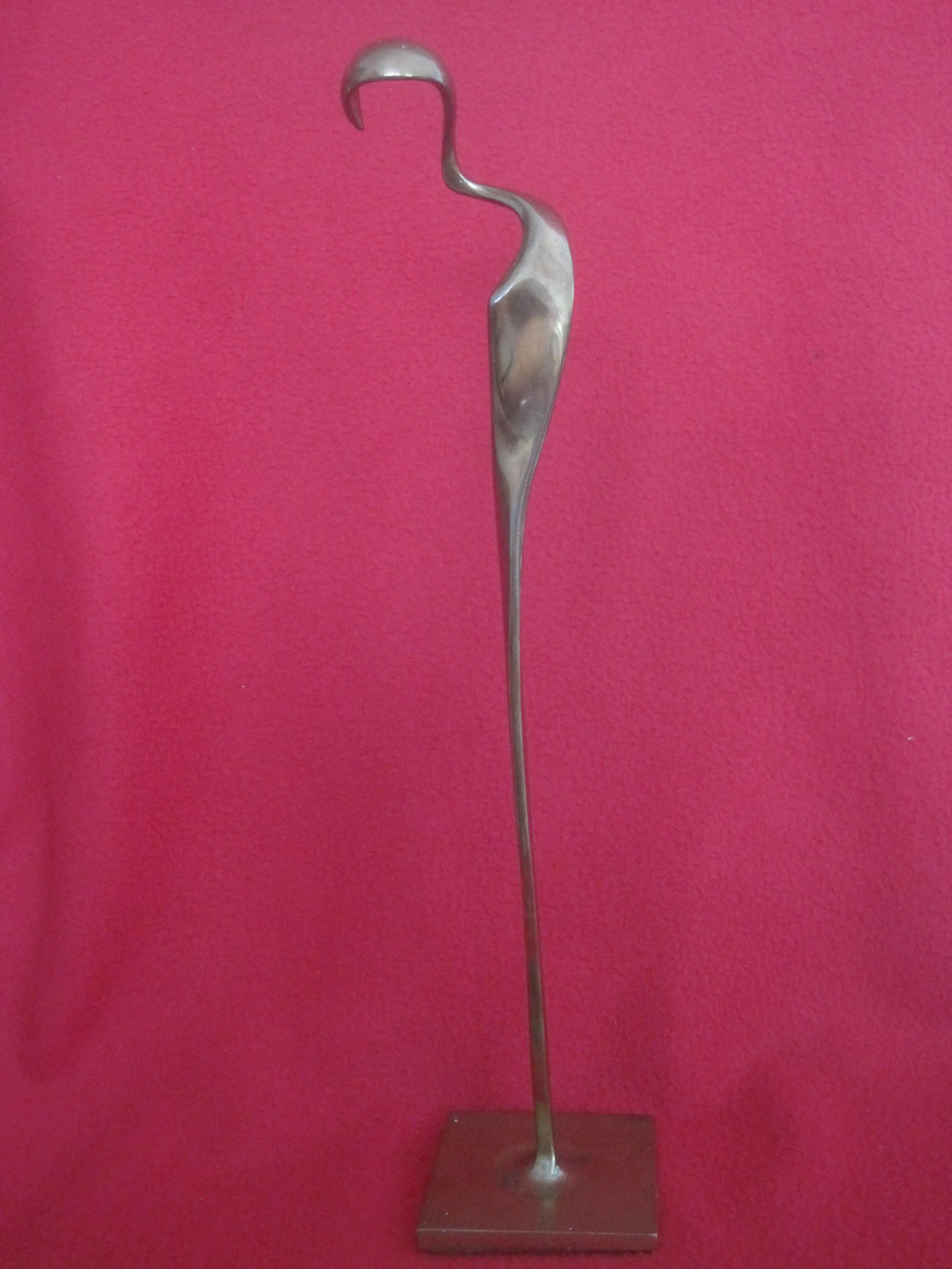 Een heel elegant bronzen beeld door Jef Wishaupt ( 1940 ) Men kan er zich van alles bij voorstellen: van een vrouwelijke tot een vogelachtige figuur.. Het beeld heeft patina, maar kan naar mijn mening gewoon opgepoetst worden. Gesigneerd en gedateerd onder op de sokkel.