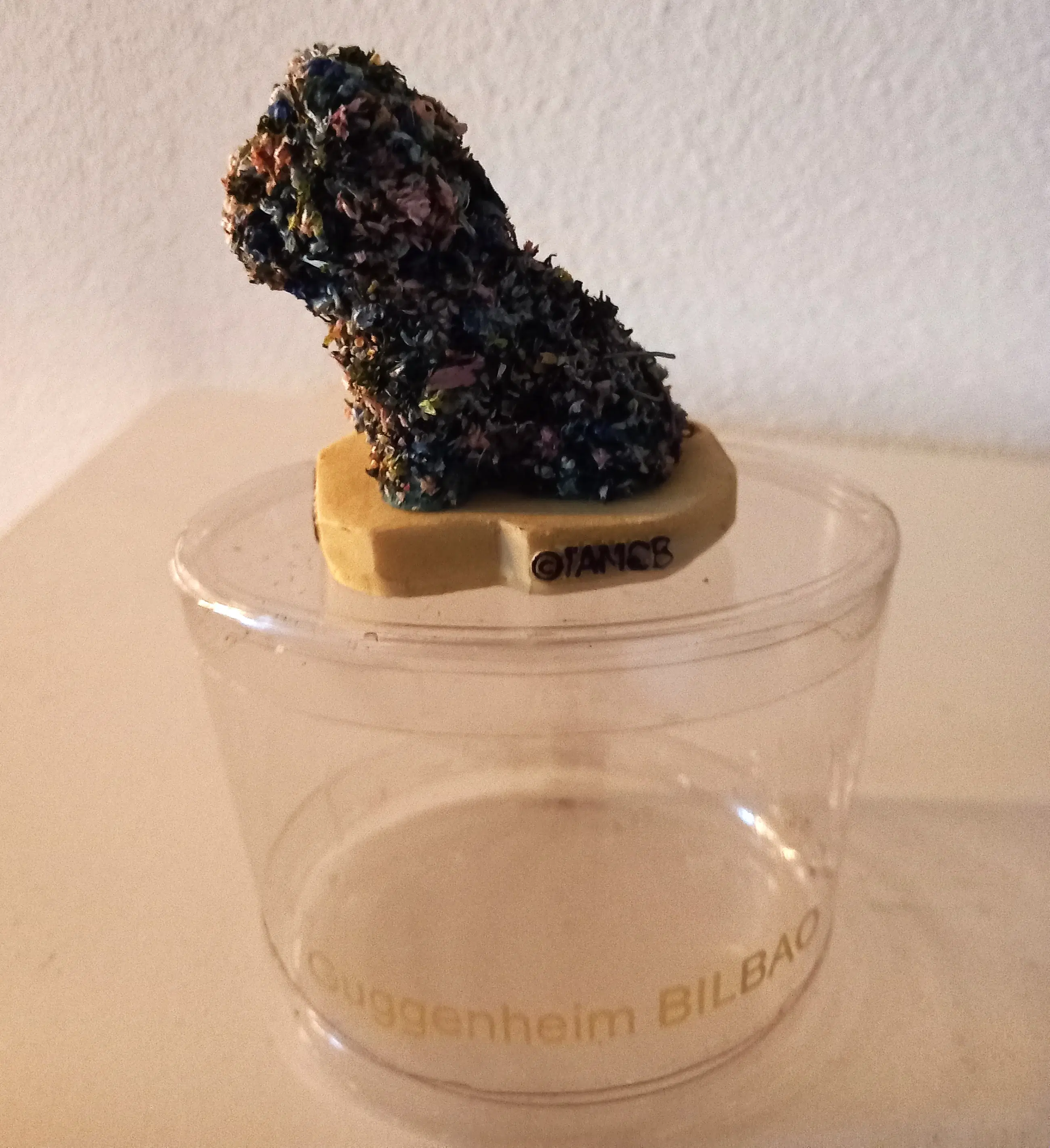 Zeldzaam, zeer gezocht en waardevol klein schaalmodel van 'Flower Puppy'van Jeff Koons,naar het tien meter hoog beeld, versierd met verse bloemen en planten, dat voor het Guggenheim Museum in Bilbao staat. (zie foto 3) Het beeldje is nieuw!