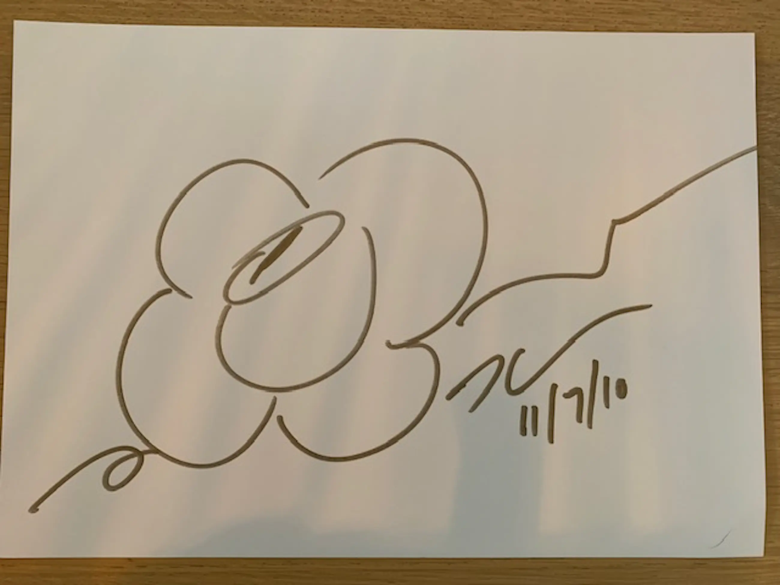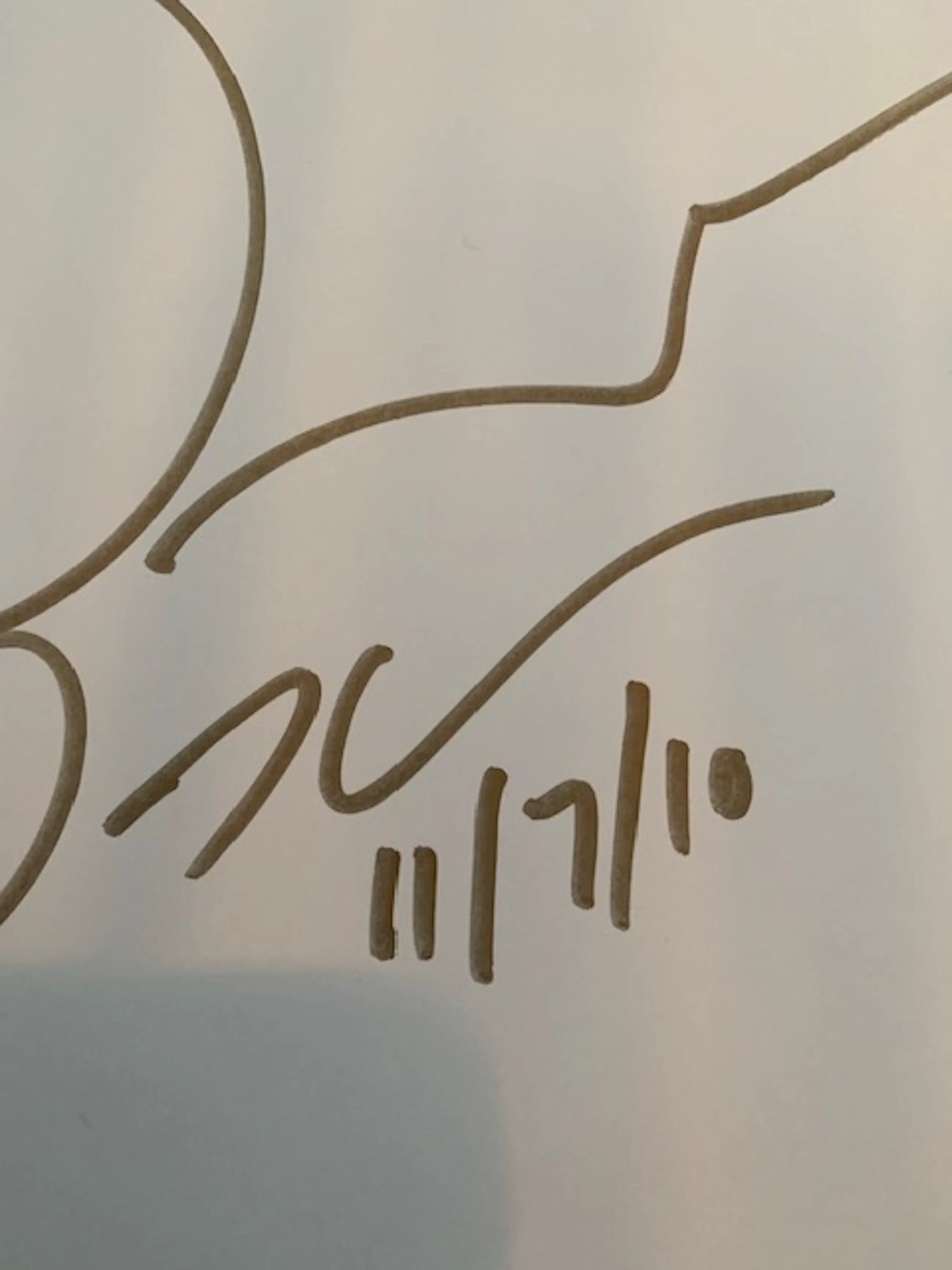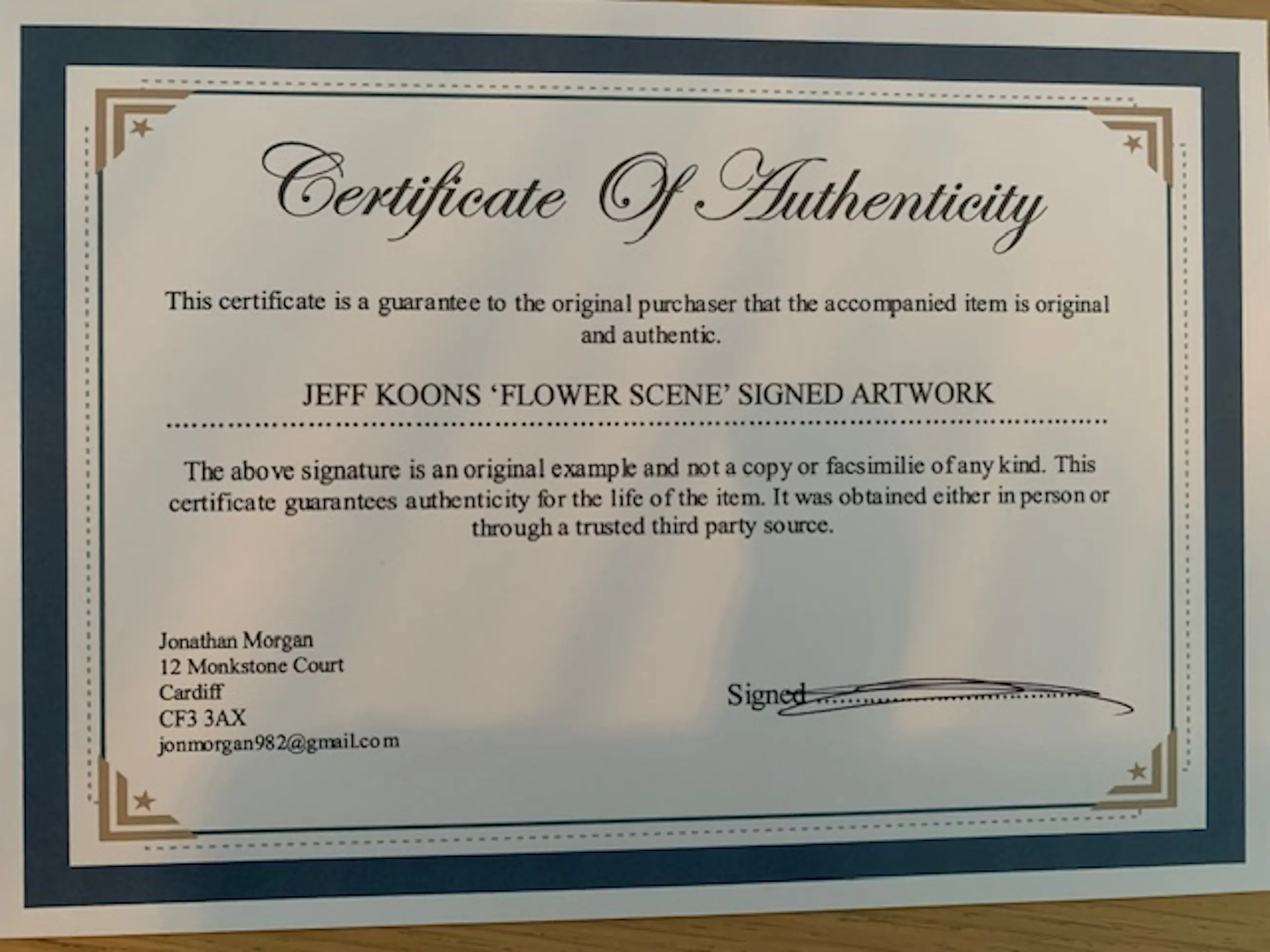 Een mooie tekening door Jeff Koons, materiaal viltstift op papier. Ondertekend en gedateerd 11/9/2014. Jeff Koons is samen Andy Warhol en Micael Basquiat een van de grondleggers van de pop art. Het werk is ingelijst, afmeting 30 x 40 cm, werk zelf 20 x 30 cm.
