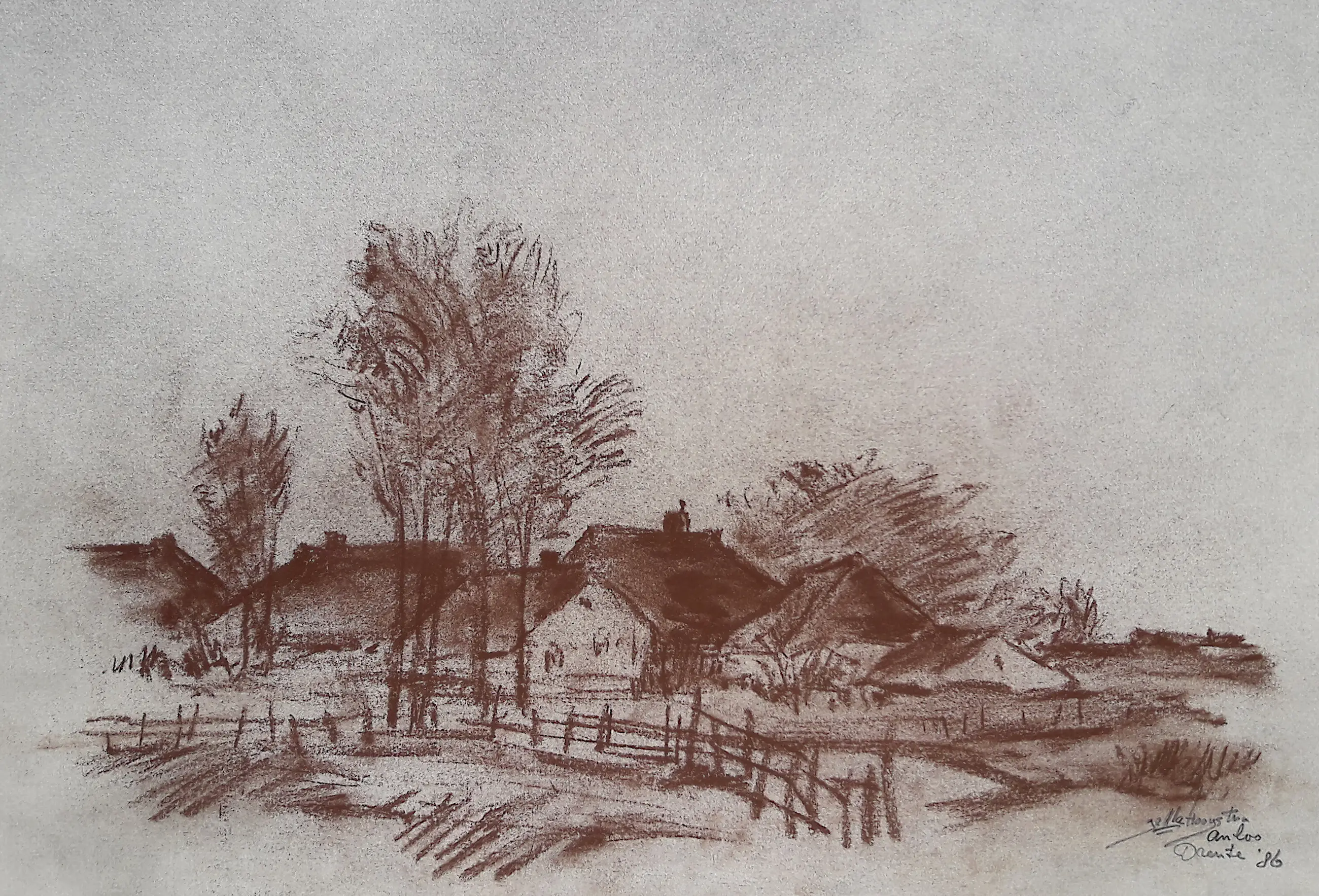 Sober, herkenbaar werk van Jelle Hoogstra. Tekening met pastelkrijt op dik papier, gesigneerd, gesitueerd en gedateerd (‘86) rechtsonder. In zeer goede conditie.