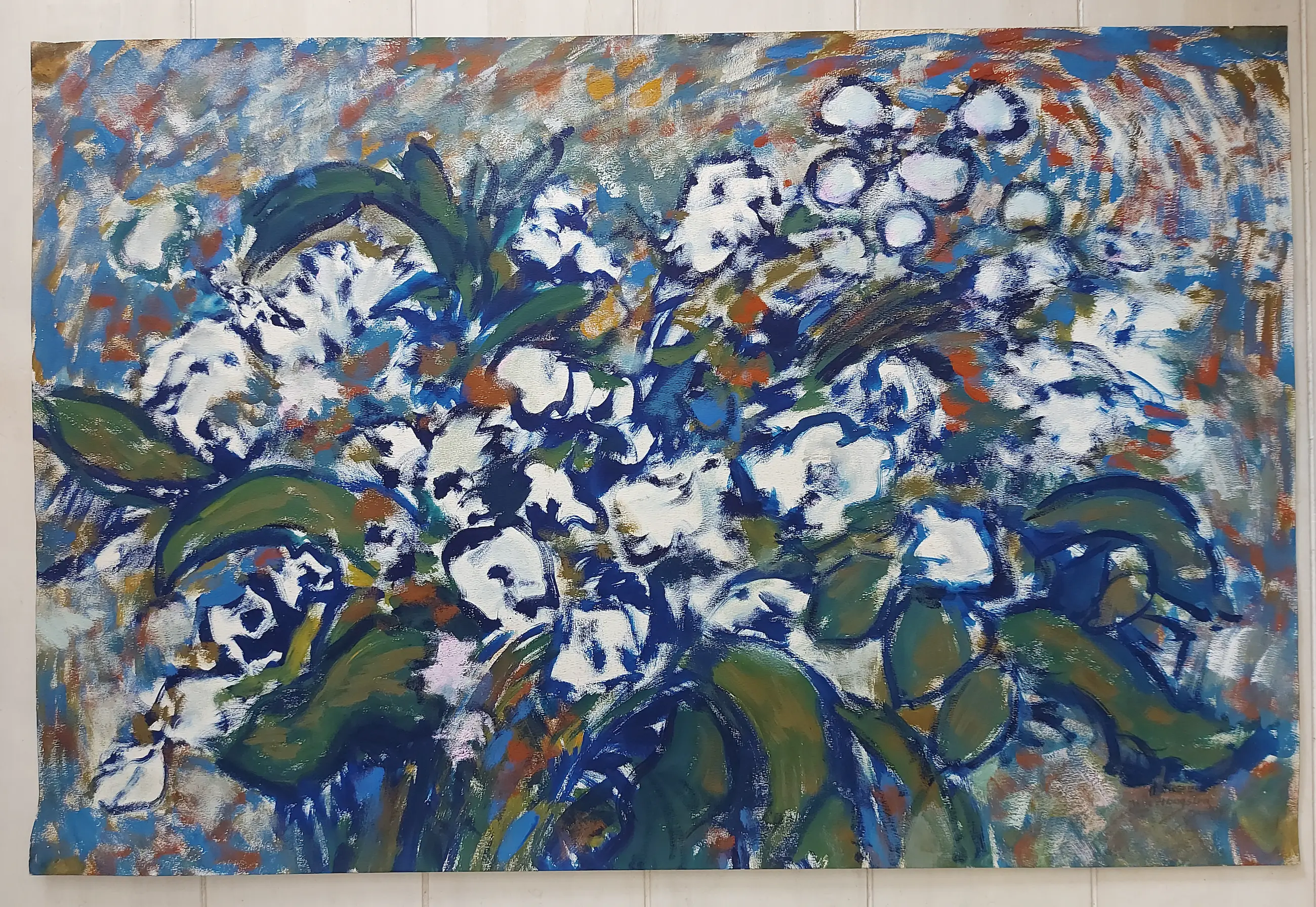 Bloemstilleven Aquarel op papier 110x73cm niet ingelijst rechtsonder gesigneerd en gedateerd 1984