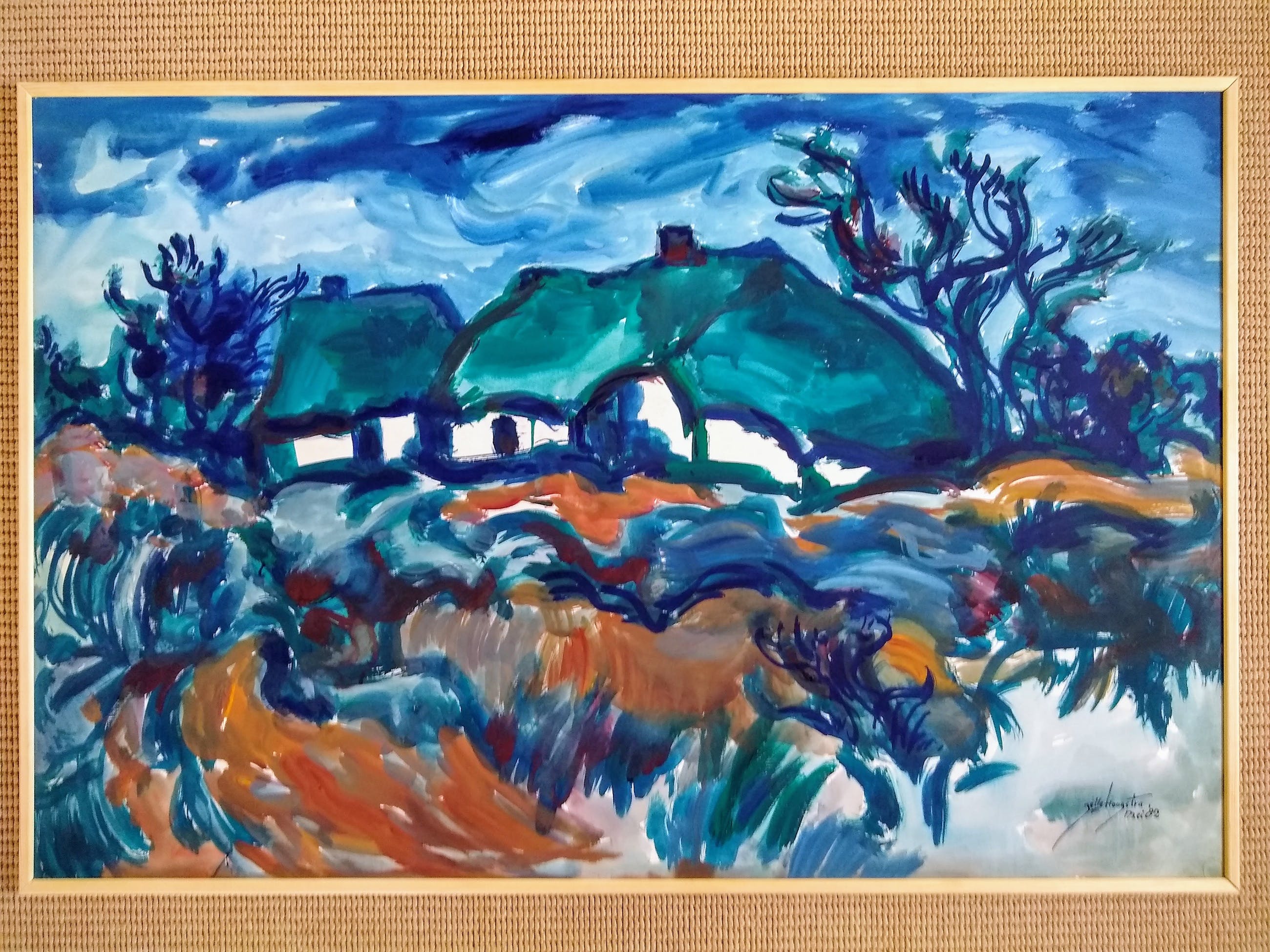 Dit krachtige werk is in gouache uitgevoerd op dik schilderspapier en vervolgens aangebracht op board. Het werk is voorzien van een simpele passende lijst en kan zo worden opgehangen. Kan tegen redelijke vergoedding worden bezorgd,