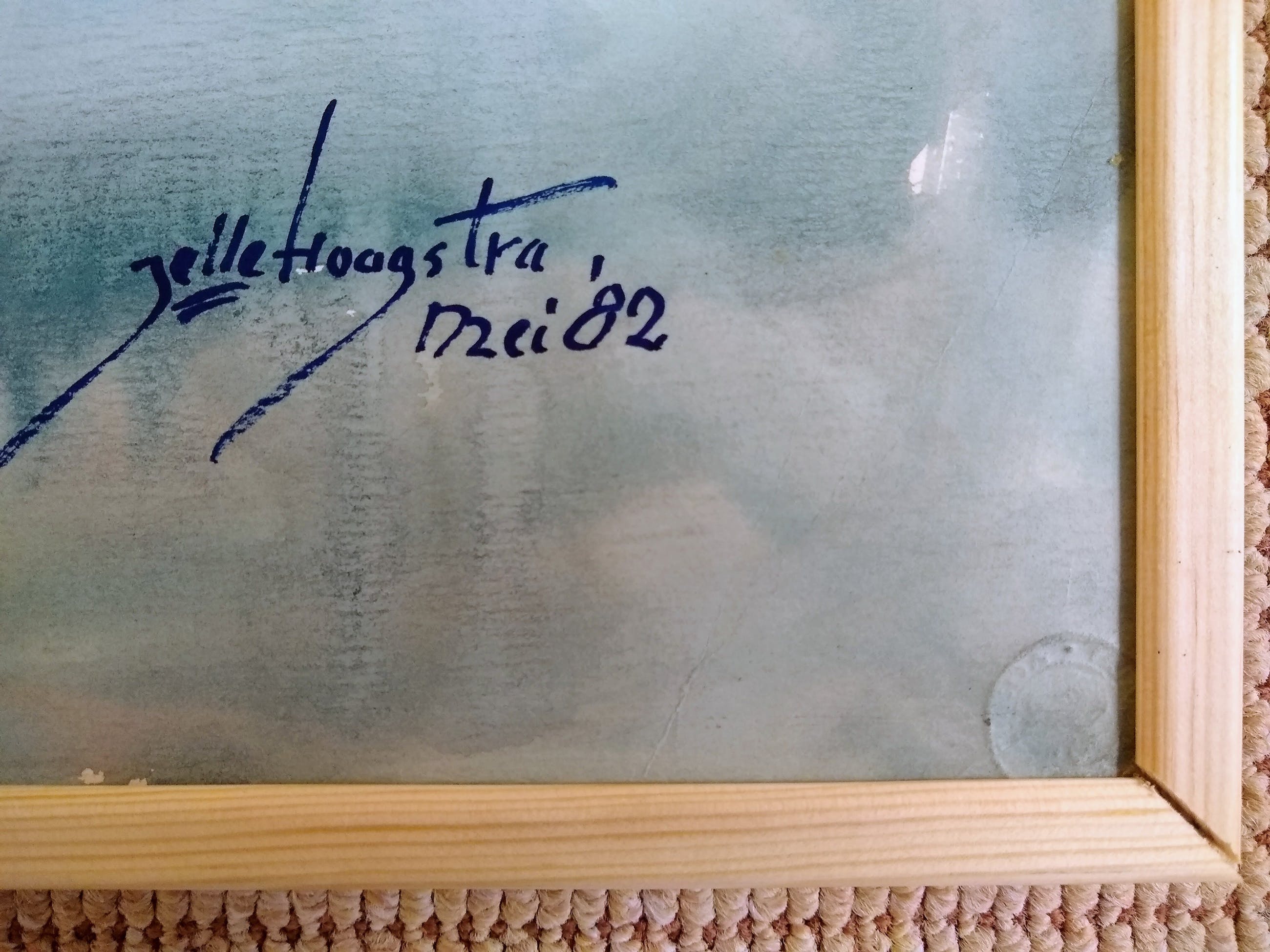 Dit is een krachtig werk van Jelle Hoogstra. Het is modern, expressionistisch. Het werk heeft een flink formaat en een eenvoudige lijst. Hoogstra volgde de Academie voor Beeldende Kunsten te Rotterdam.