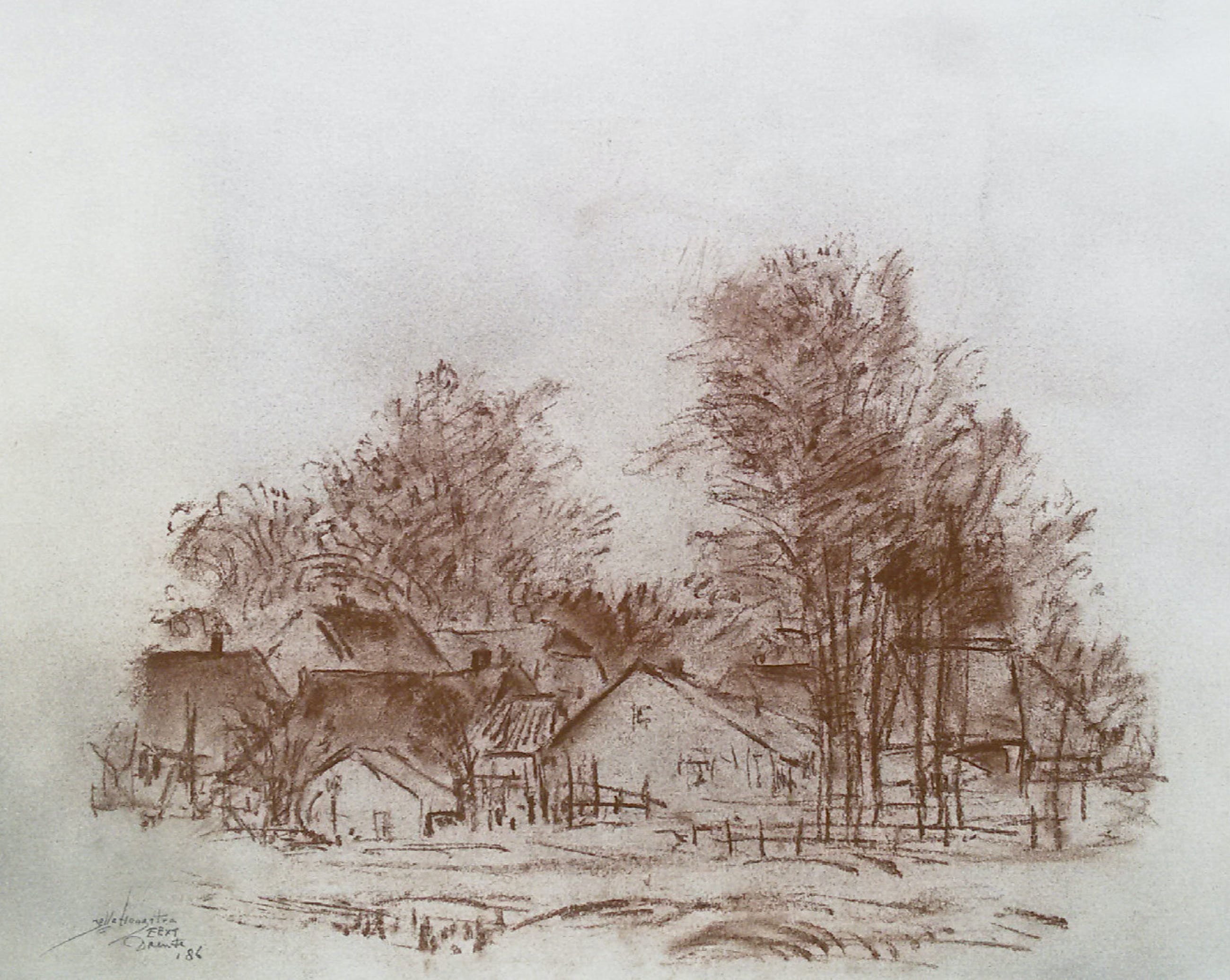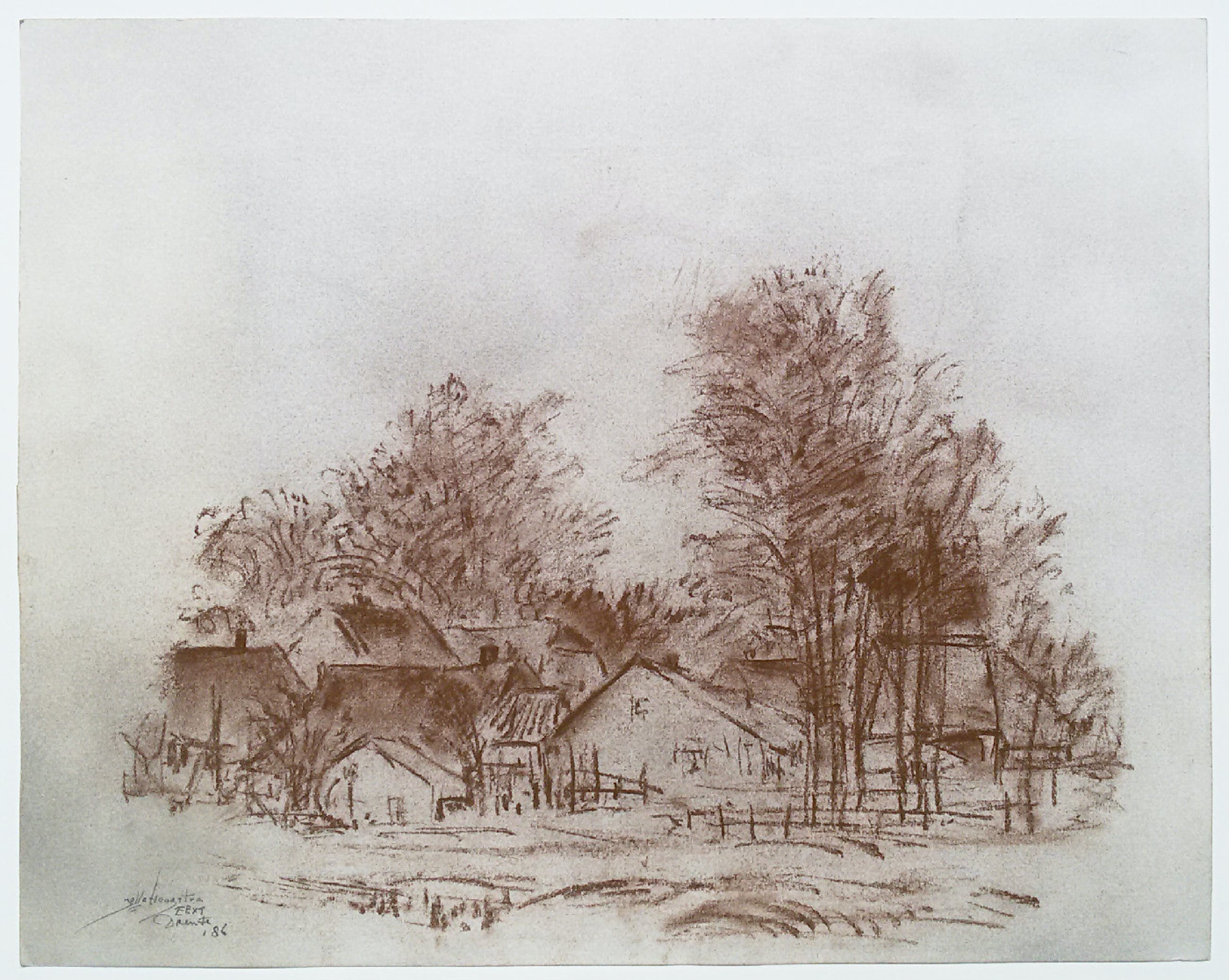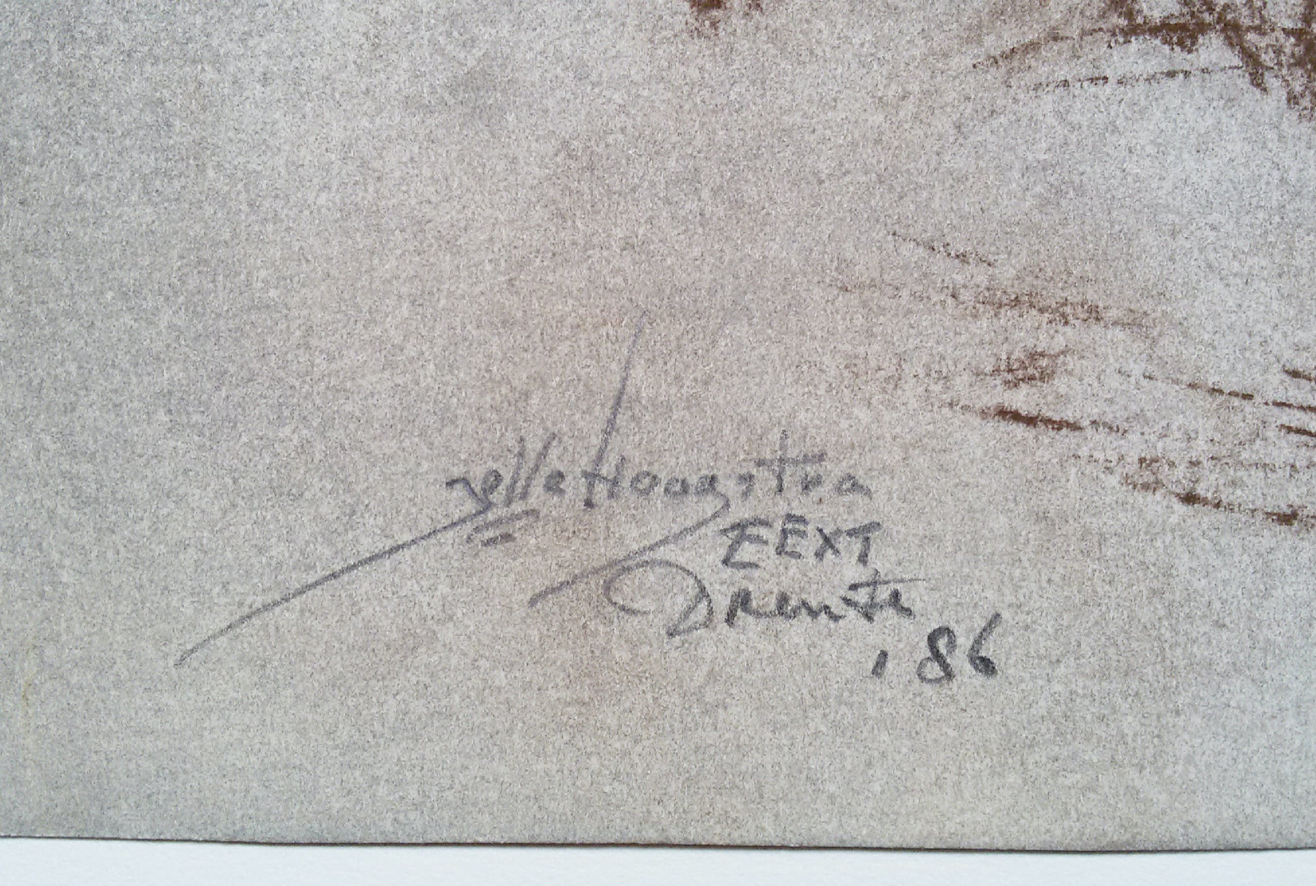 Sober, herkenbaar werk van Jelle Hoogstra. Tekening met pastelkrijt op dik papier, gesigneerd, gesitueerd en gedateerd (‘86) linksonder. In zeer goede conditie.