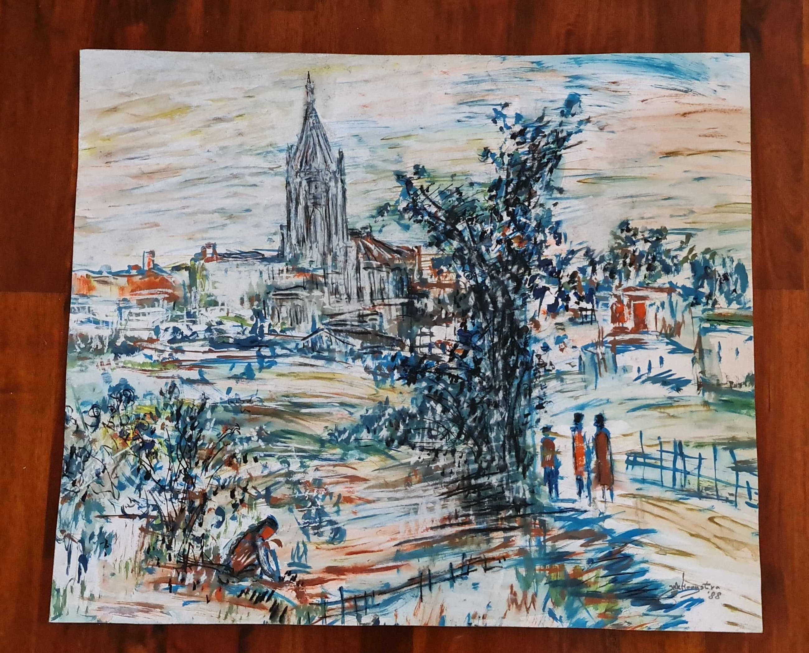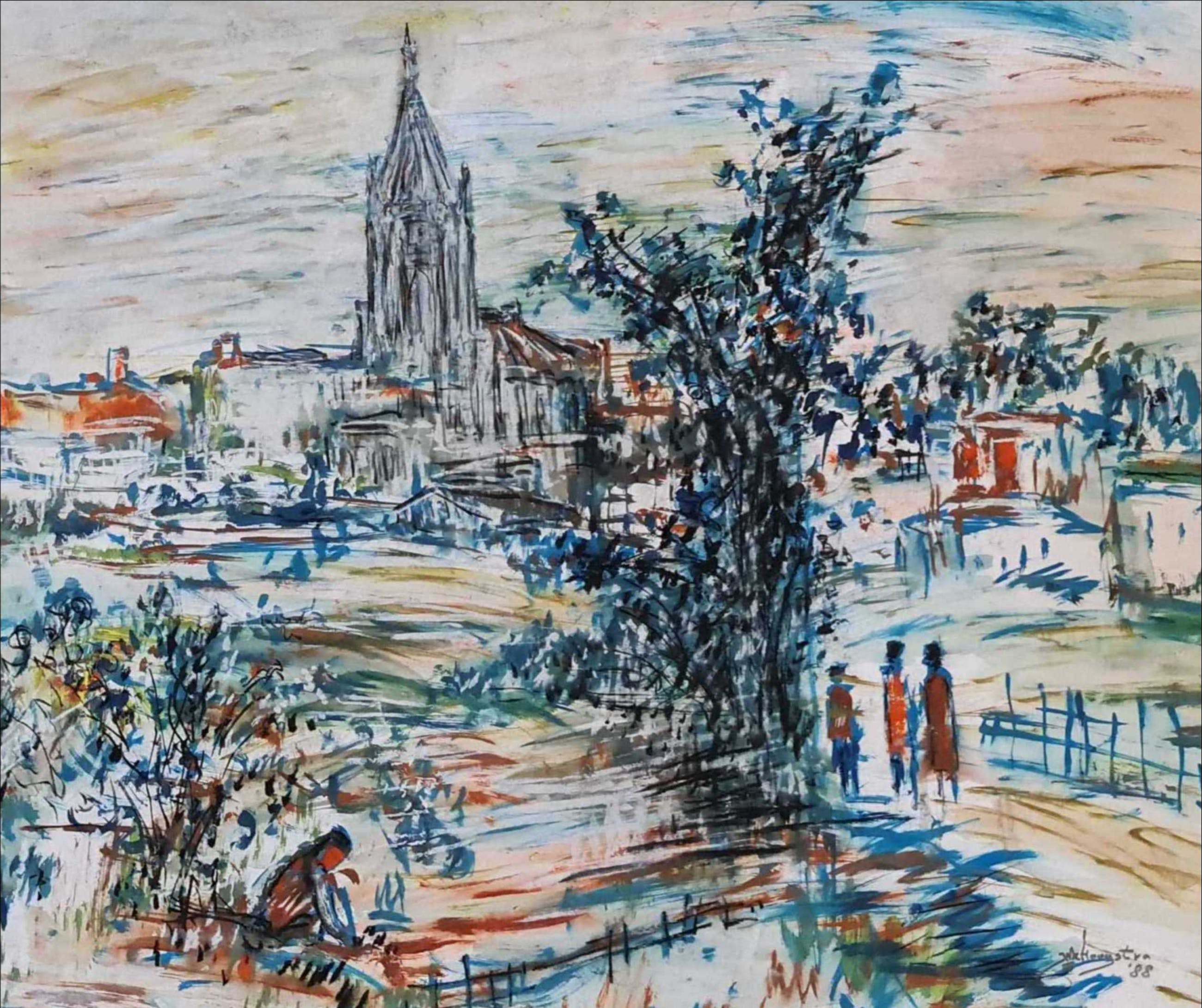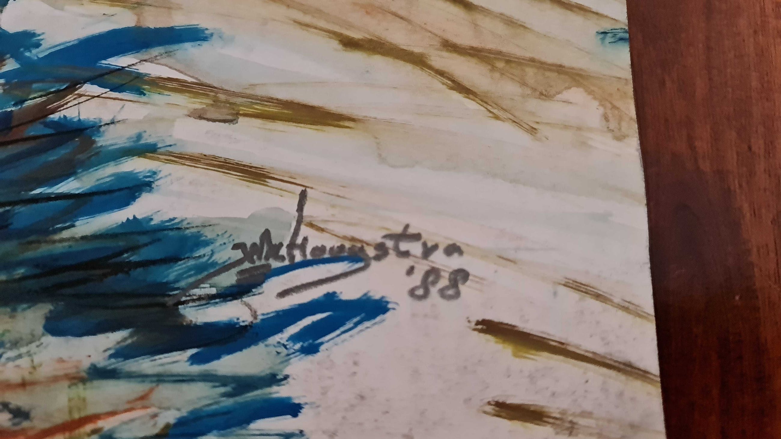 Gemengde techniek uit 1988 van Jelle Hoogstra. Het werk is rechtsonder handgesigneerd. Afmeting van het werk is 50cm x 60cm