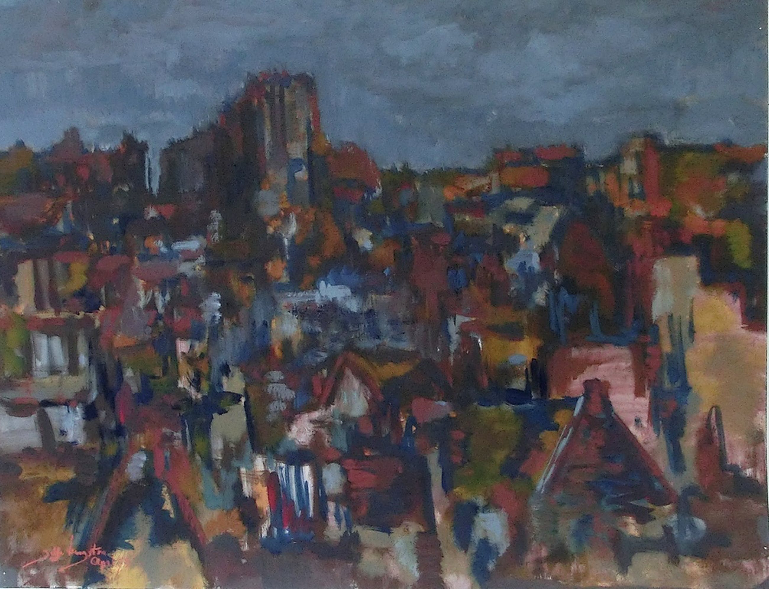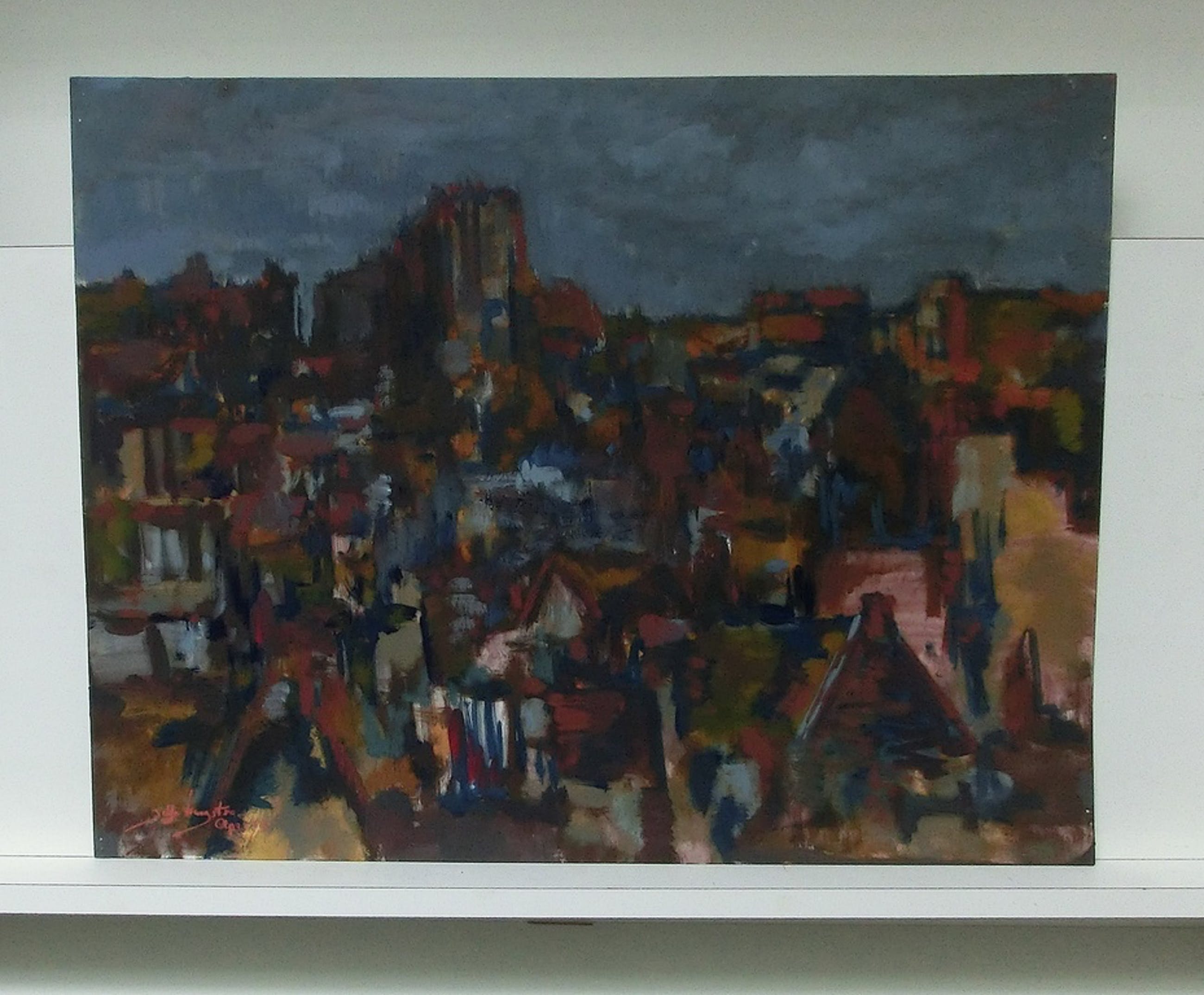 Gouache op papier van Jelle Hoogstra, 1979, papierformaat 65 x 50 cm, gesigneerd l.o.
