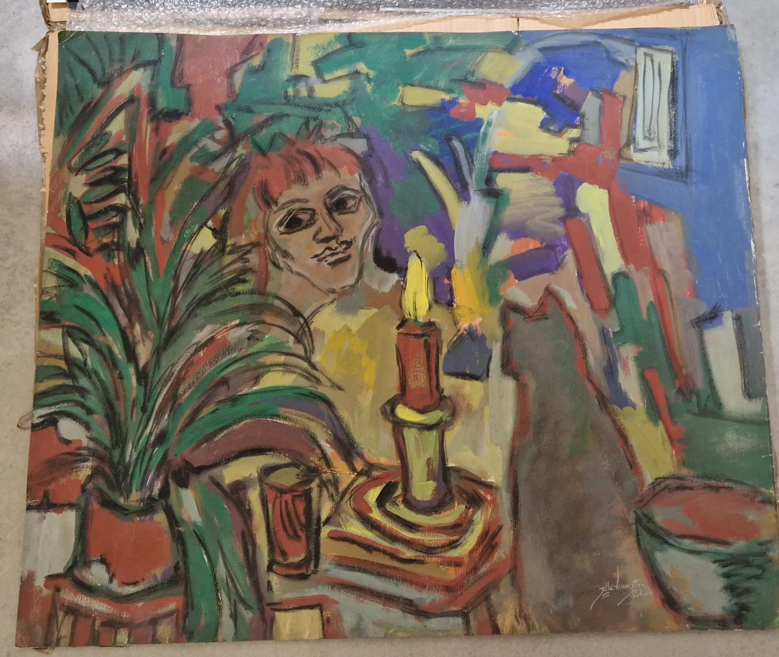 Gesigneerd werk van Friese kunstenaar Jelle Hoogstra (1924-2003) uit februari 1984