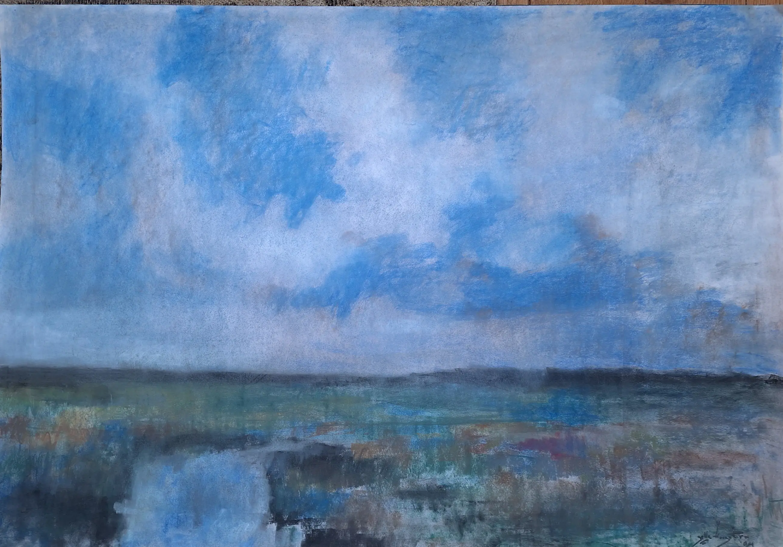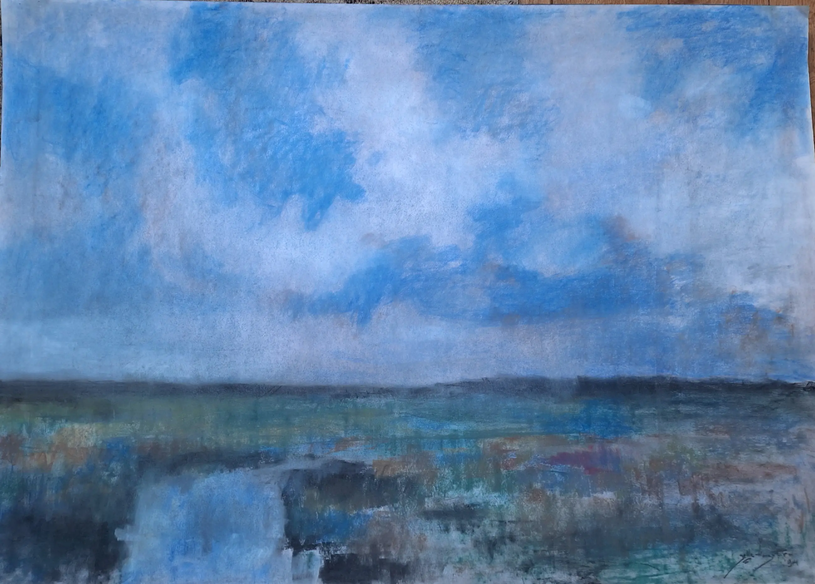 Zeer mooi polderlandschap van Jelle Hoogstra, uitgevoerd op groot formaat.