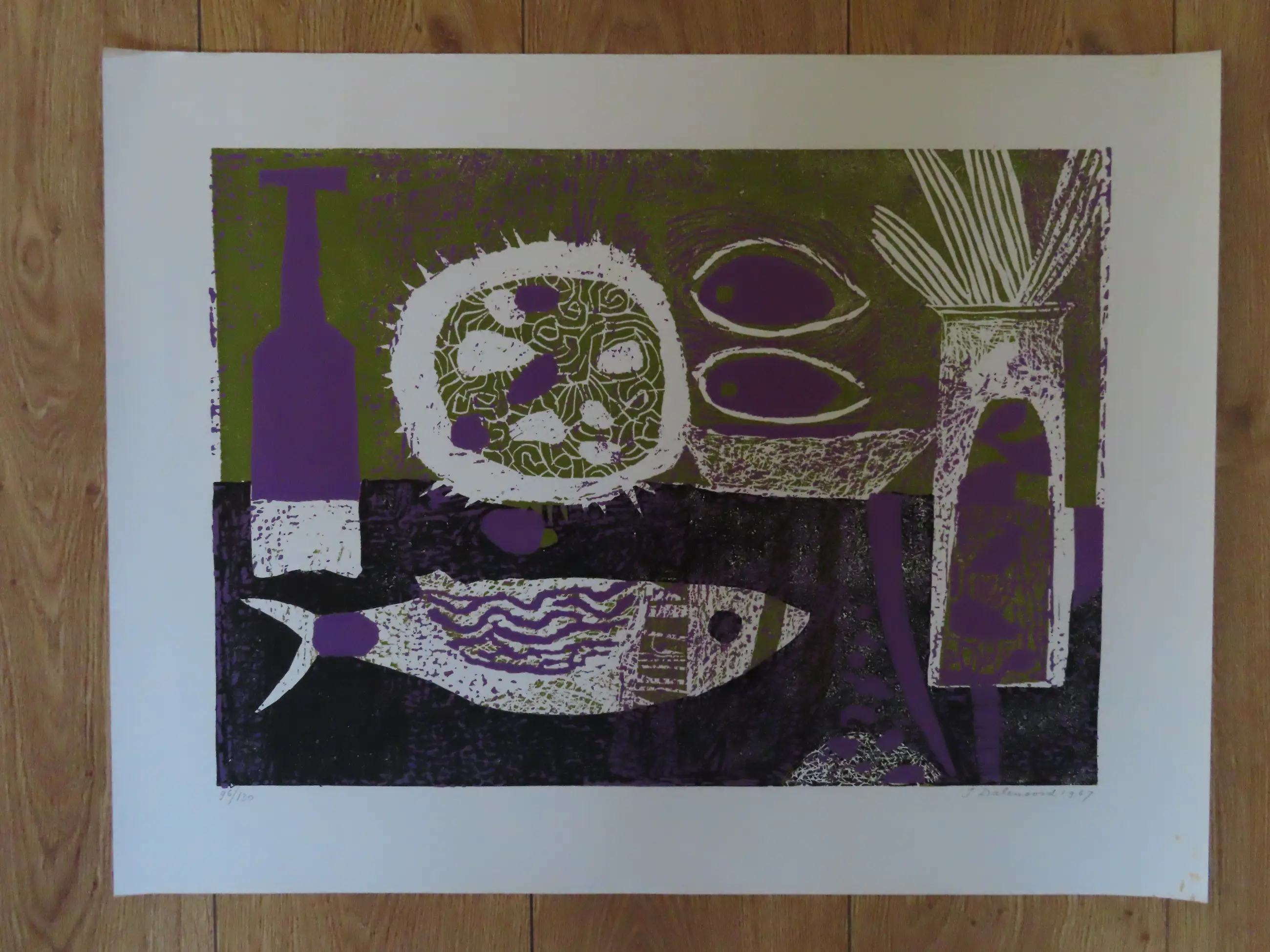 Ongetiteld. 'Stilleven met vis'. Nummer 96/130. Handgesigneerd en gedateerd.