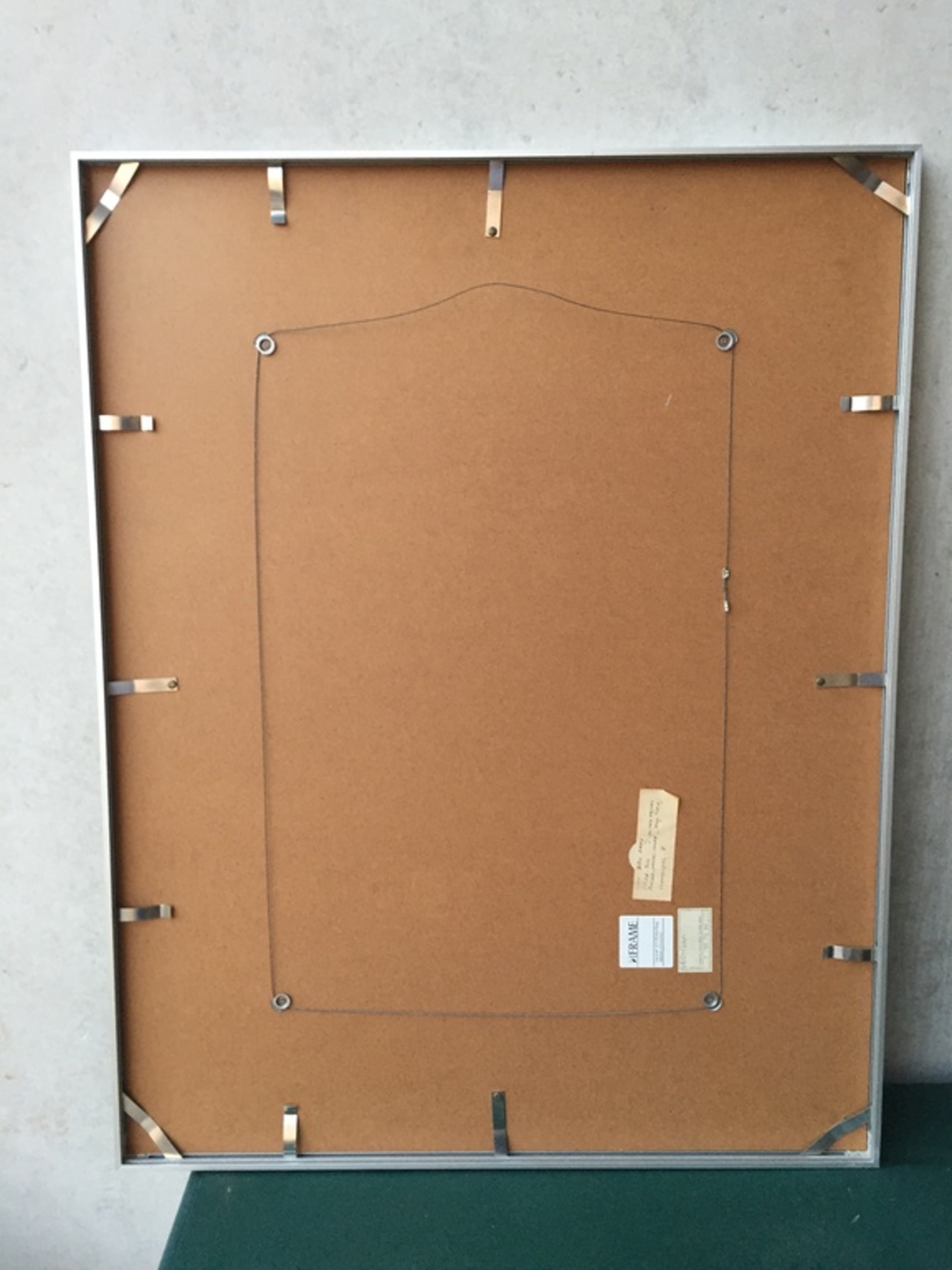 Ingelijst zonder glas, buitenmaat lijst 91,5 x 71 cm