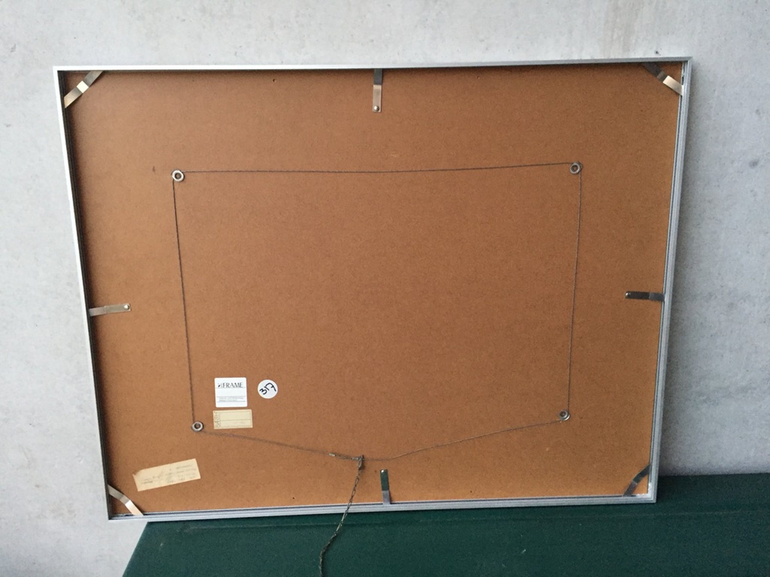 Ingelijst zonder glas en passe-partout, buitenmaat lijst 91,5 x 71 cm