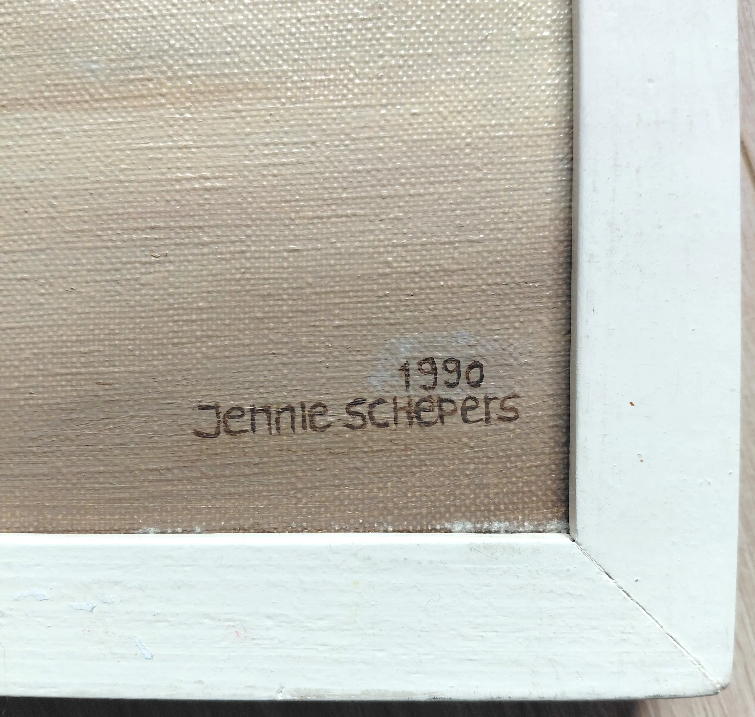 Afmetingen: 54cm x 44cm (incl. lijst), 50cm x 40cm (doek)