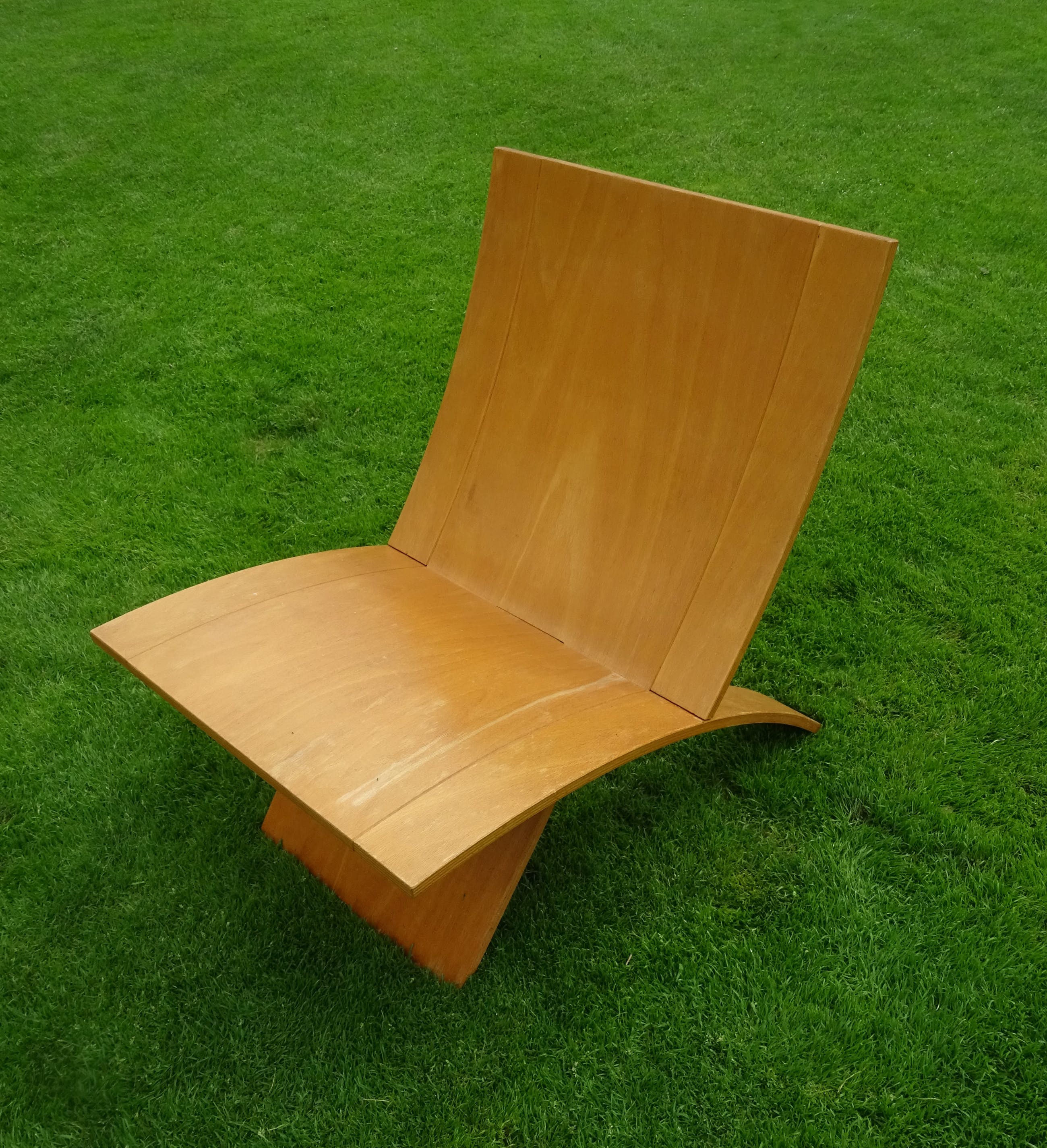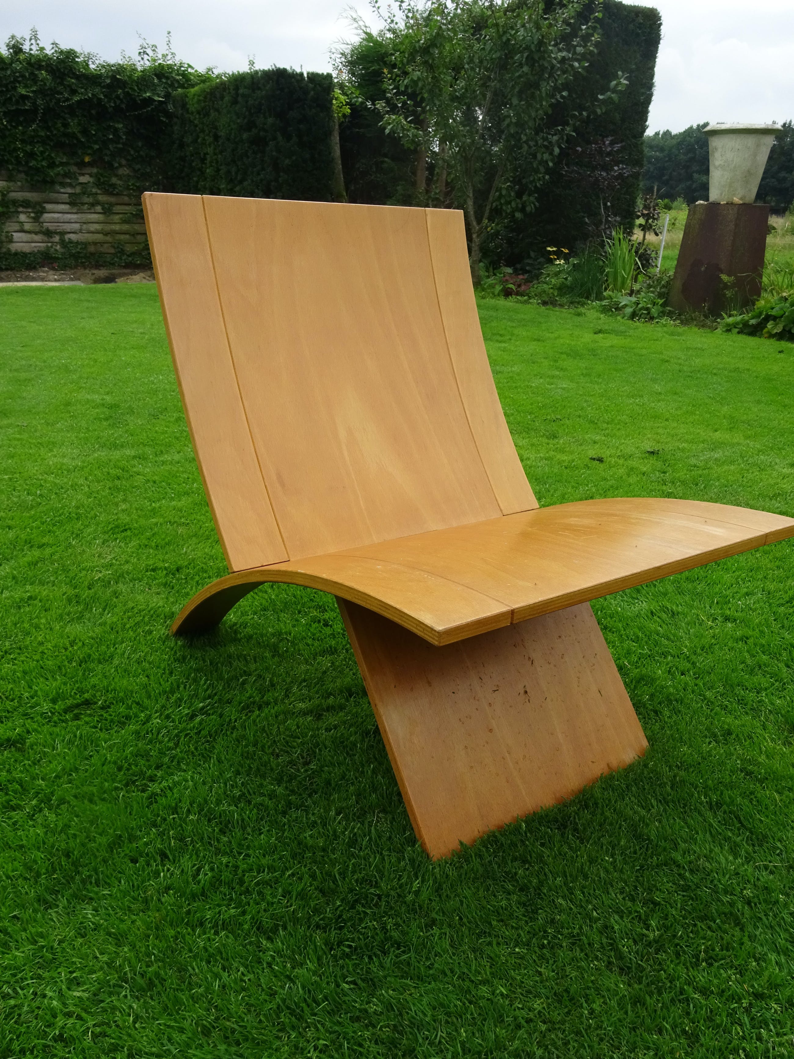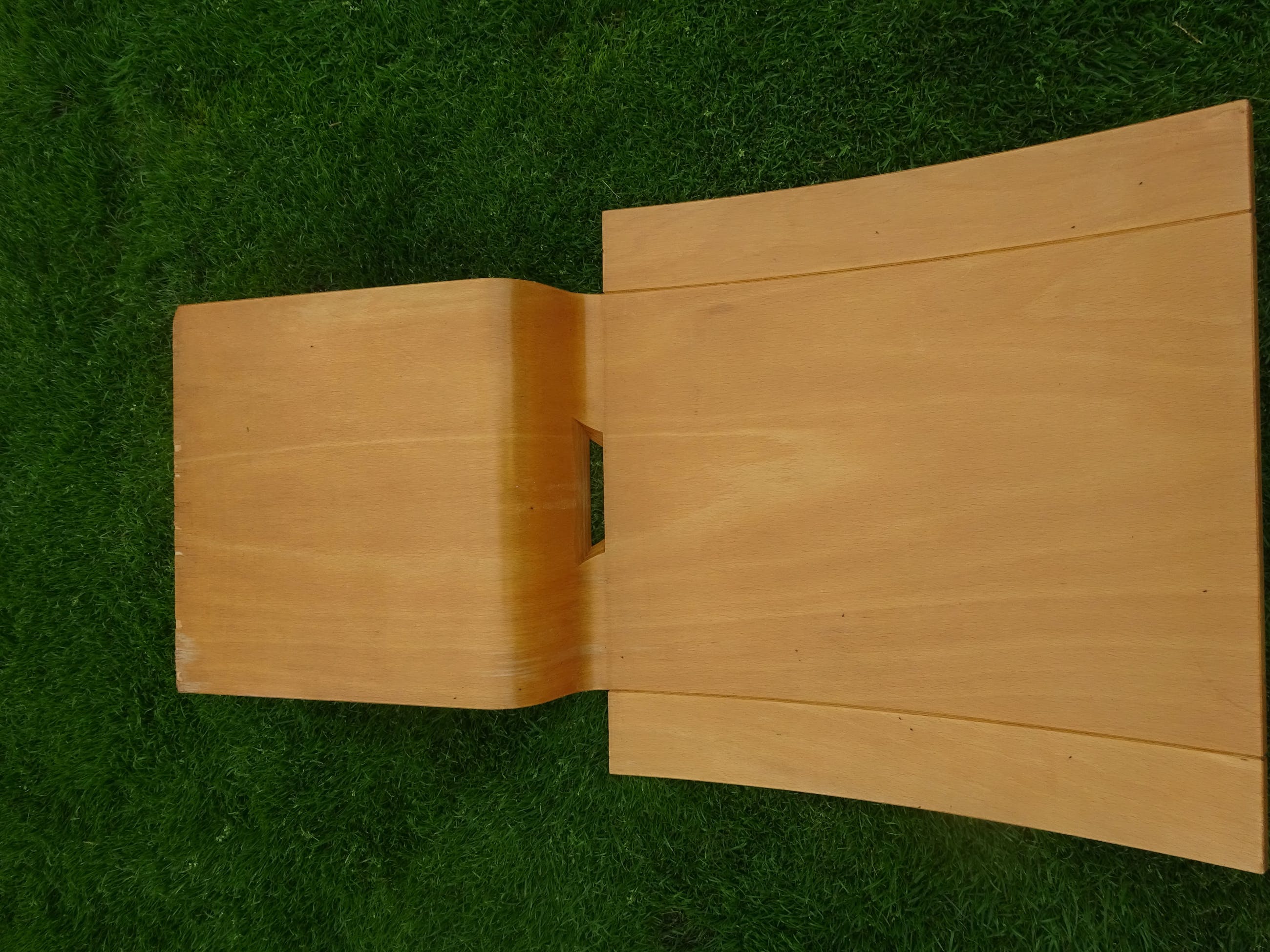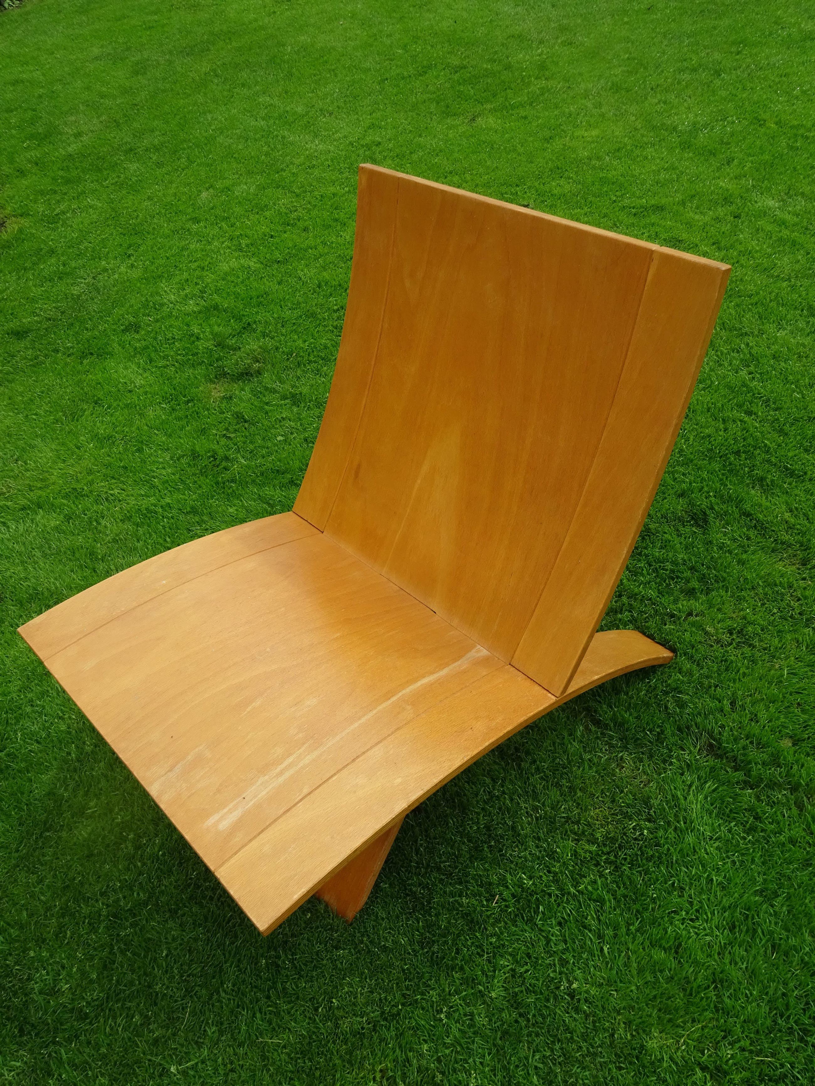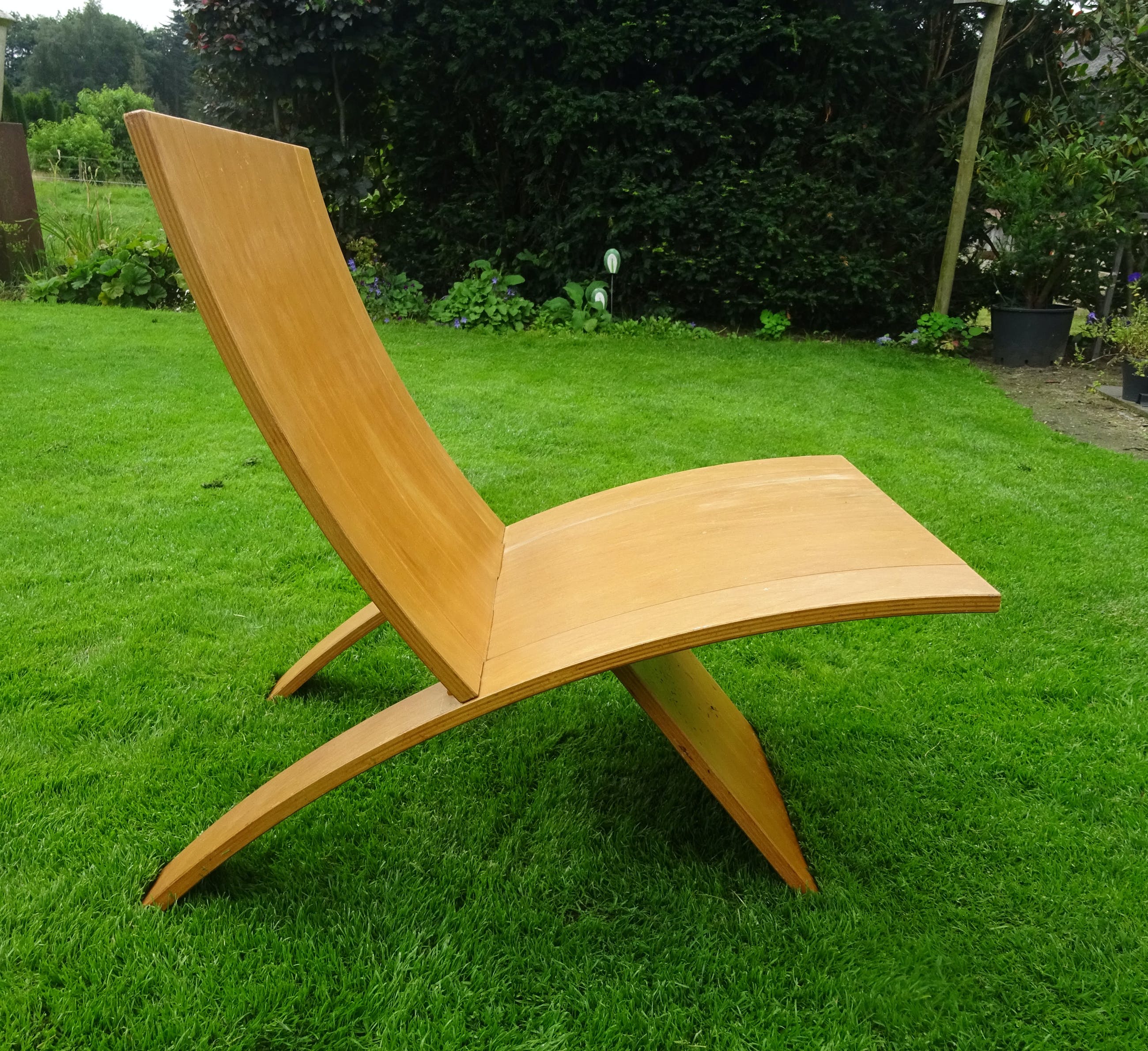 Demontabele houten stoel Ontwerp: Niels Jensen 1937-1993 Uitvoering: Laminex Land: Denemarken Materiaal: Multiplex- plywood Afmeting: 69 x 44 x 80
