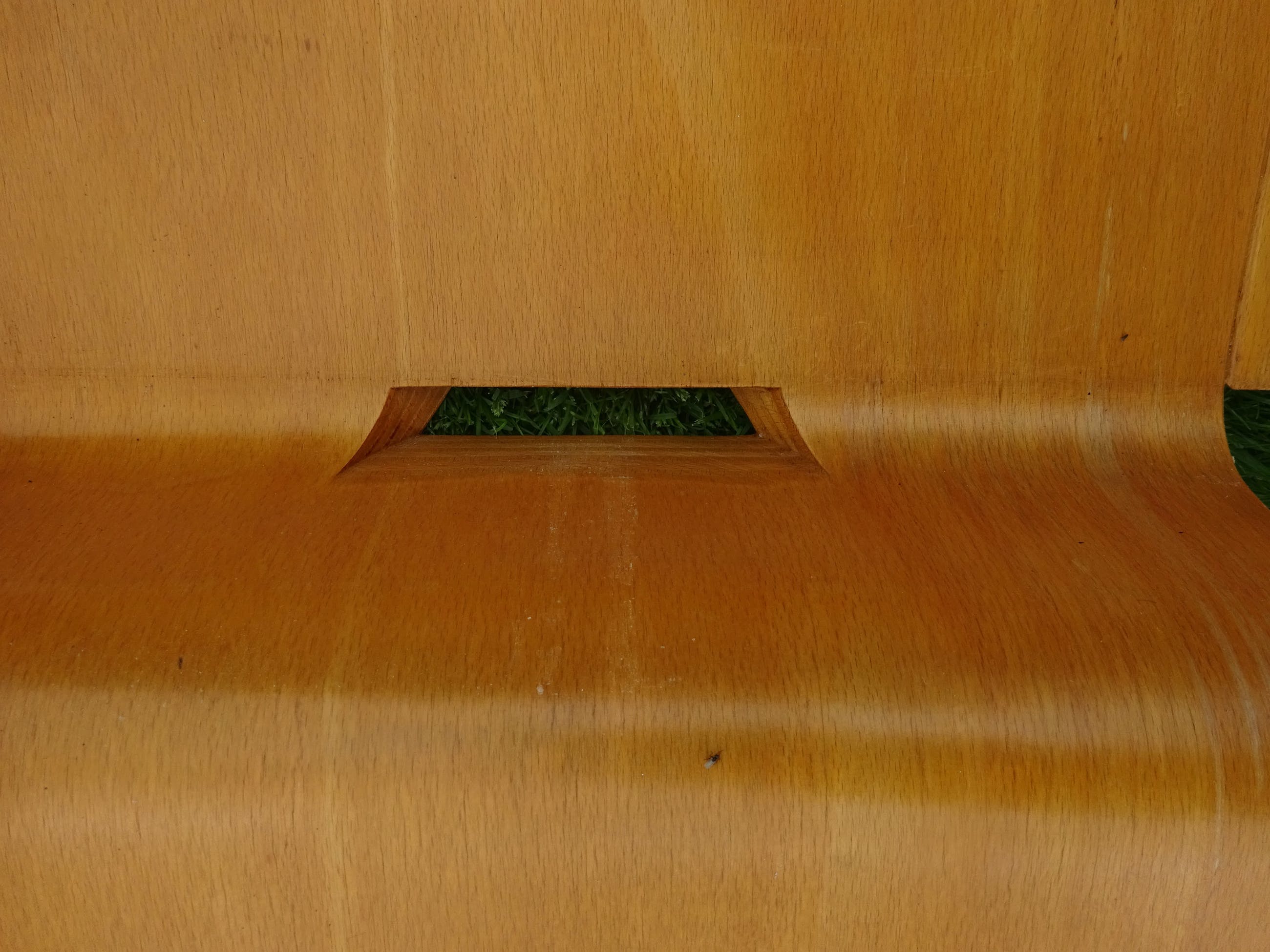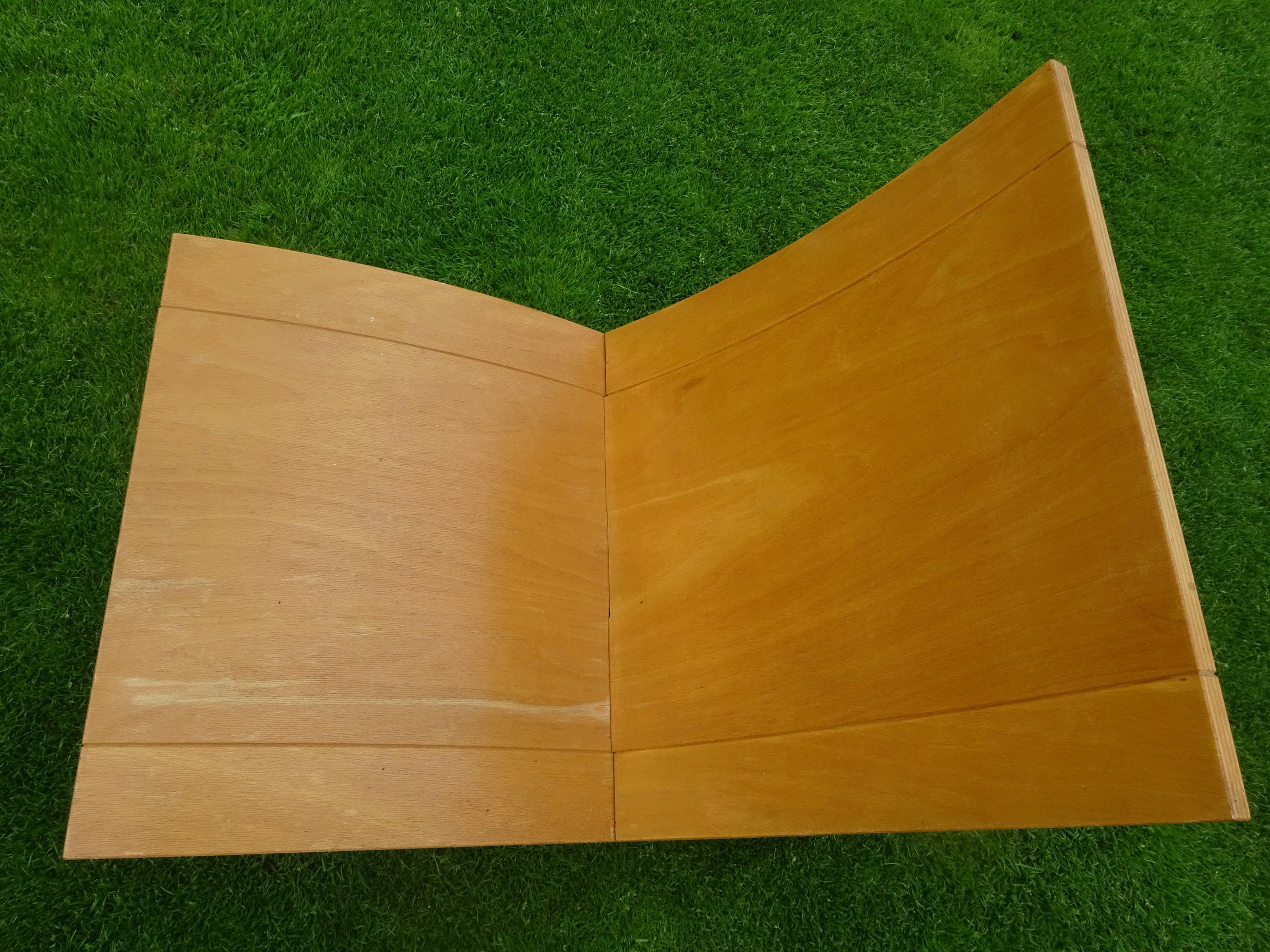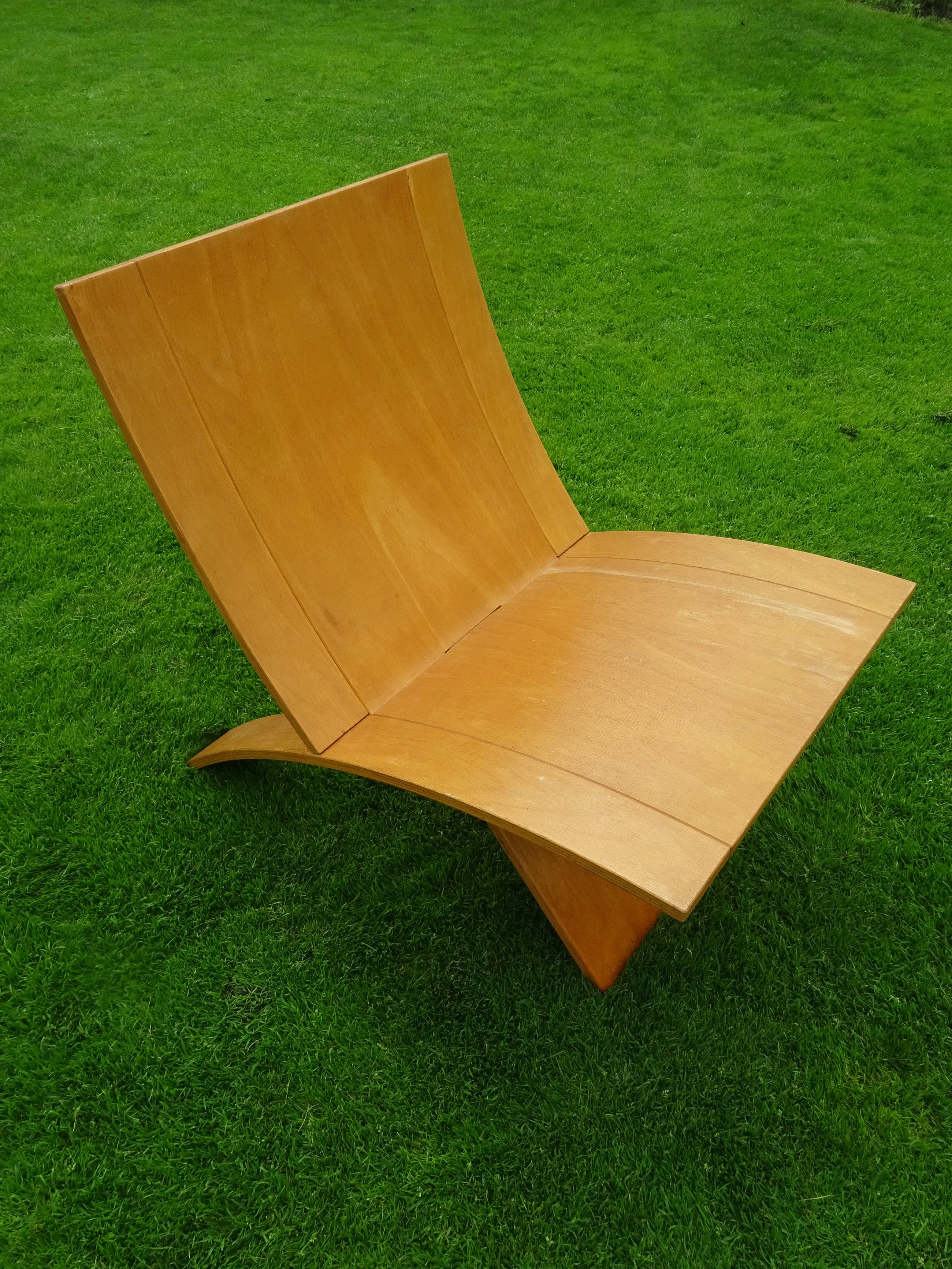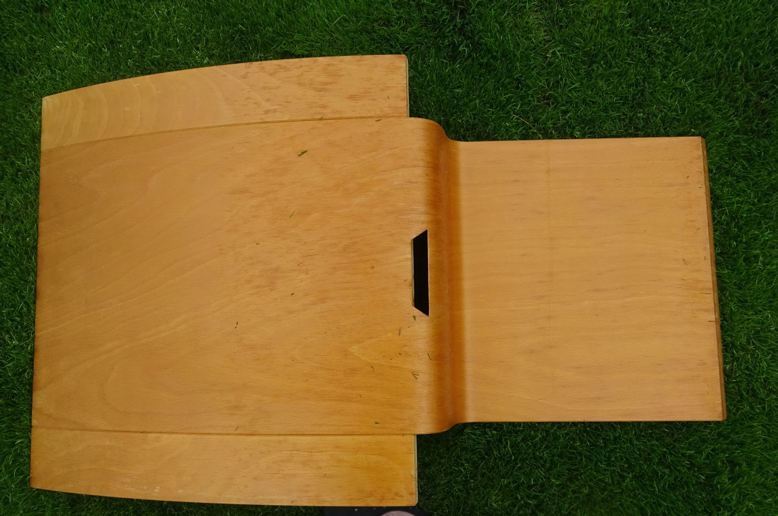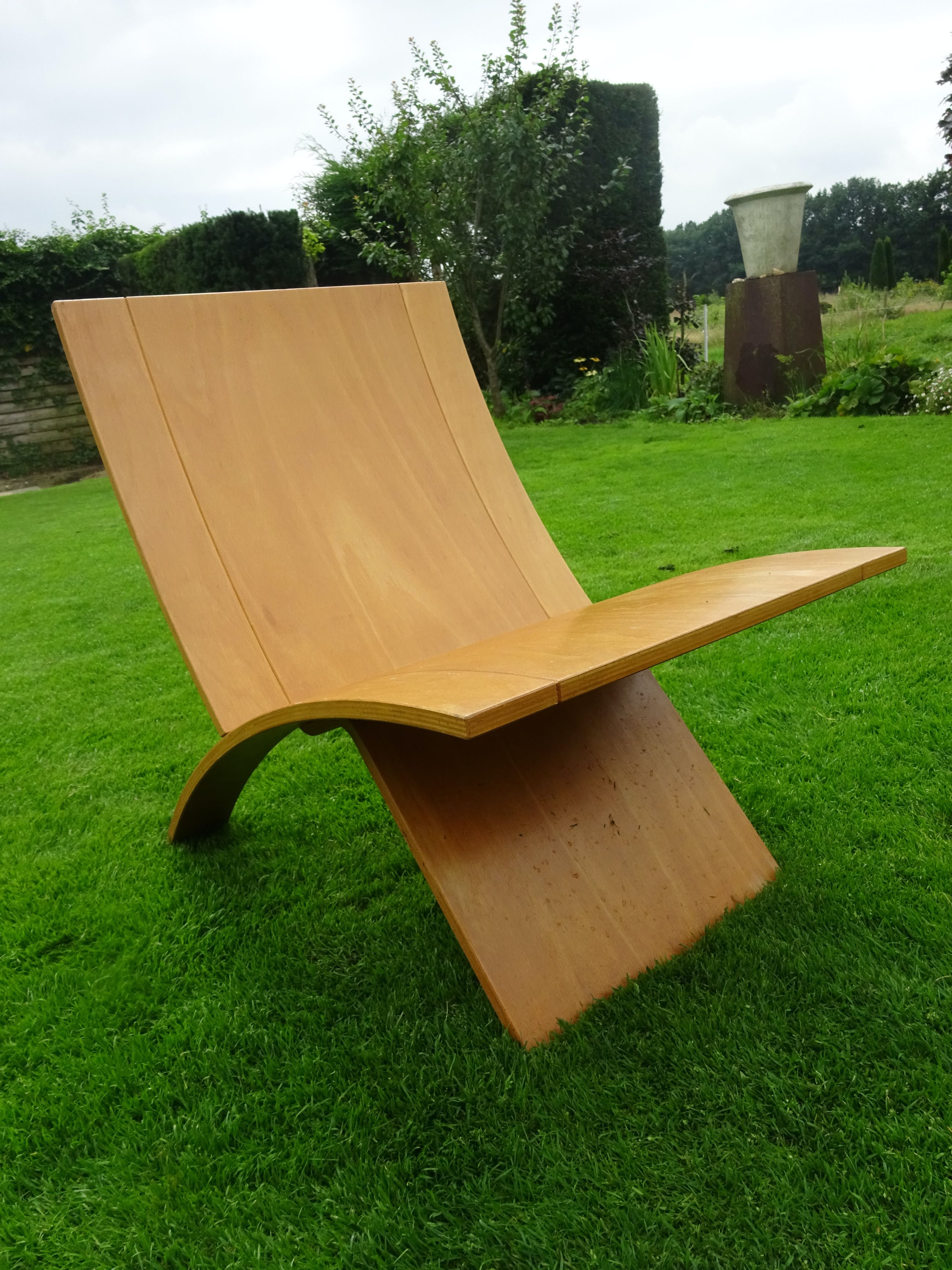 Demontabele houten stoel Ontwerp: Niels Jensen 1937-1993 Uitvoering: Laminex Land: Denemarken Materiaal: Multiplex- plywood Afmeting: 69 x 44 x 80