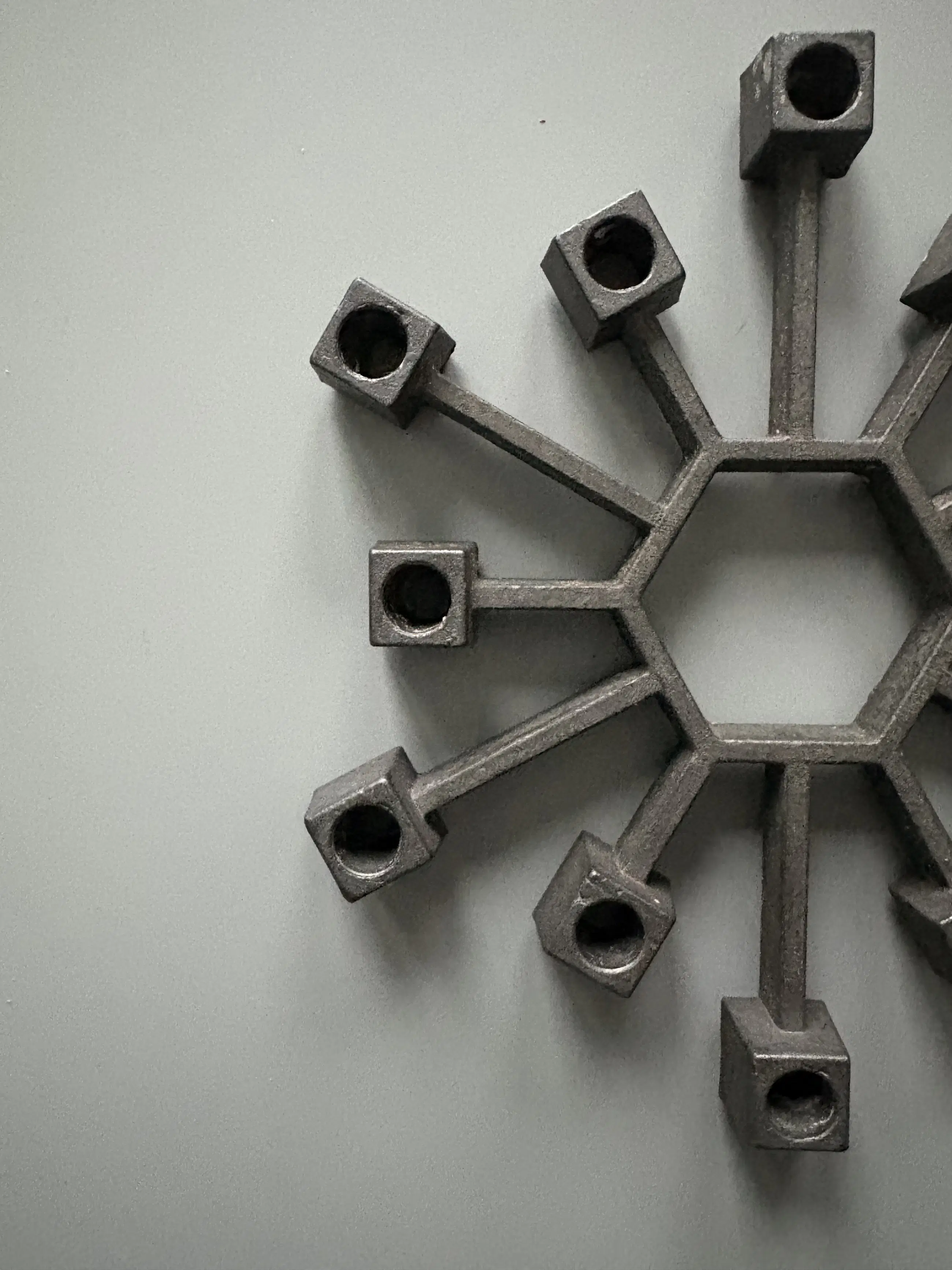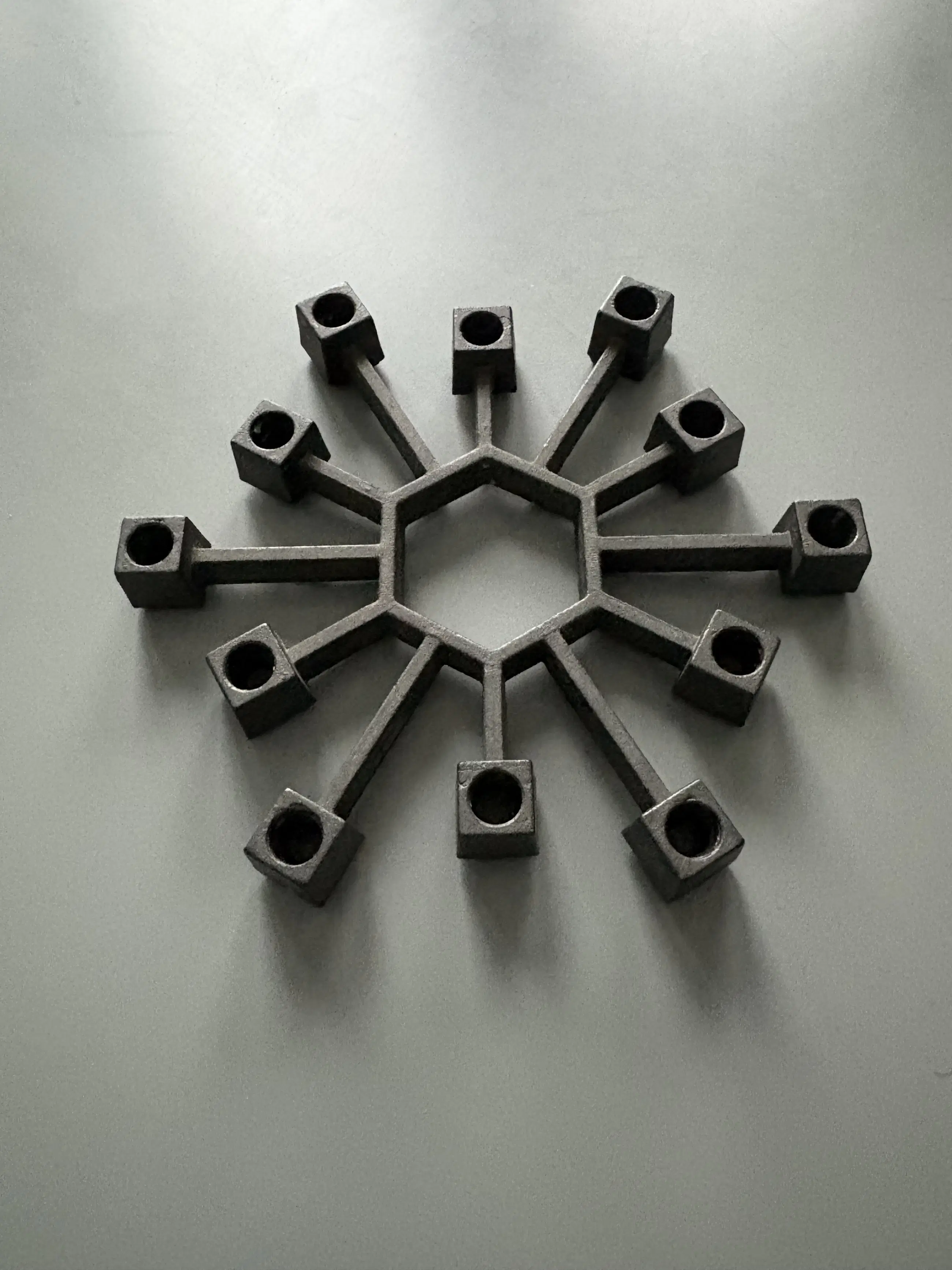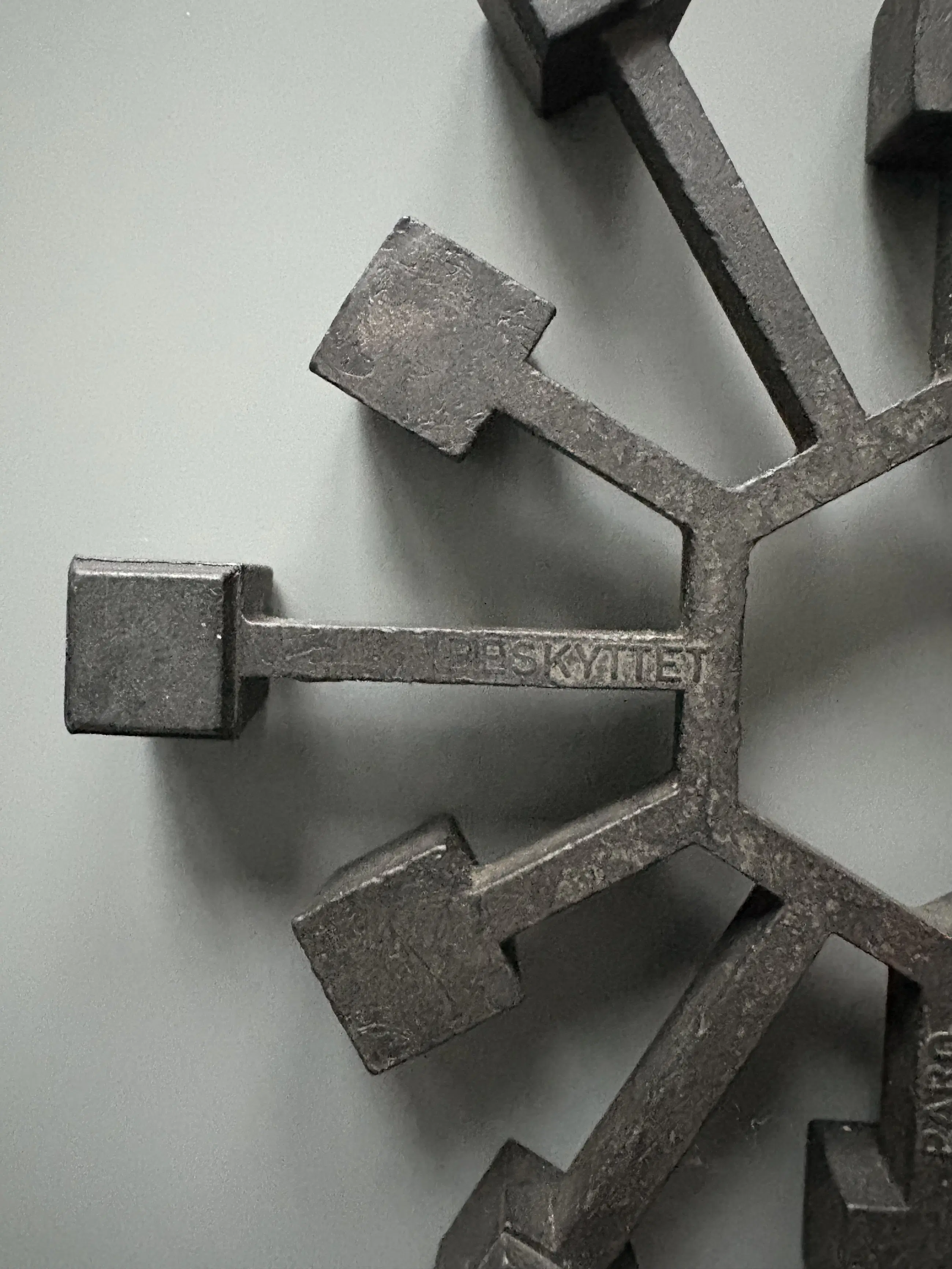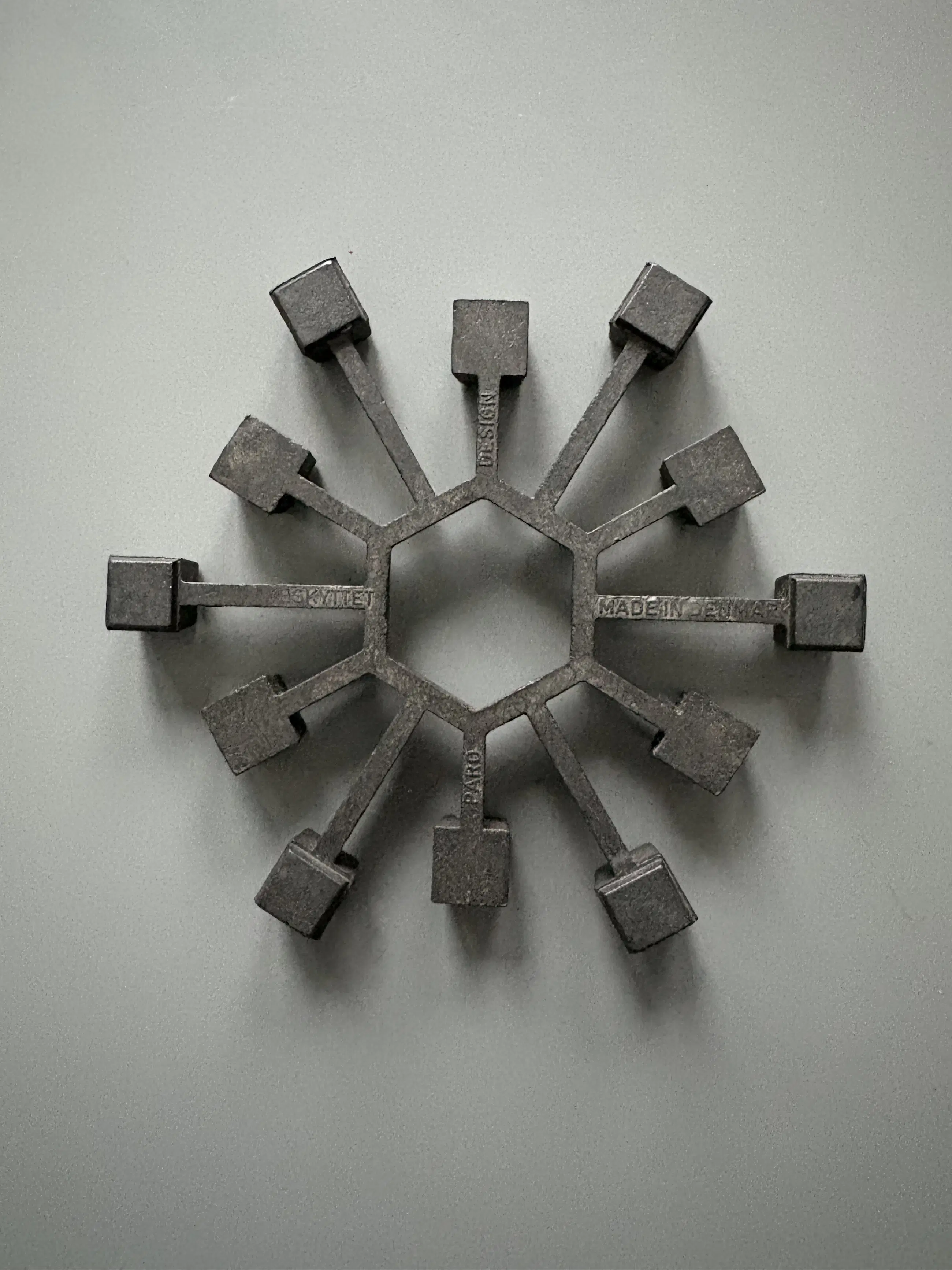 Ontworpen door Jens H. Quistgaard voor Paro Denemarken jaren ‘60 ‘Spider’ gietijzeren kandelaar. Diameter 12 cm. Diep 1,5 cm.