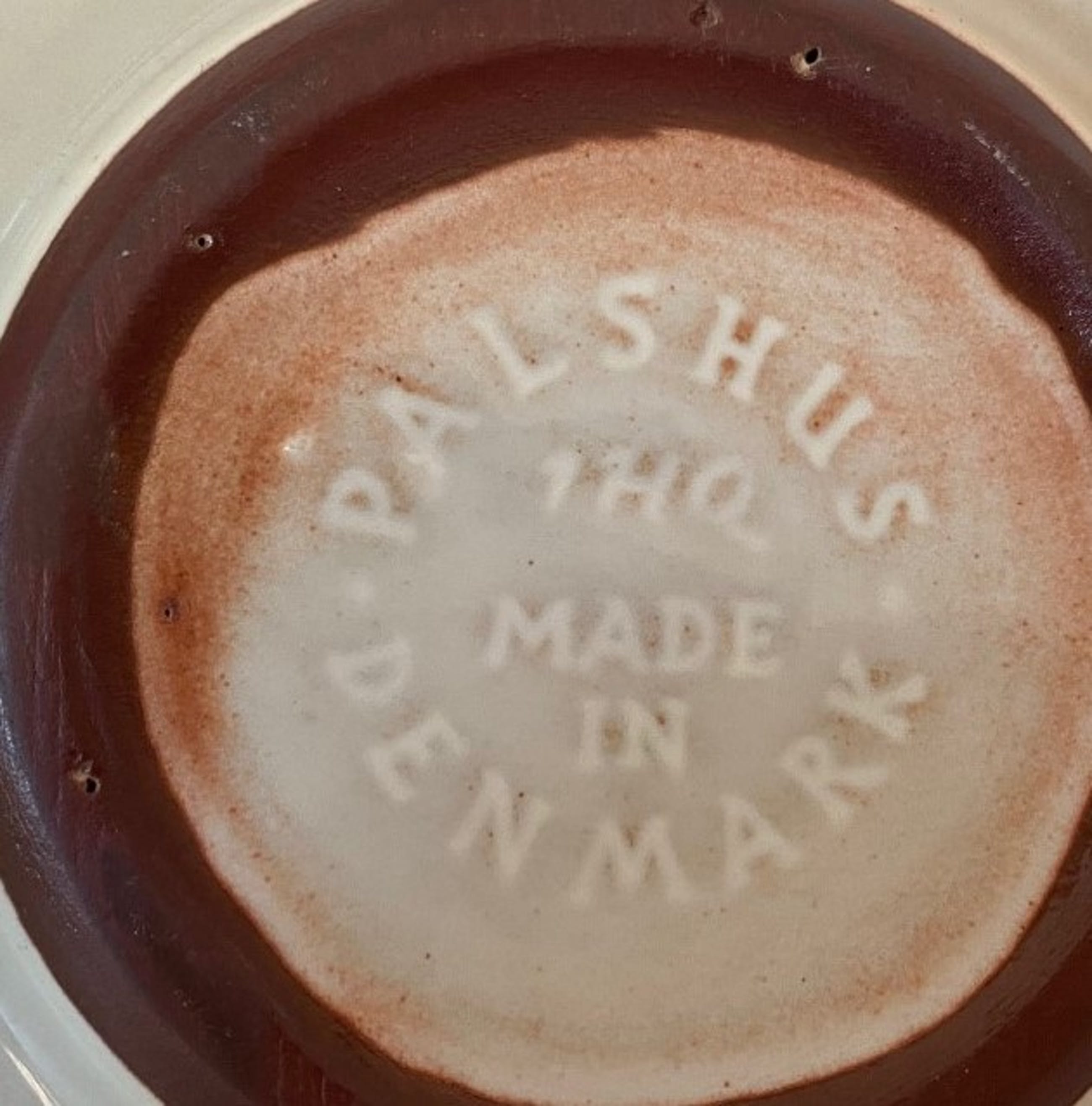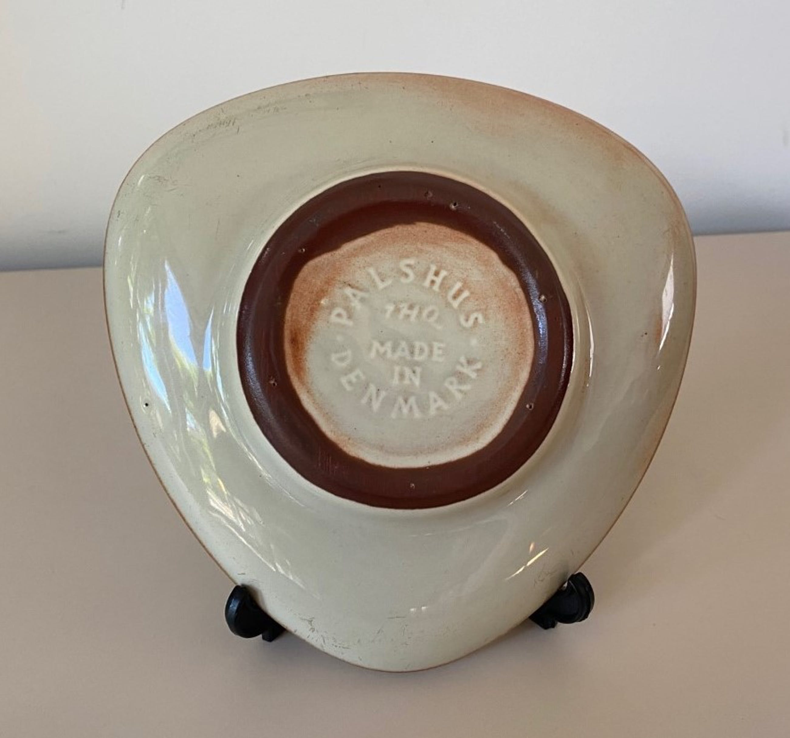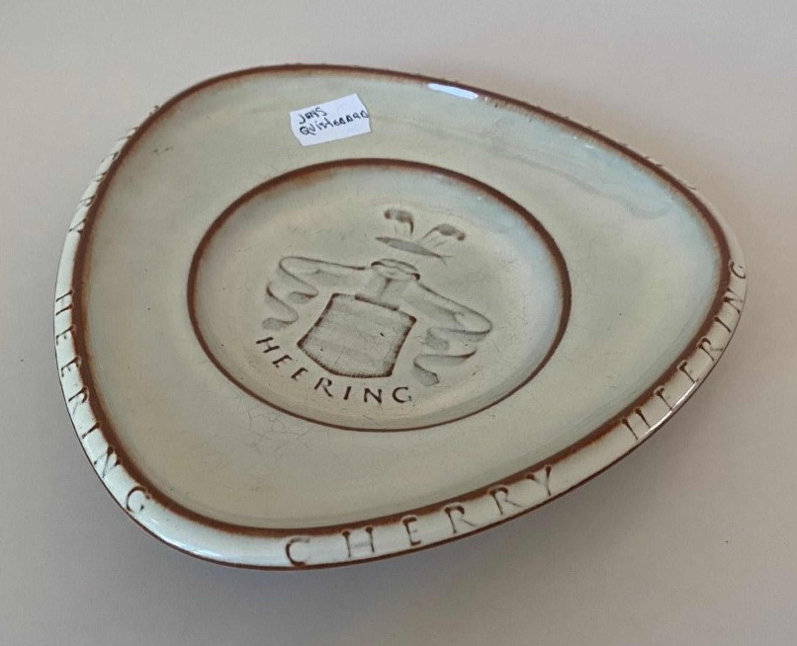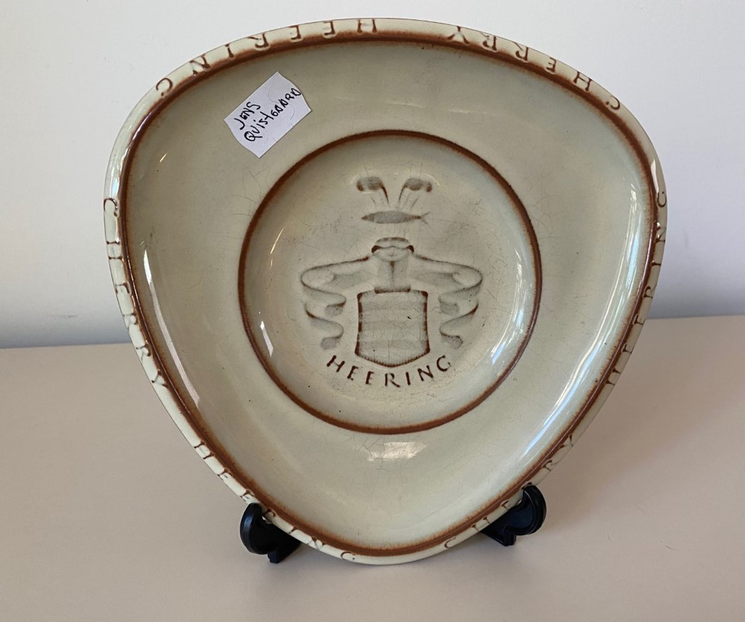 Steengoed schaal gemaakt voor de firma Cherry Heering uitgevoerd bij Palshus van Per Linneman Schmidt, het ontwerp van de schaal is van Jens Quistgaard. In onbeschadigde conditie en volledig gemerkt.