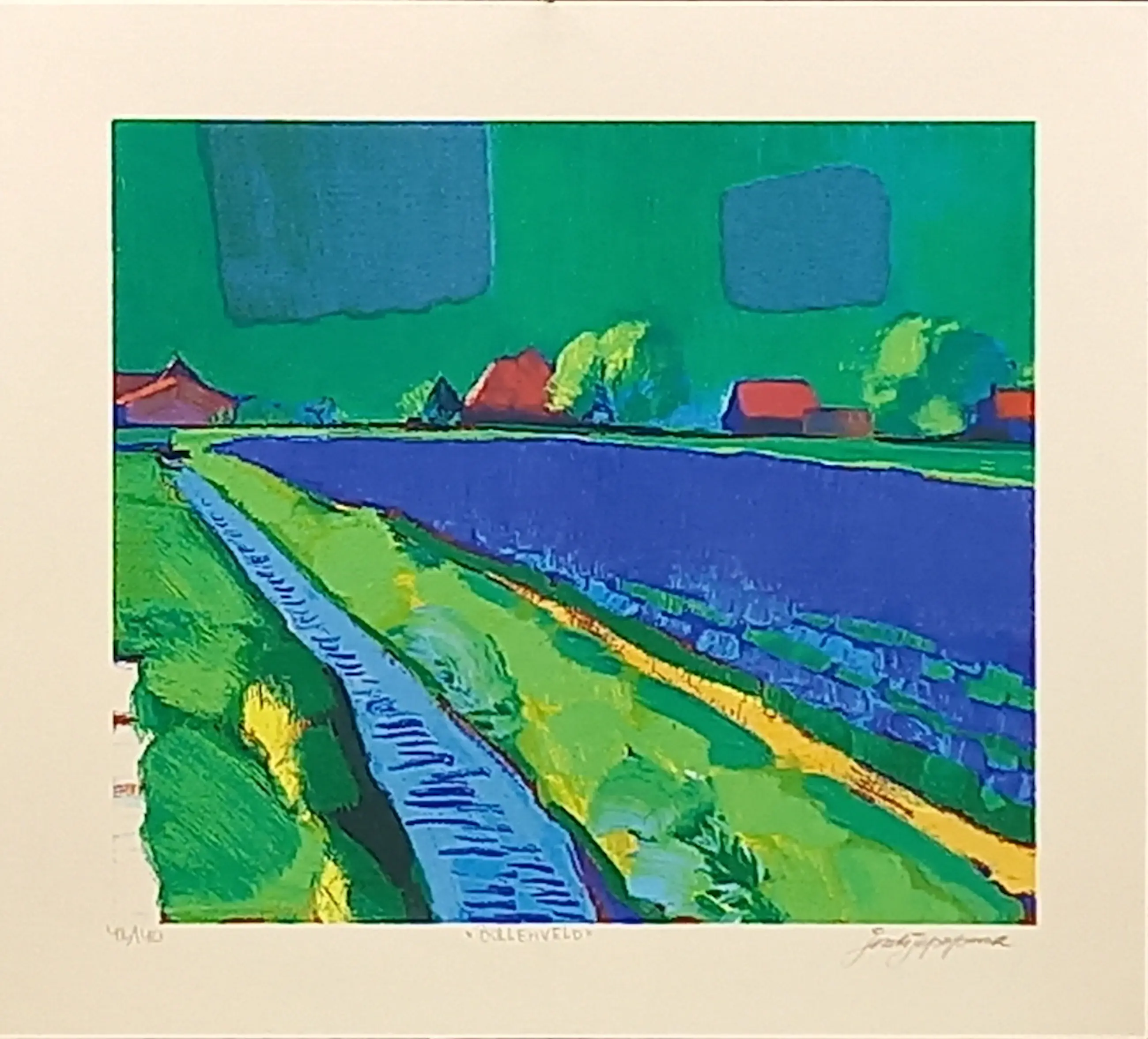 Popma schildert het Friese landschap. En soms daarbuiten. Oplagenummer is niet hetzelfde als op de foto.