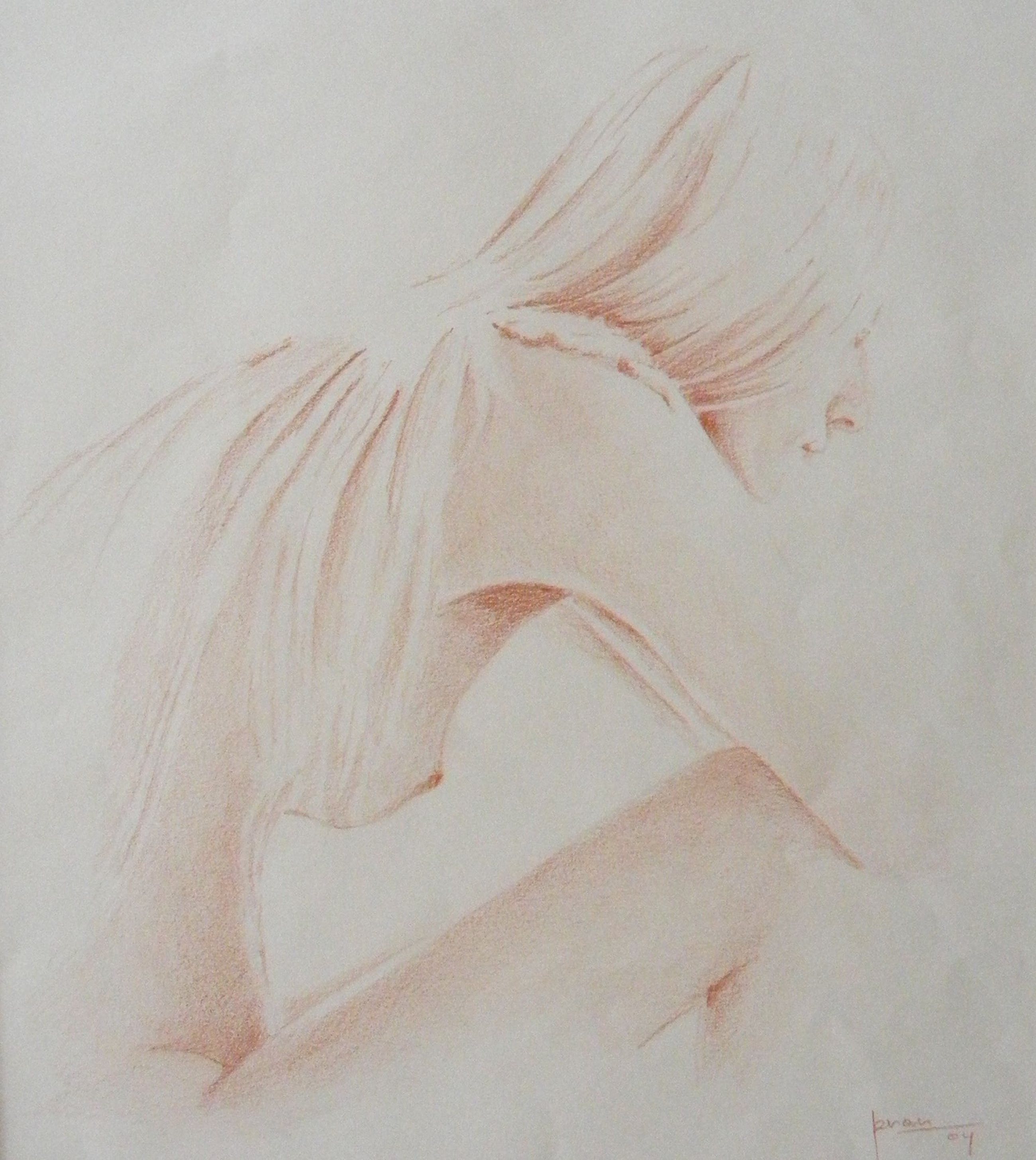 Prachtige tekening in rood bruinEen mooi ingetogen werk