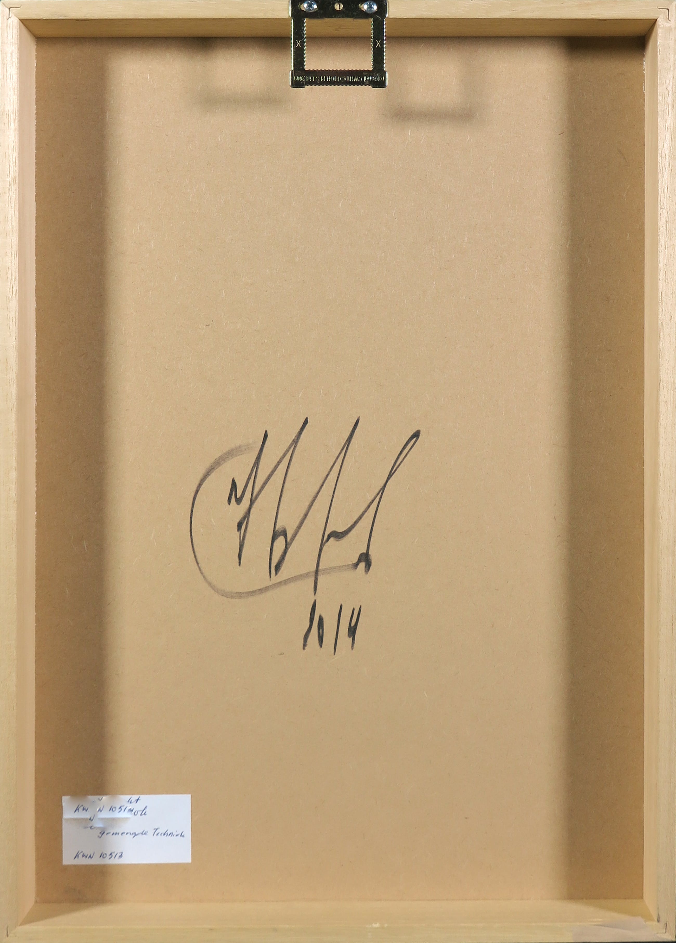 Gemengde techniek op karton, bevestigd op MDF. Met ophangsysteem.