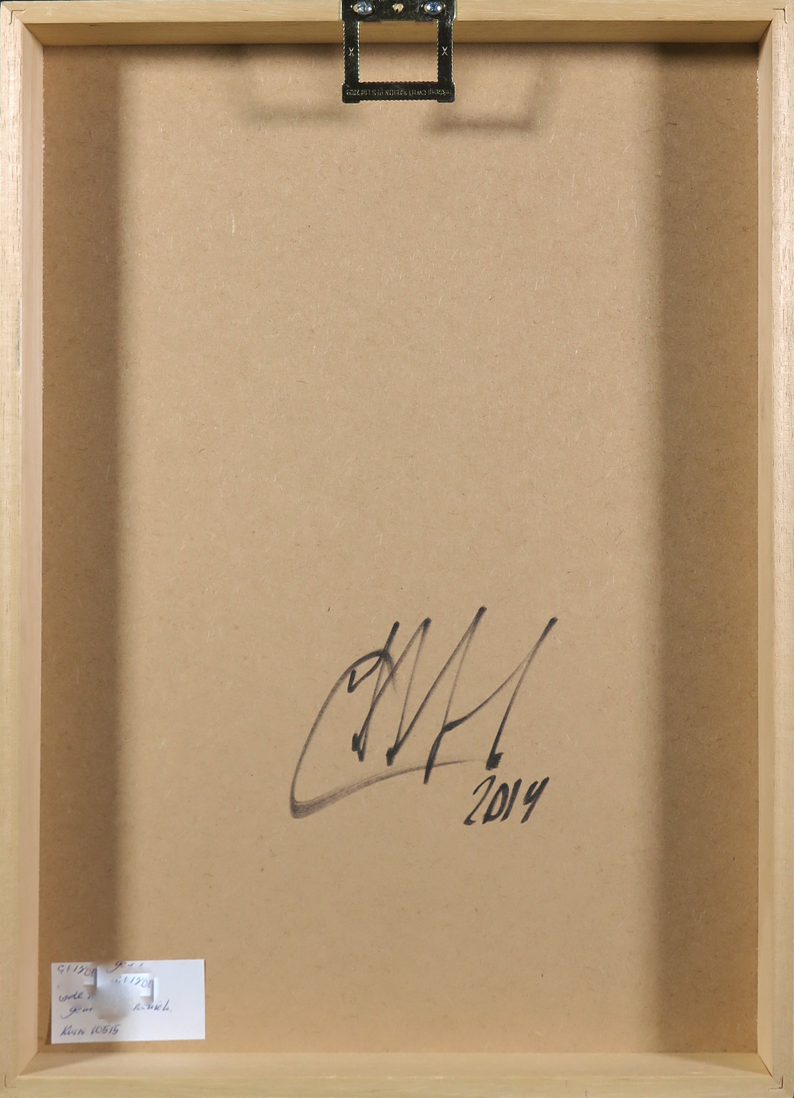Gemengde techniek op karton, bevestigd op MDF. Met ophangsysteem.